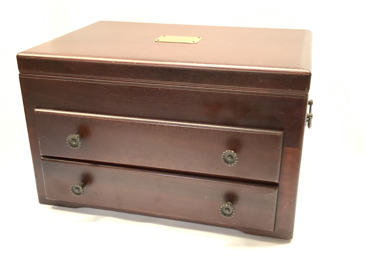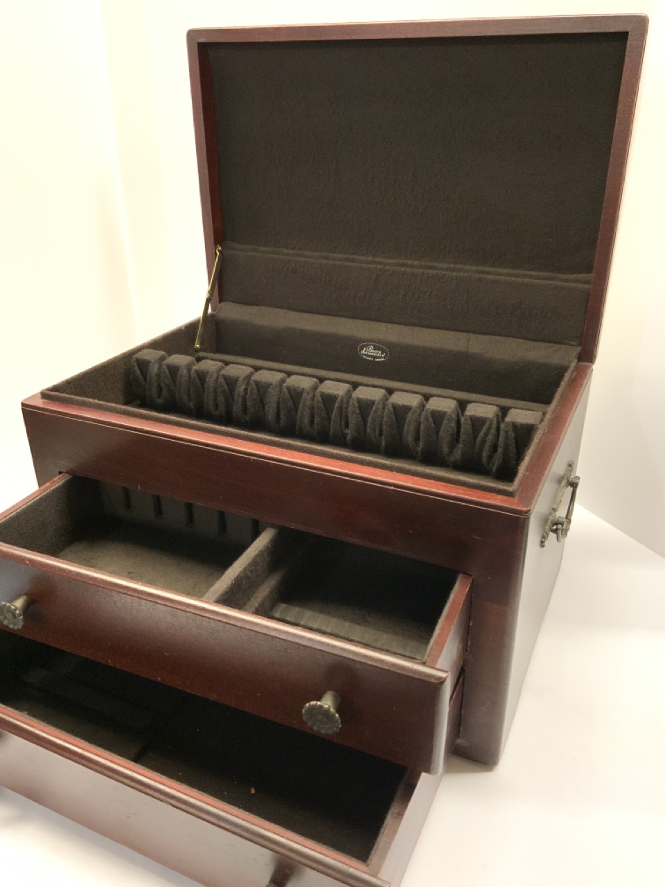 Mahogany Silver Dresser. Larger size with Top and two drawers. Pacific silver cloth lining.