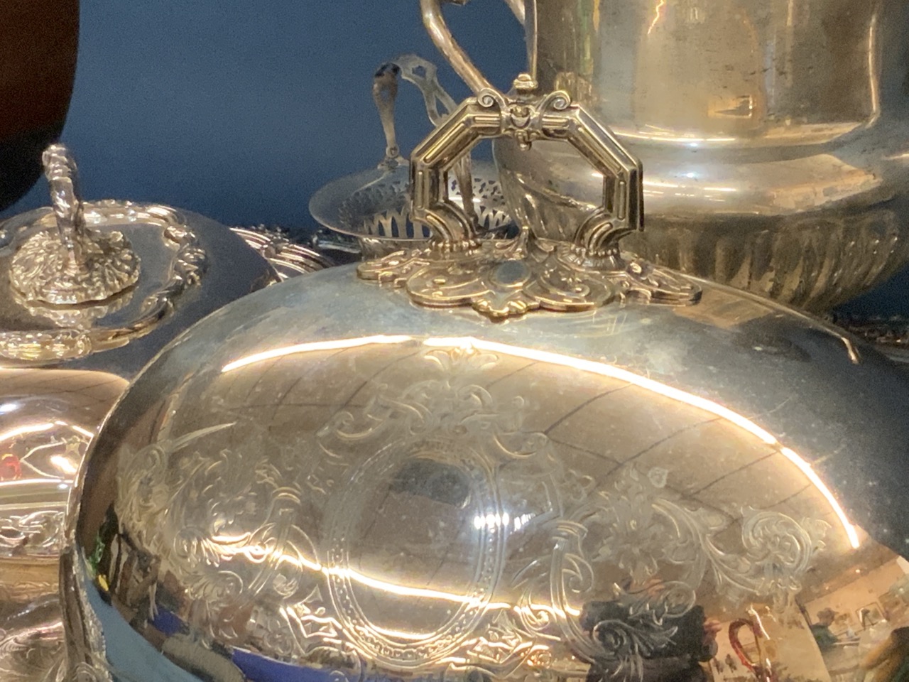 Emil Gruppe c.1950 Fall Birches, Violet Schoenberg c.1939 Lion Family, Greenwich, CT Fire Chief Helmet, Fire carriage lanterns, Fine Libbey Cut Glass Tray and Bowl, RARE Boston & Sandwich Bee & Wheat Glass Service,Sterling silver by Reed & Barton, Smith, Cartier, Gorham, English and more. Over 50 lots of sterling silver, coins, bronze Clocks, Oil Paintings, Nautical Art, Homespun, ephemera, collectibles, curiosities, Steiff and other early teddy bears,Black Americana, vintage clothing, large amounts of jewelry tray lots, amber, African trade beads and more!