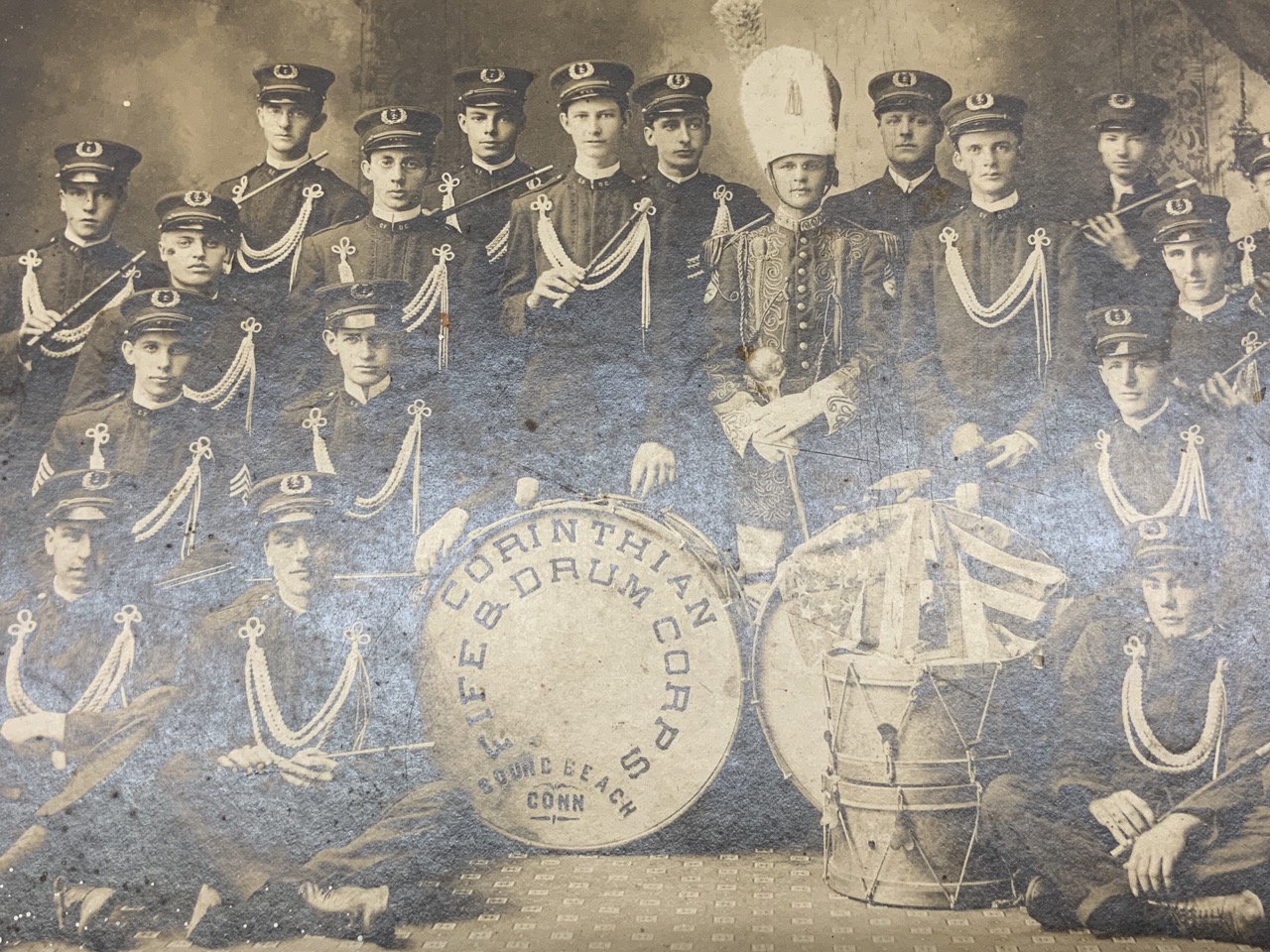 Original Corinthian Fife And Drum Corps Of Sound Beach, CT Black and White Photograph c. 1910