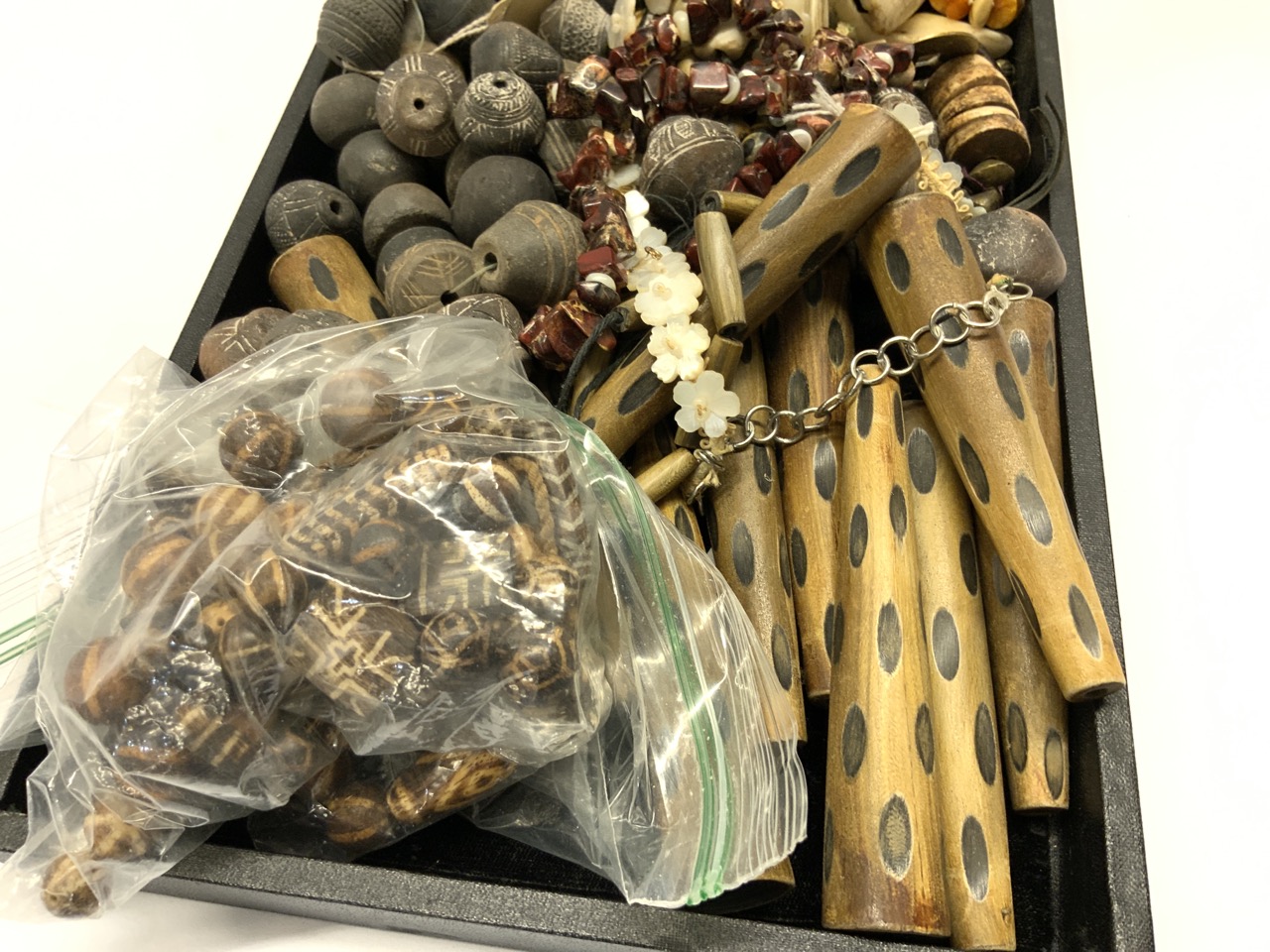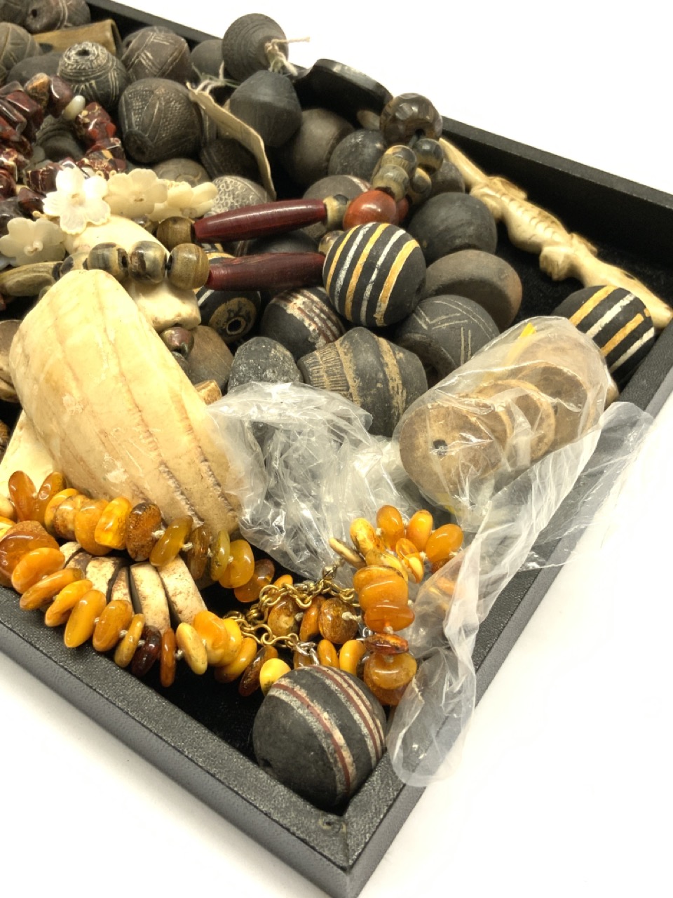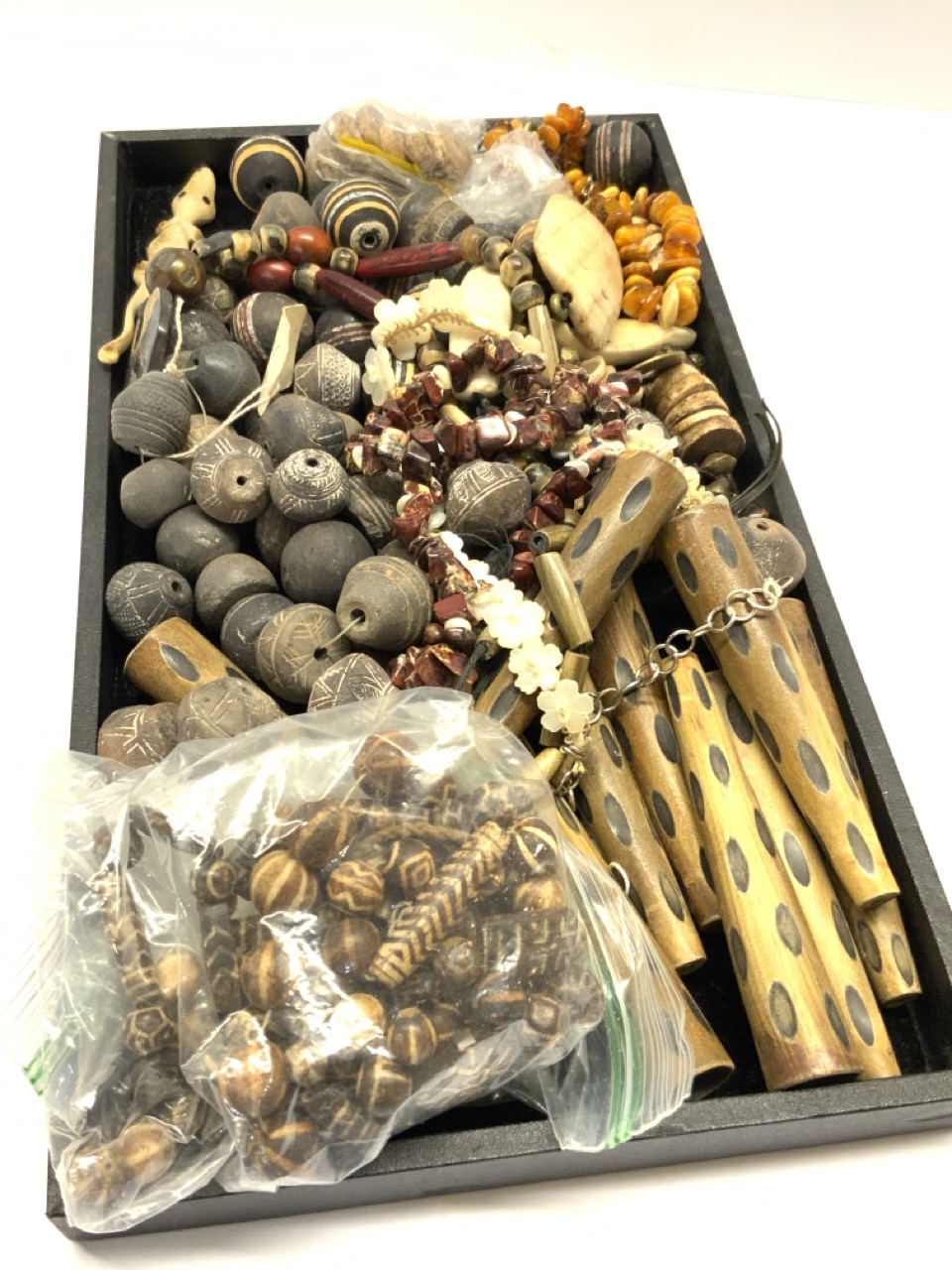 Assorted estate jewelry. Beads from Mali, Carved Wood etc.