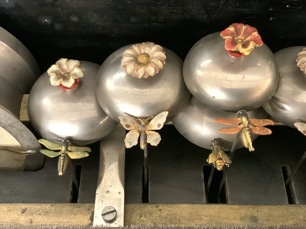 The box is most notable for the design of mallets in the form of insects with fine colored paint enameling.