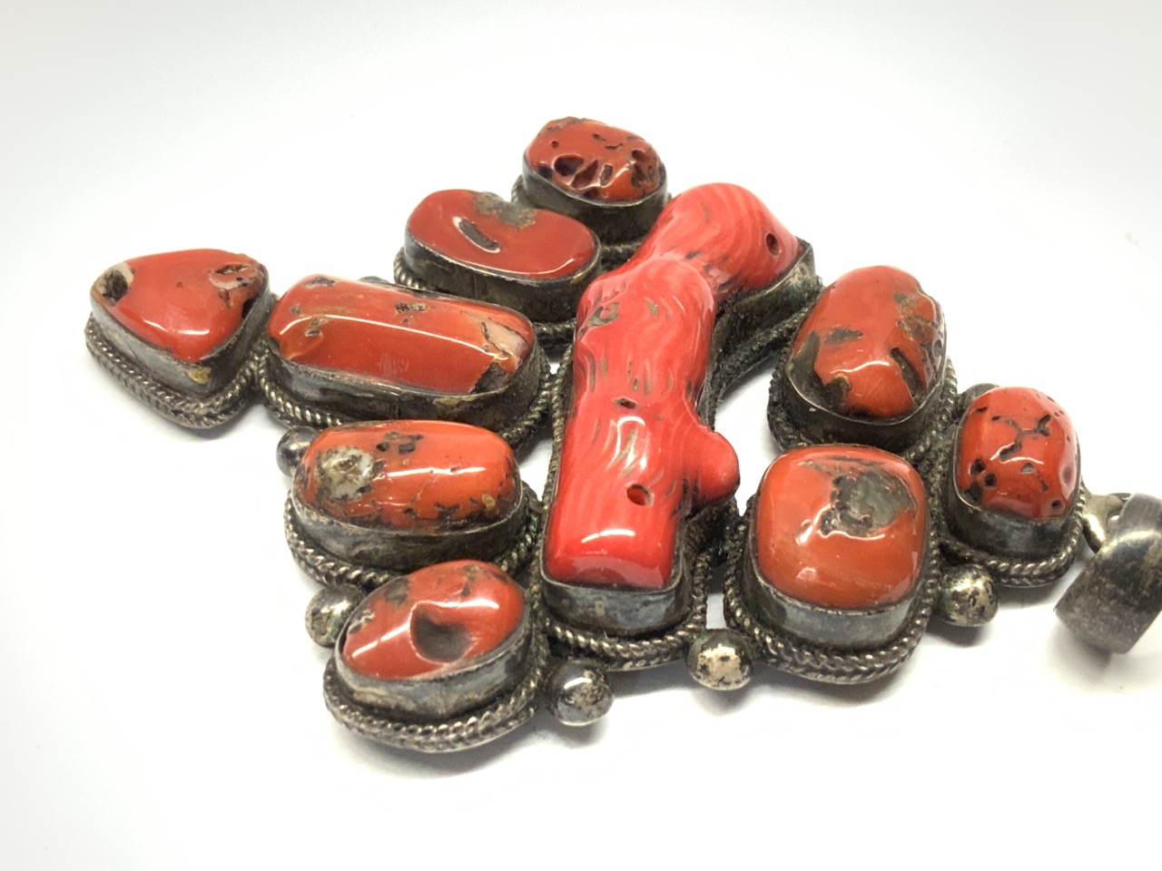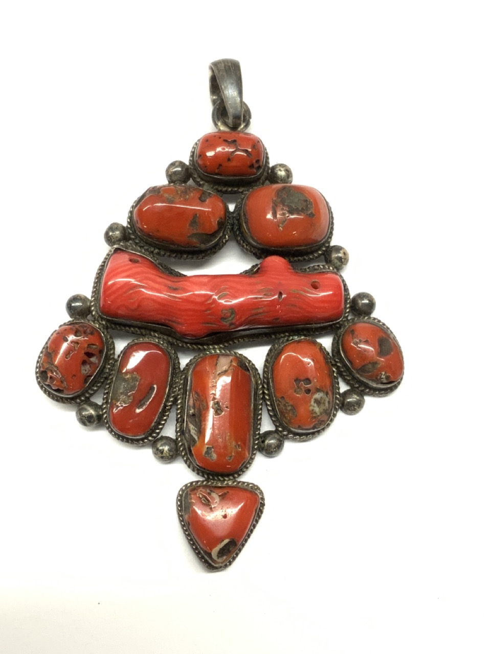 Large Sterling Silver Coral Pendant.