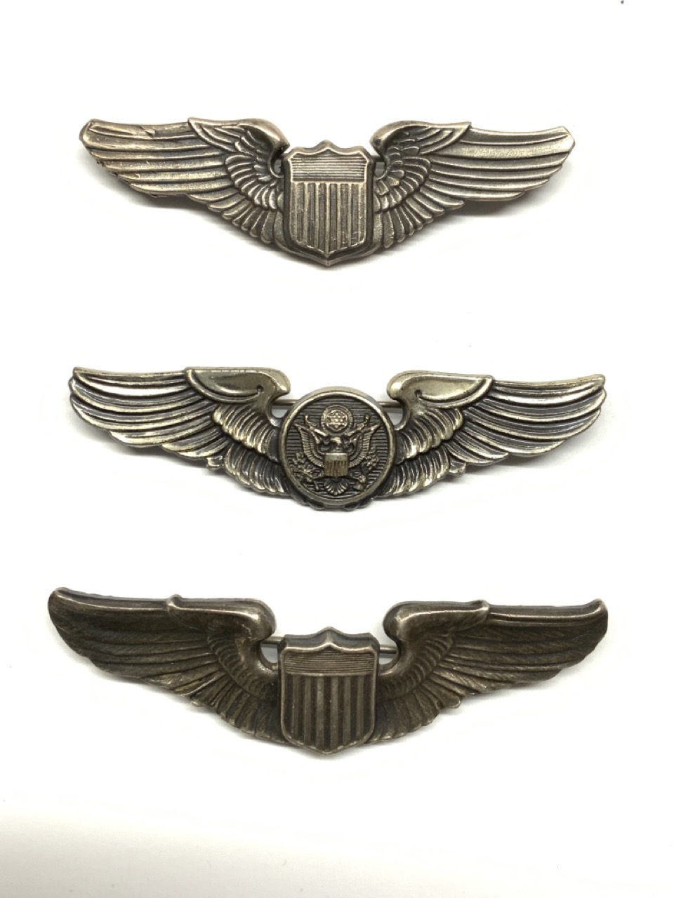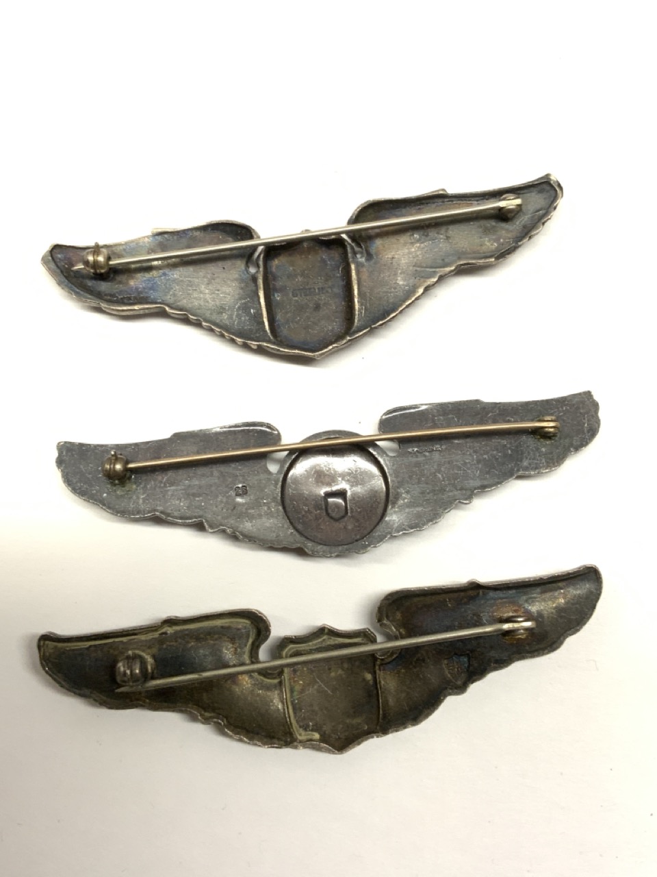 Three (3) WWII Era Military Airforce Pilot Wings.