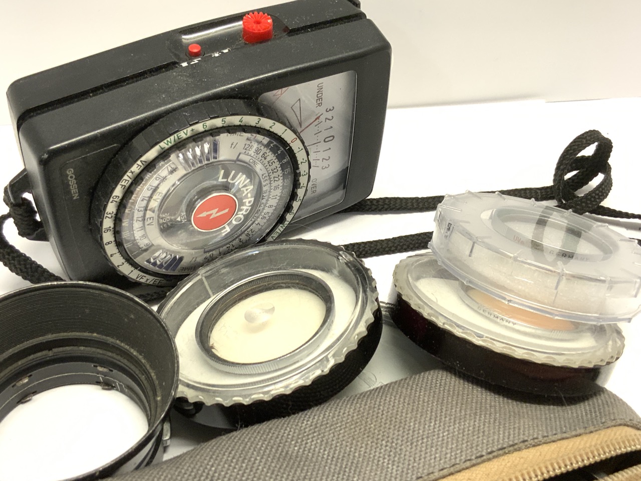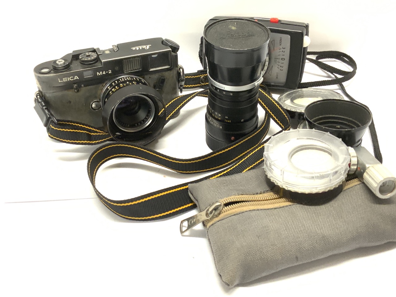 Camera body leather covering was removed and owner had planned to re-cover it. One owner. Camera is well used but in working order. Lens, Filters, Meter Included. Please see photograph preview or call.