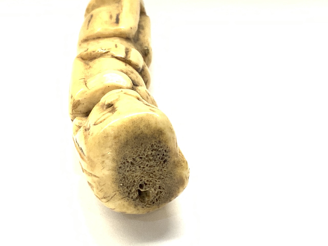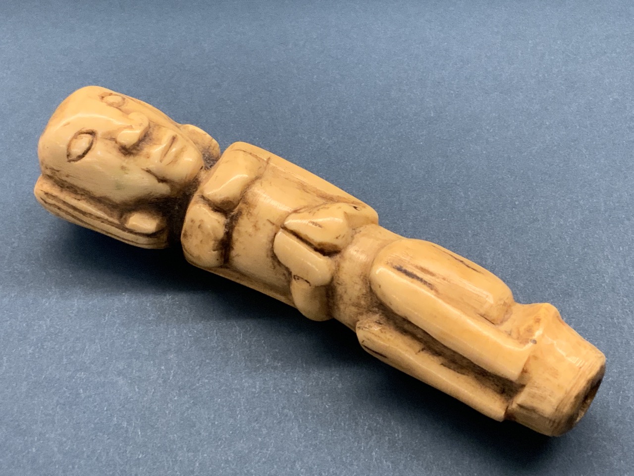 Antique carved bone figural sword handle.