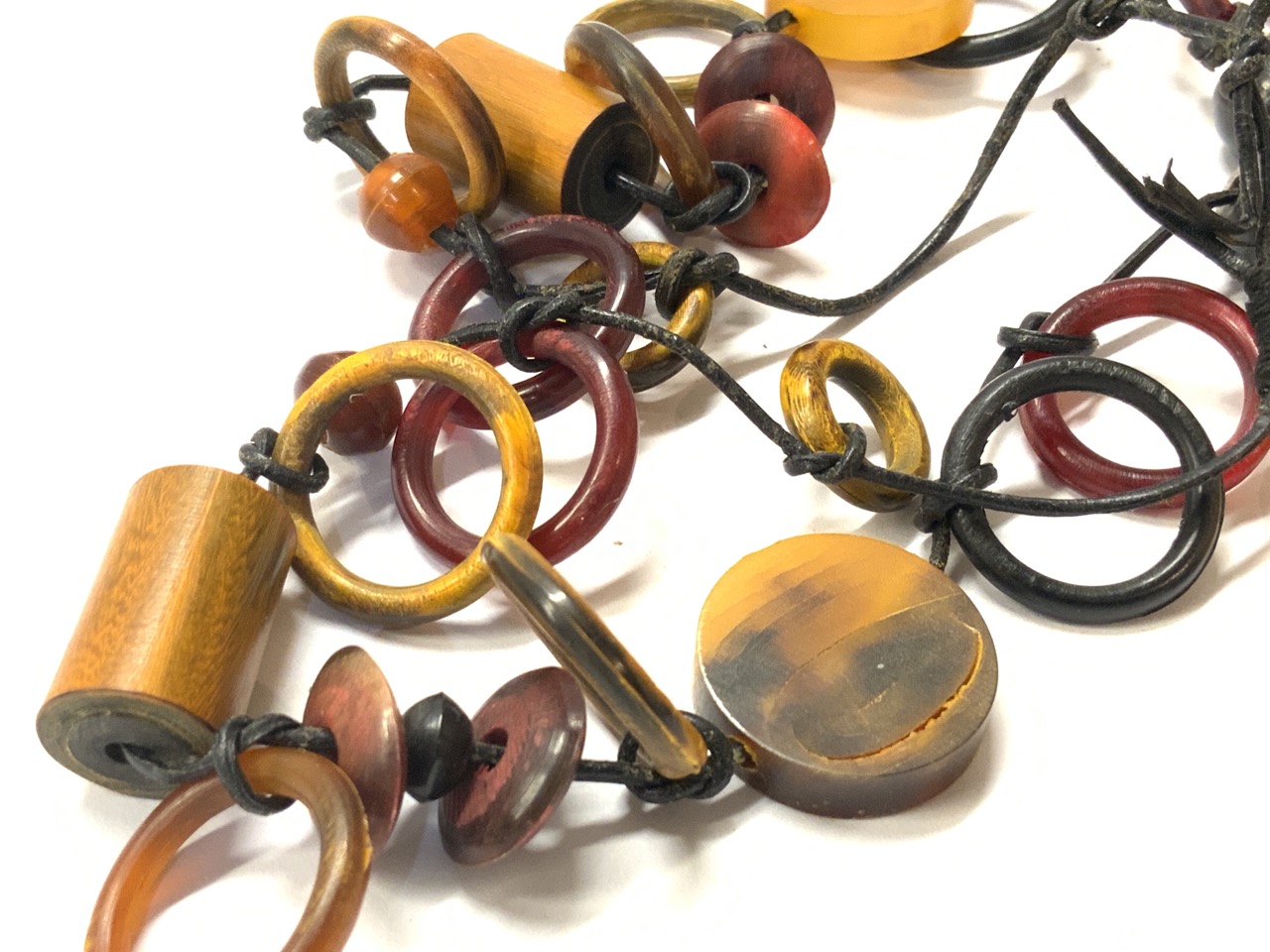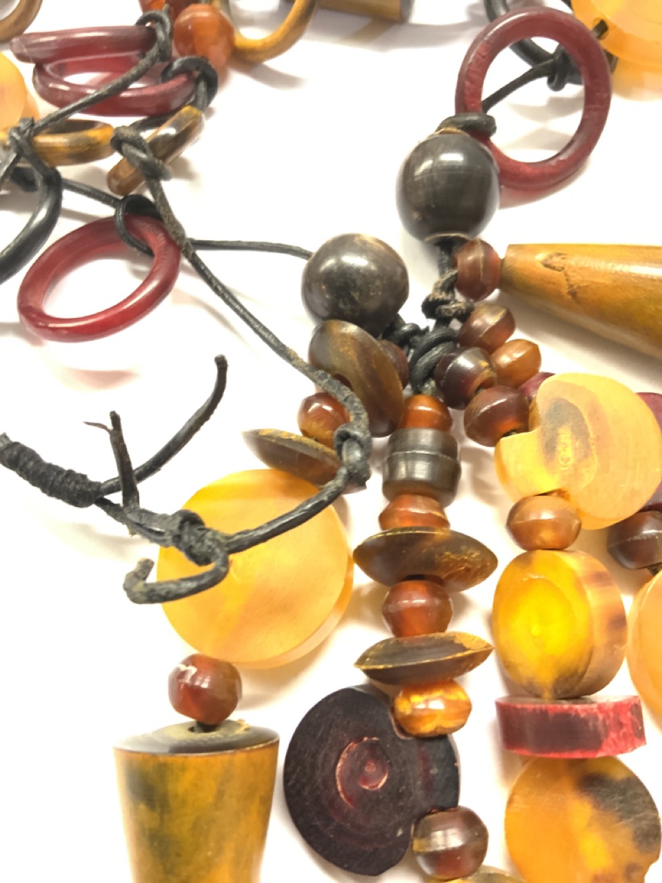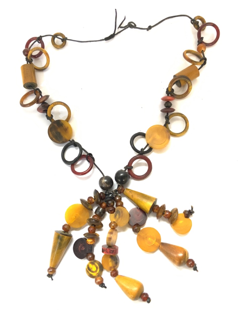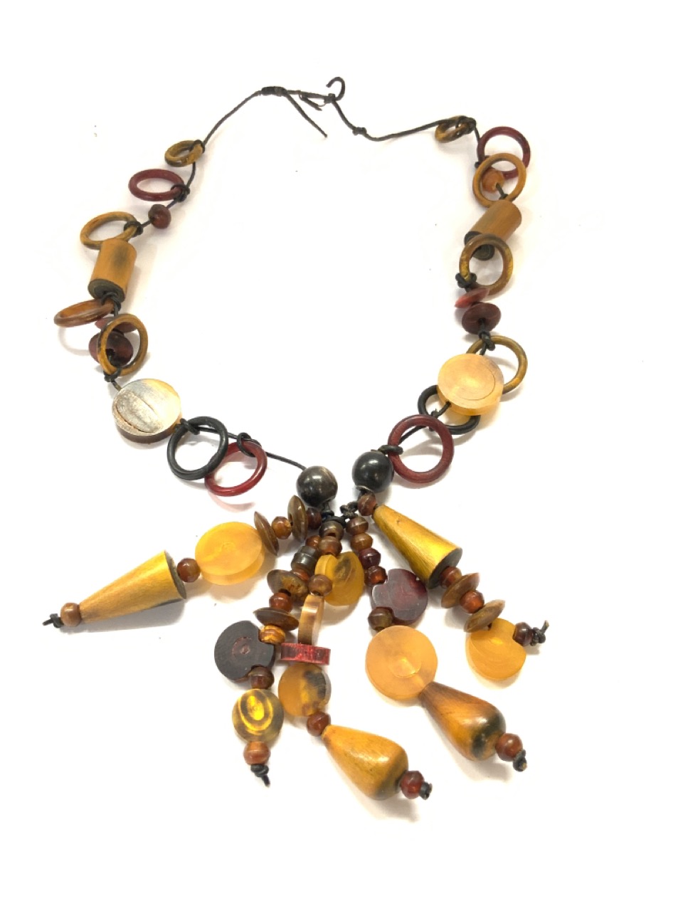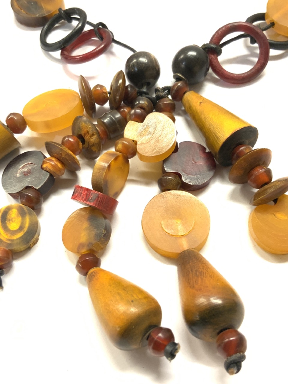 Vintage Horn, wood and amber carved necklace.