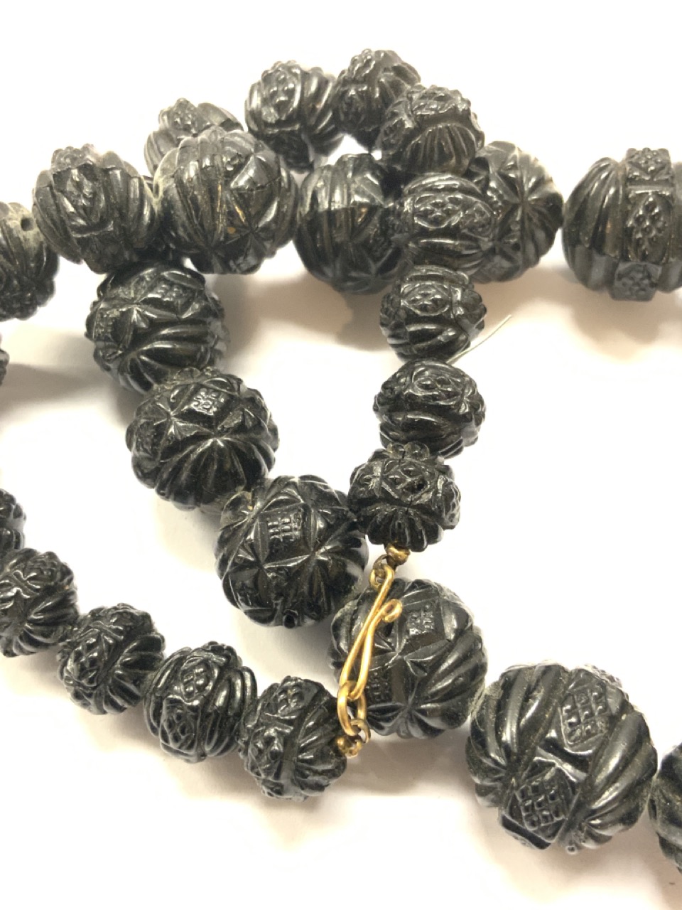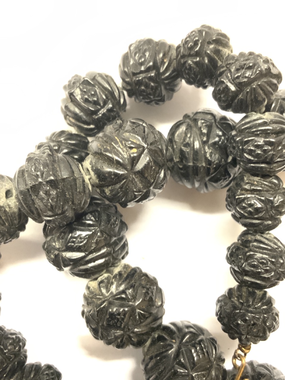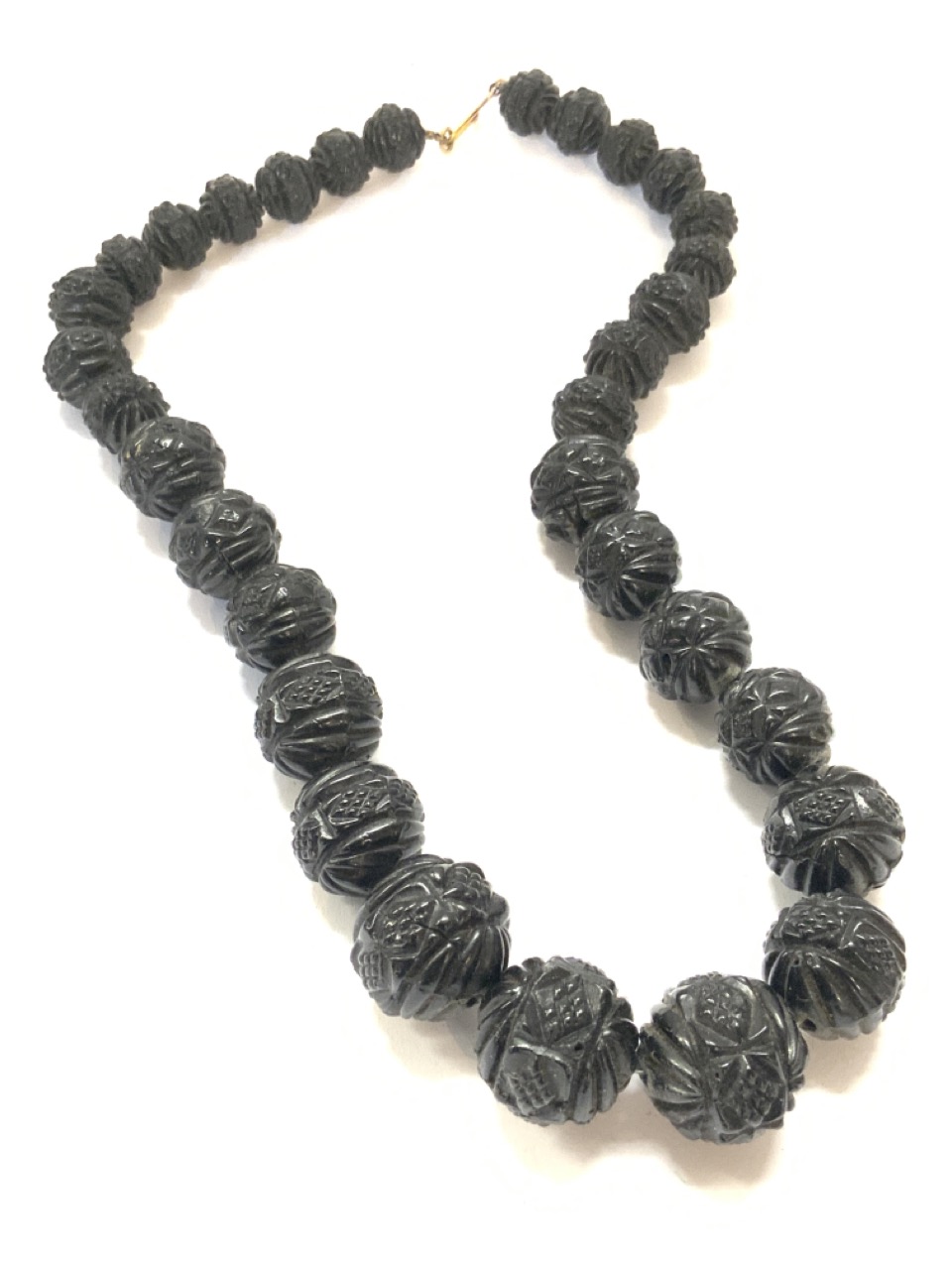 Black carved bakelite necklace.