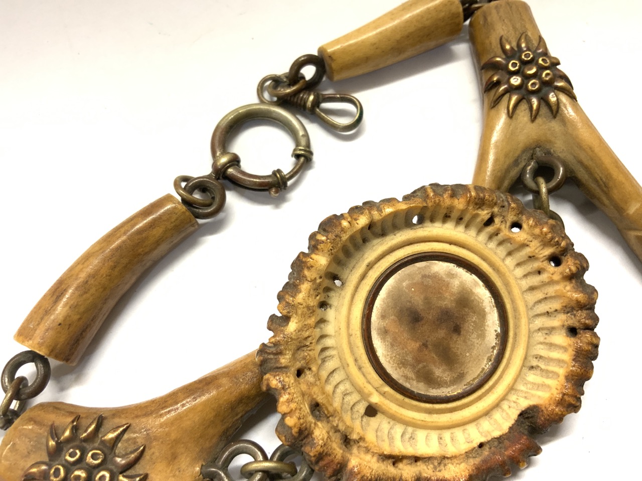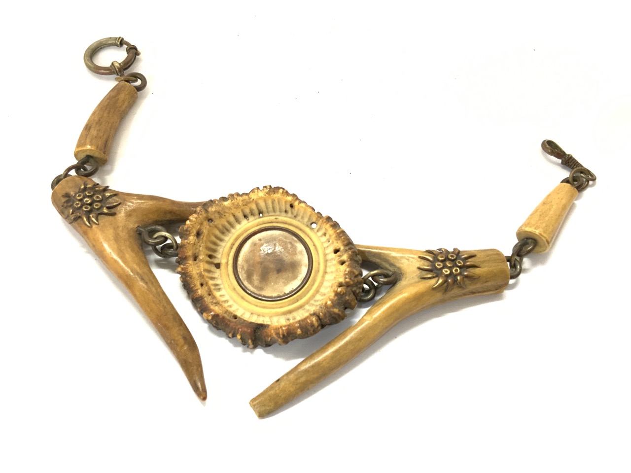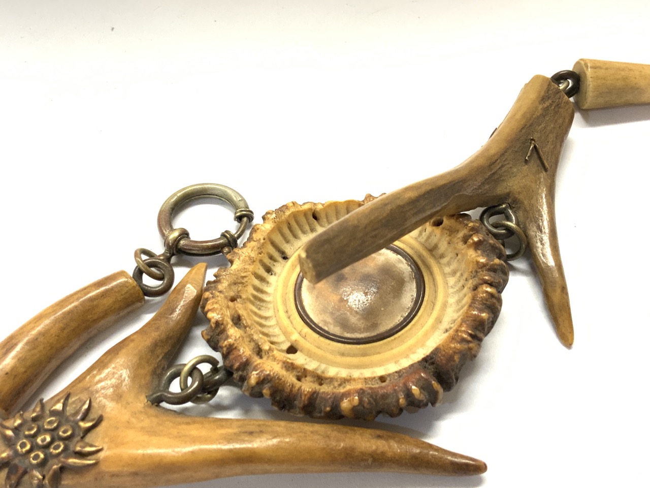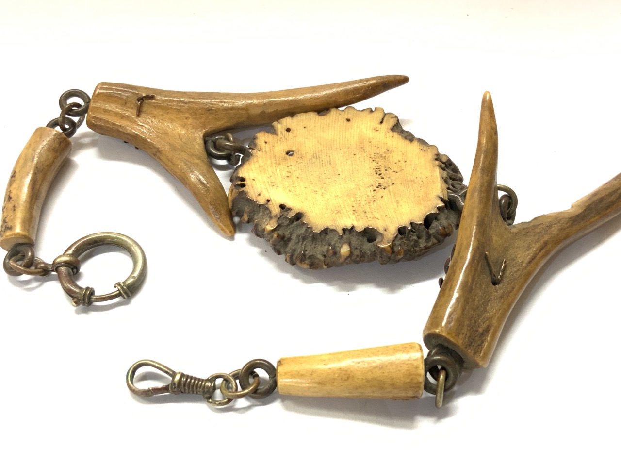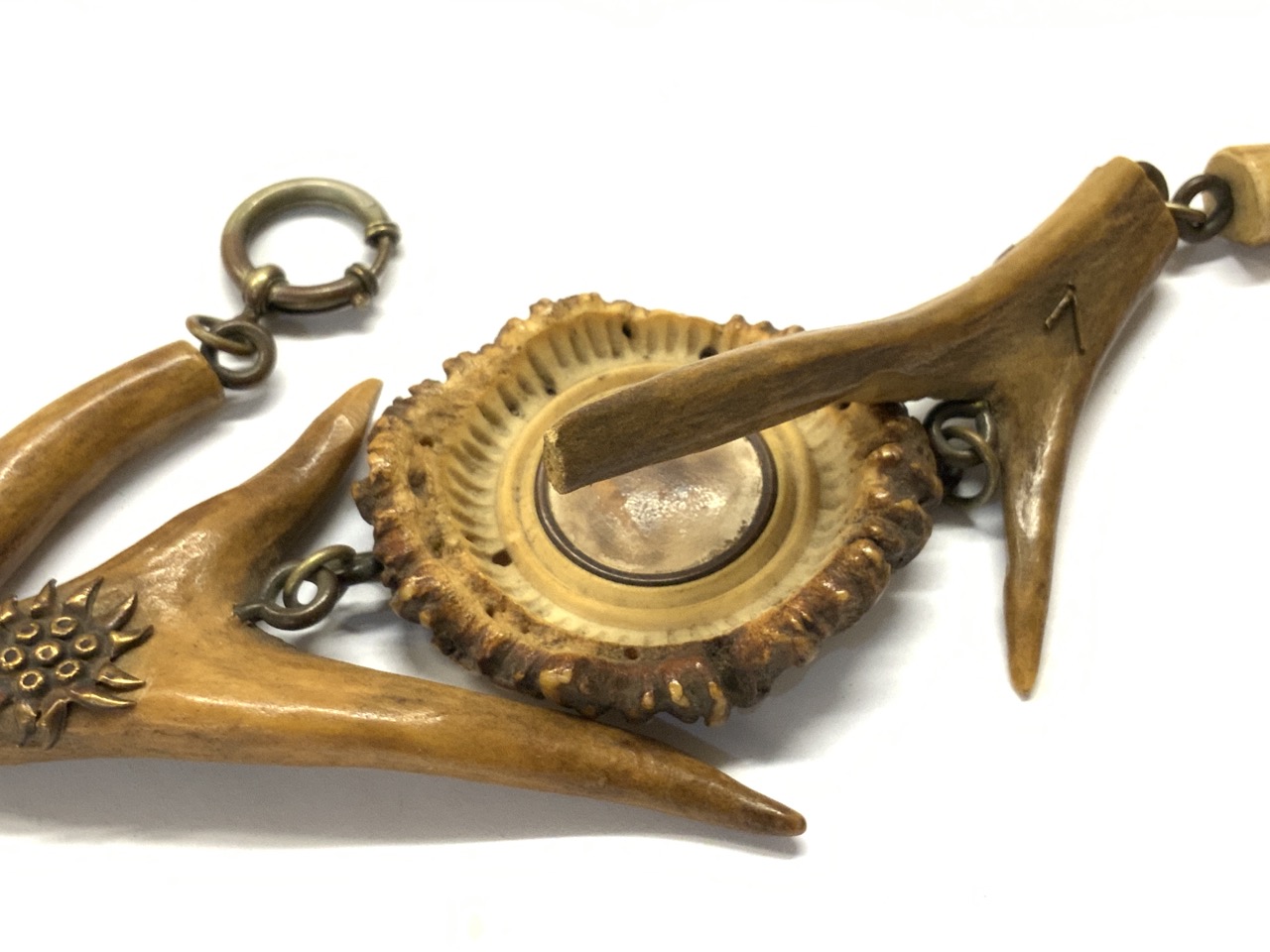 An antique deer antler Gent's watch fob. Probably Germany or Austria later 19th century.