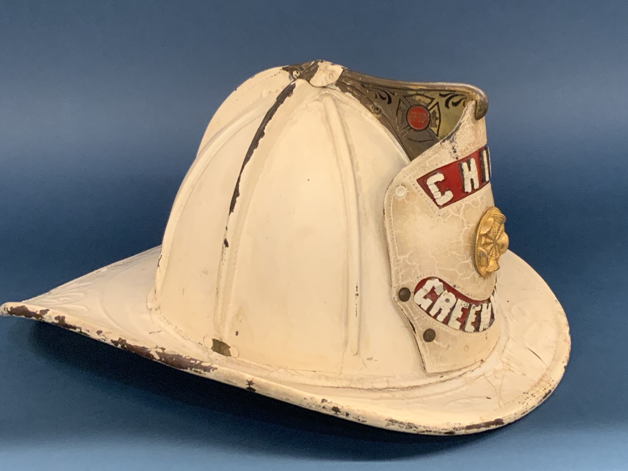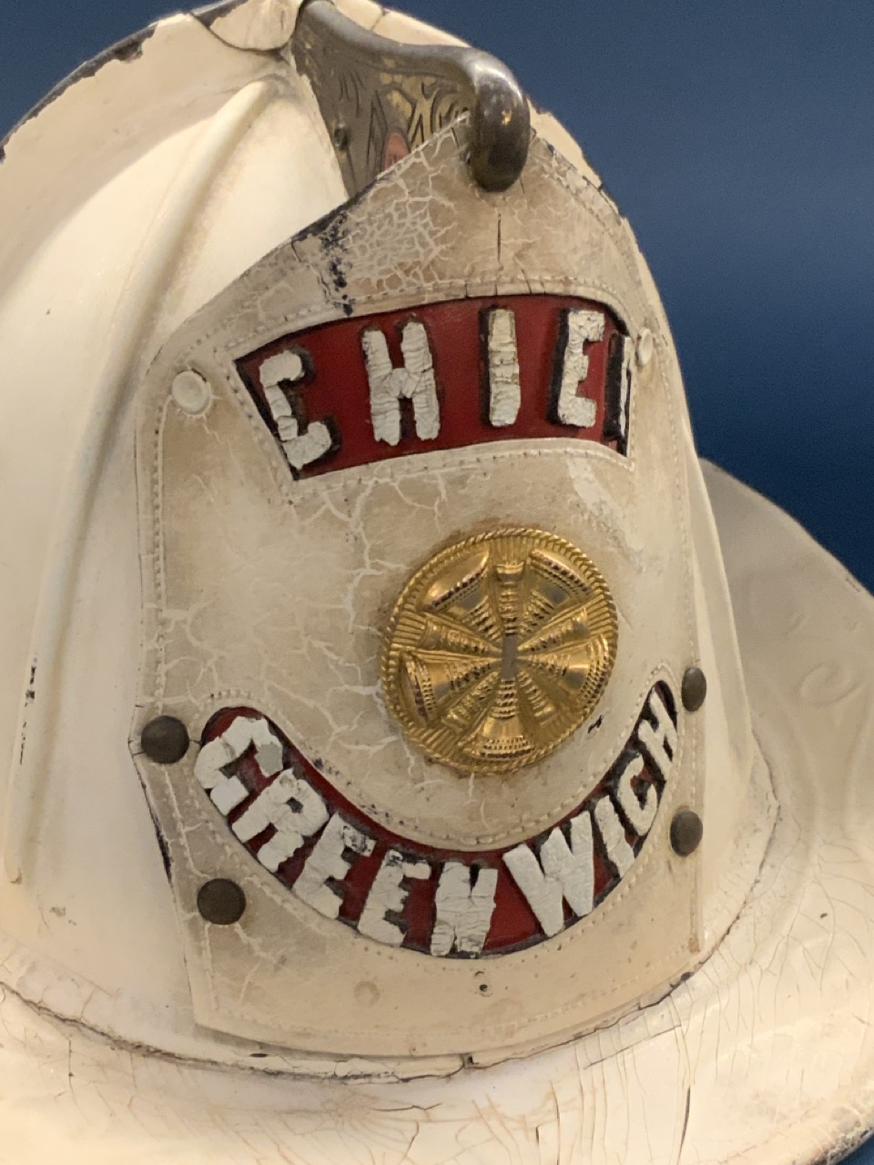 Greenwich Connecticut Fire Chief's Helmet by Cairns And Bros. New York. White painted leather. Very good.