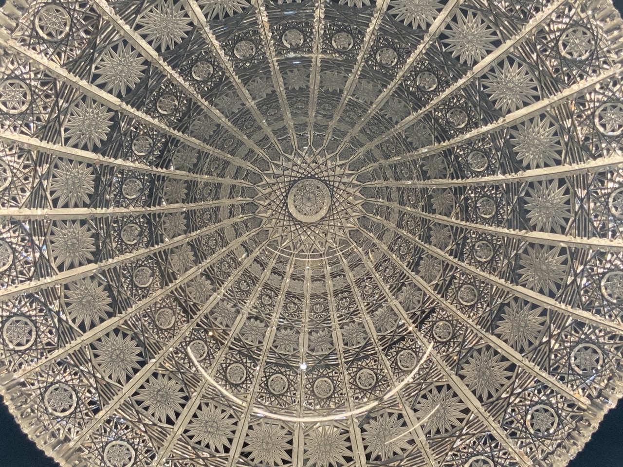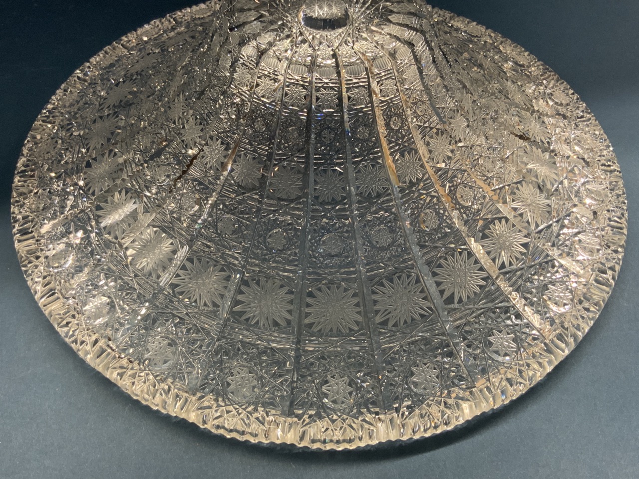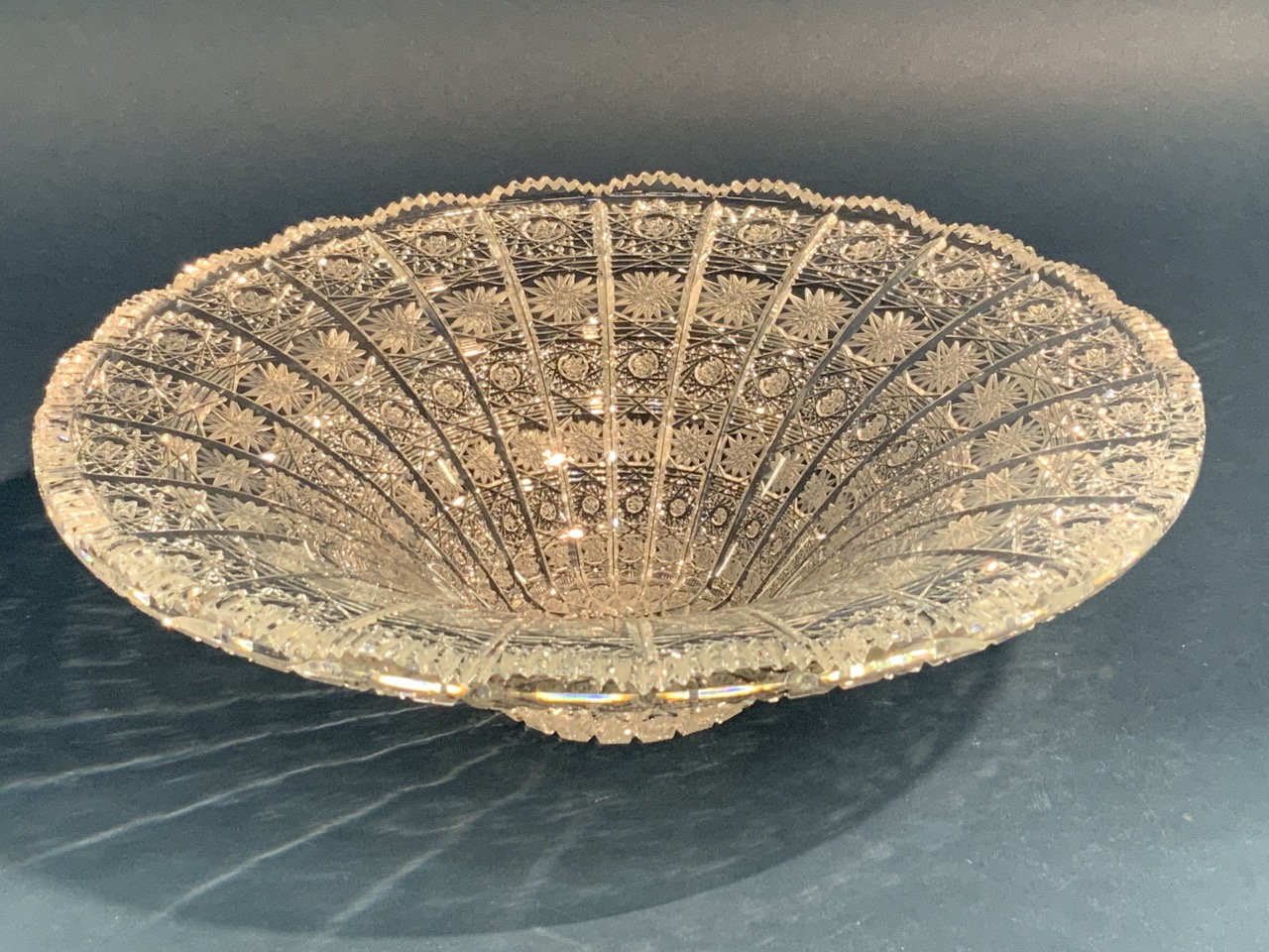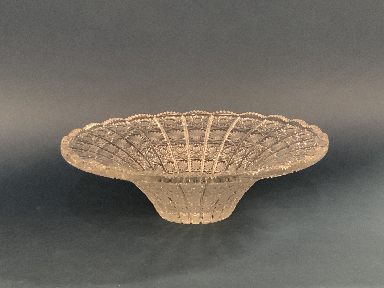 A fine Libbey cut glass bowl. Very fine condition. No chips or cracks seen during visible eye inspection. Expect possibly edge nips. Unsigned. The following matching tray Lot #25 is signed at center. Purchased in 1950's at a Florida Auction House.