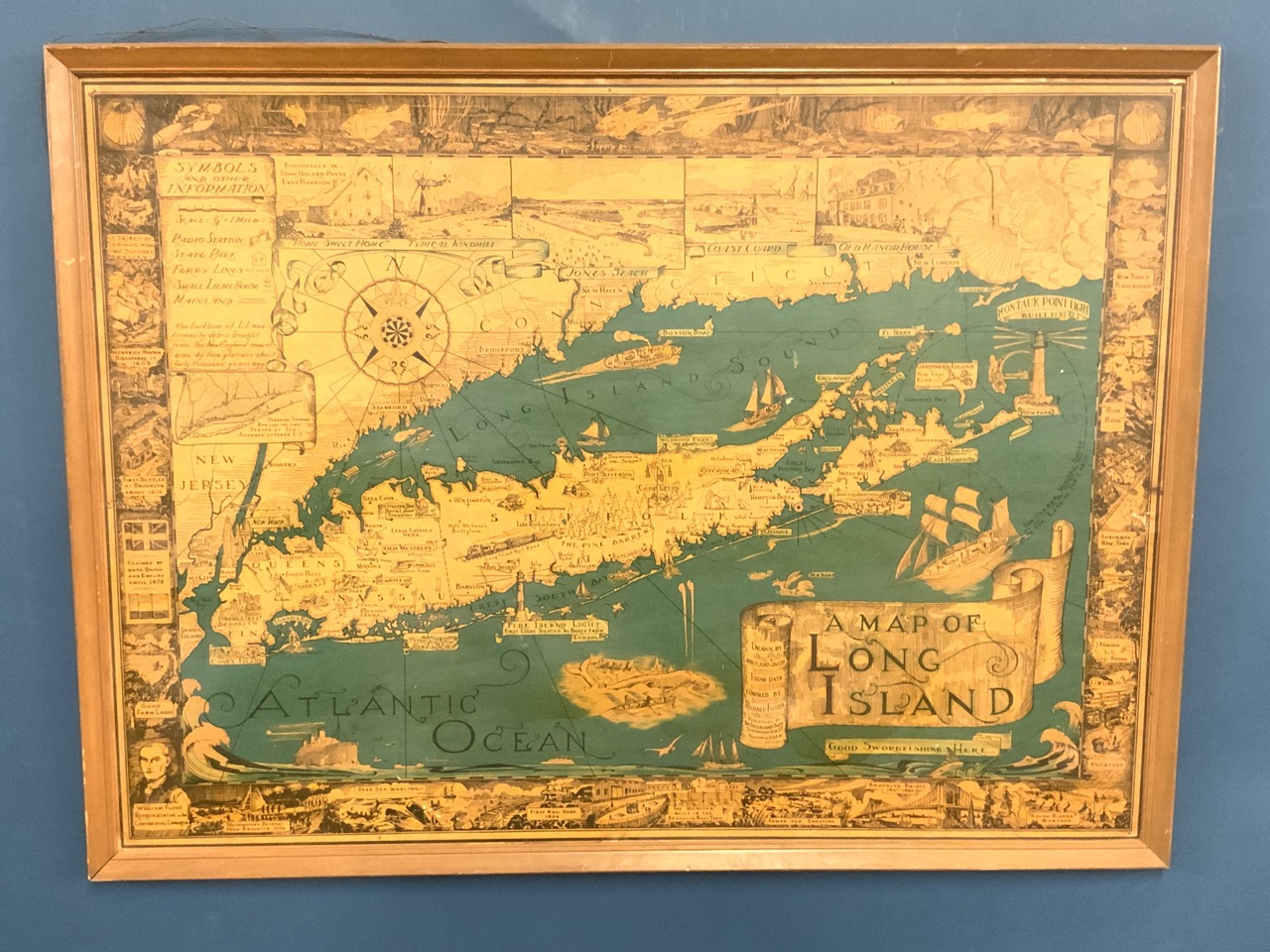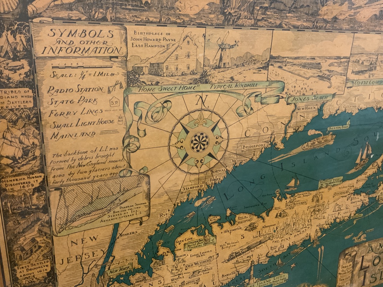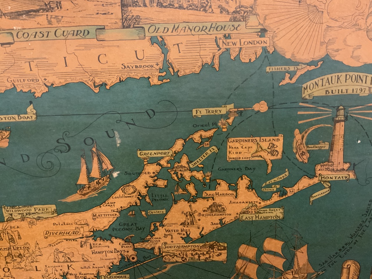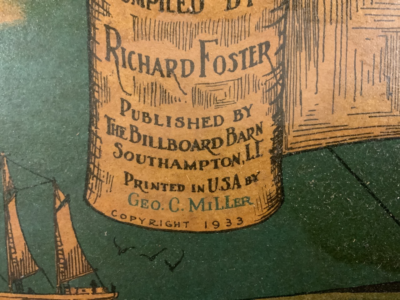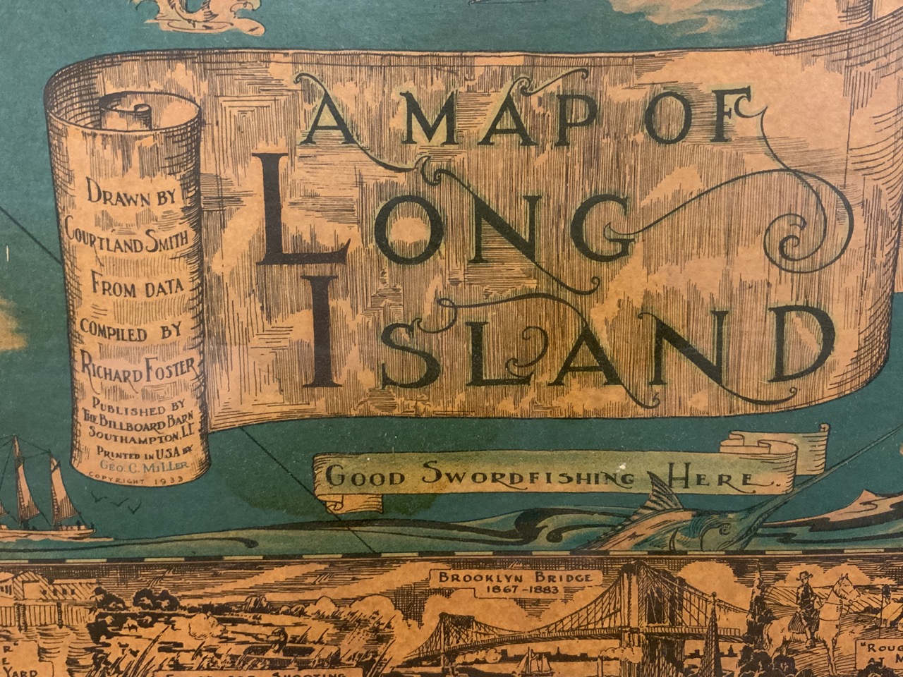 1933 Map Of Long Island by Cortland Smith from data compiled by Richard Foster. Published by The Billboard Barn South Hampton, LI