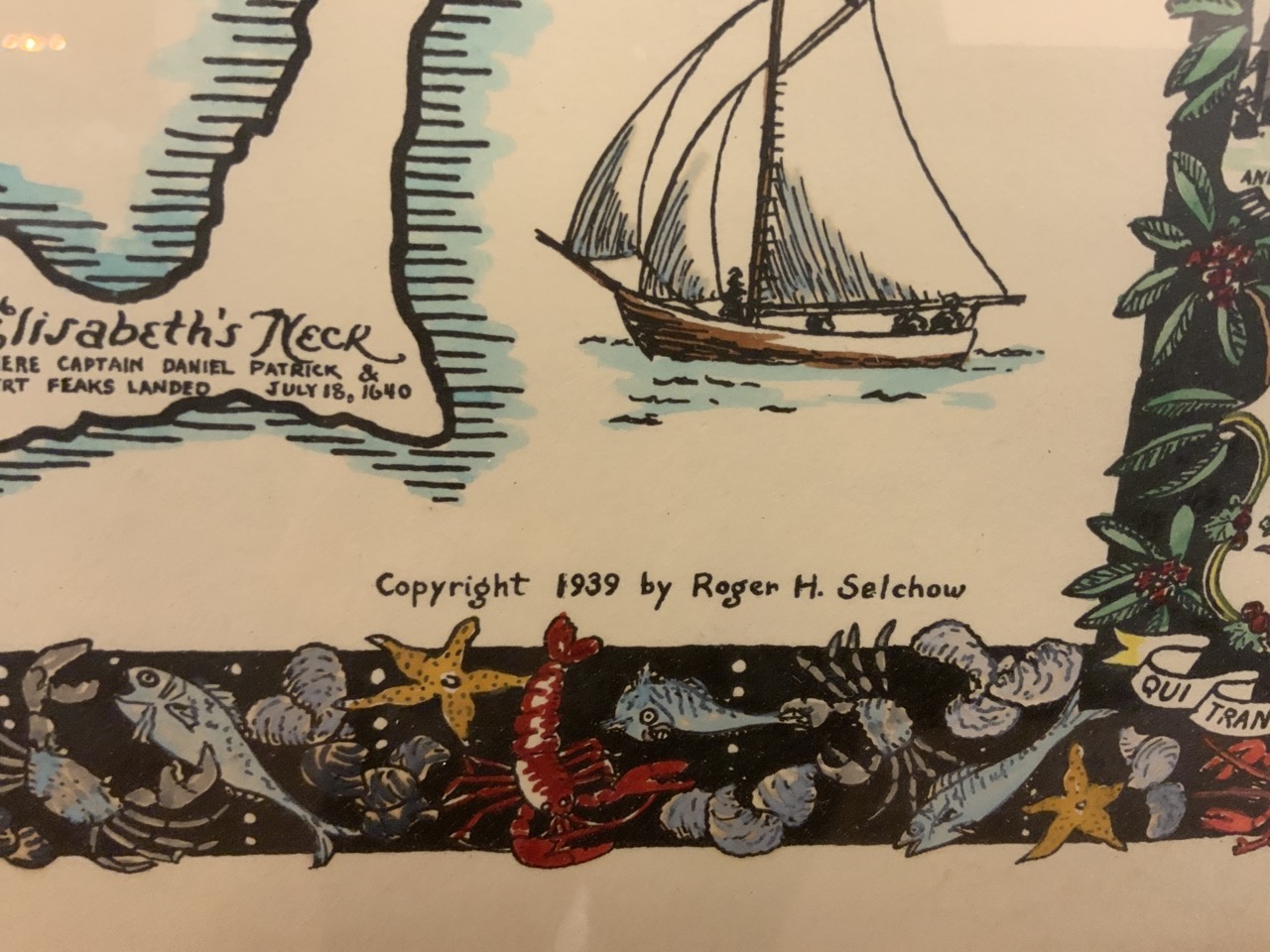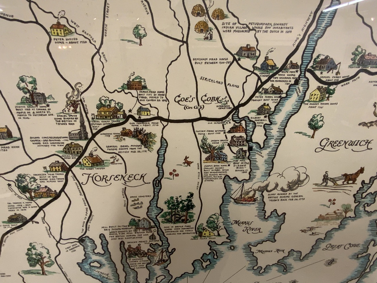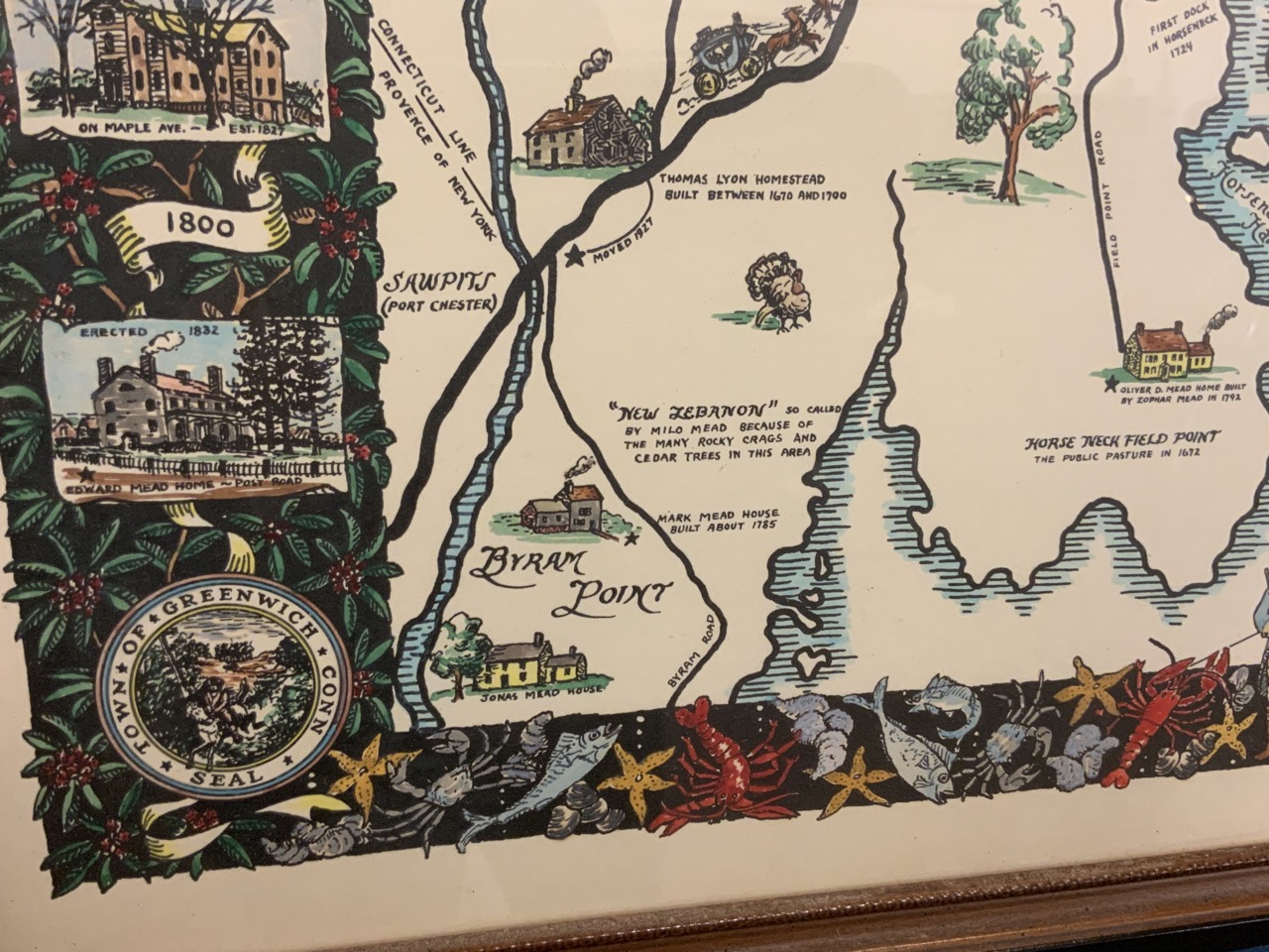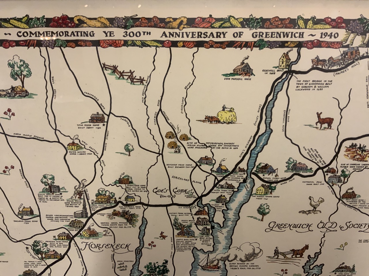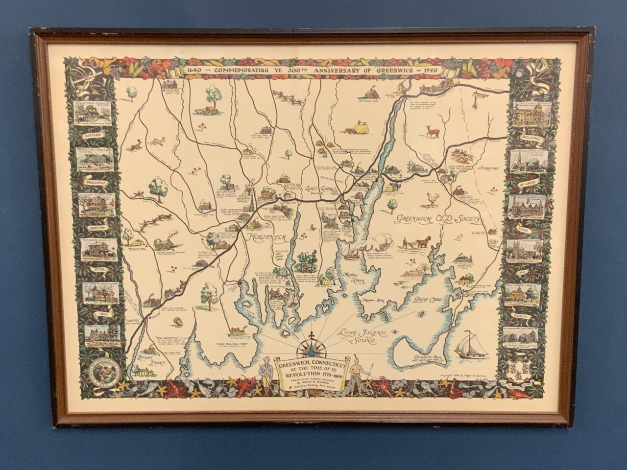 Map of Greenwich Connecticut commemorating their 300th Anniversary by Selchow. c.1939.
