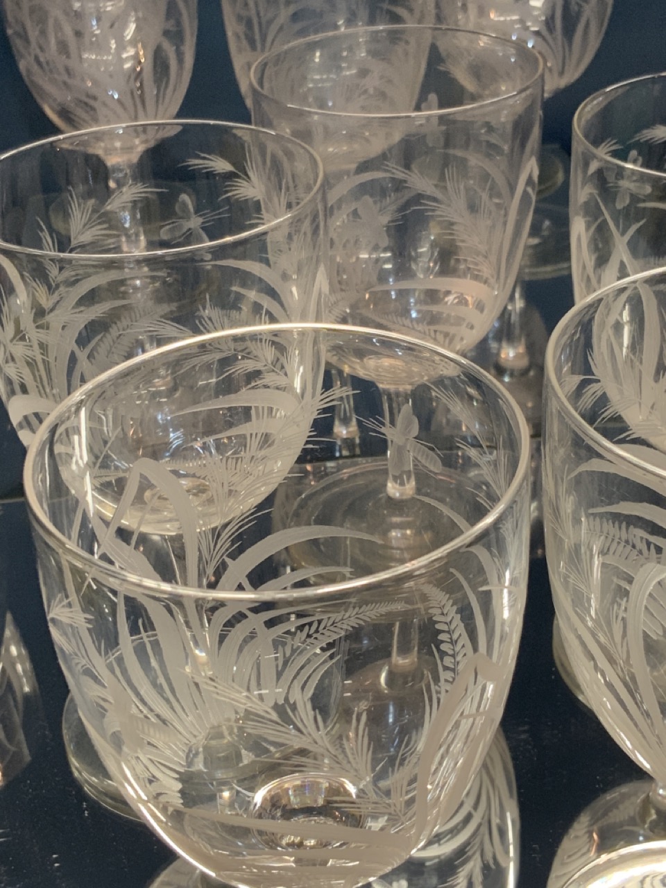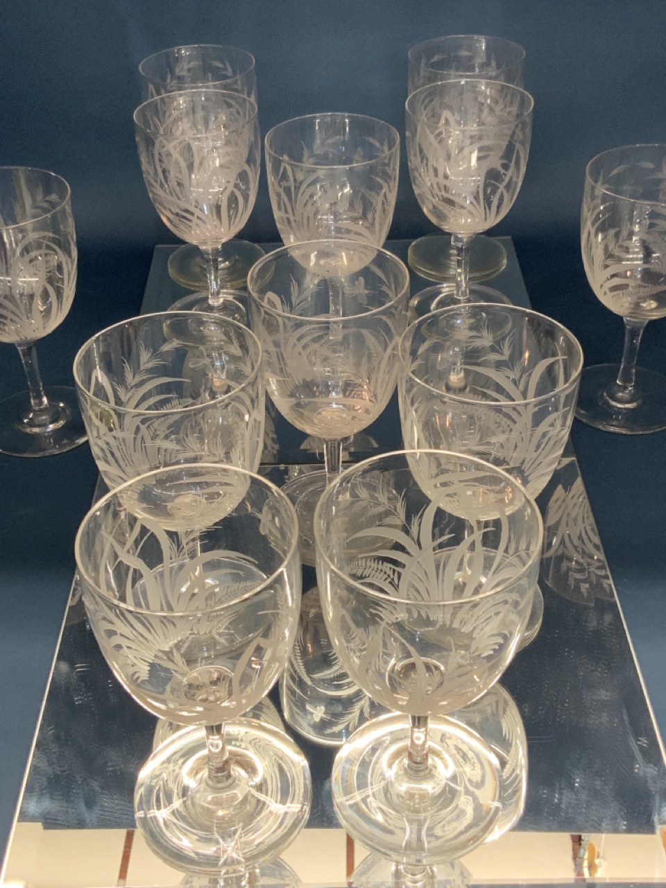 Selling an original purchased collection from the factory and being in one family since the 19th century. An exceptional find and pleased to offer it. Being sold in multiple lots by glass form type.