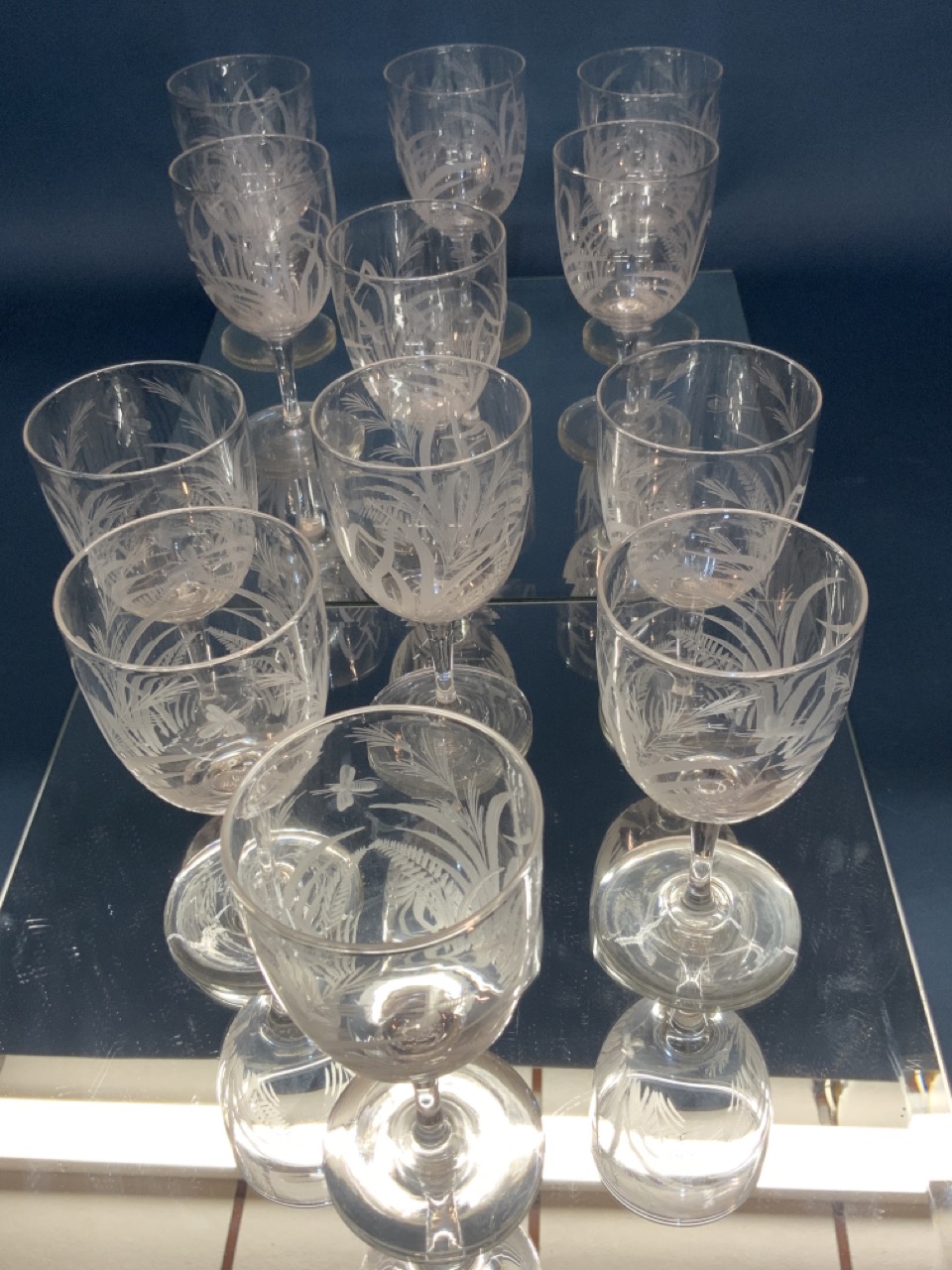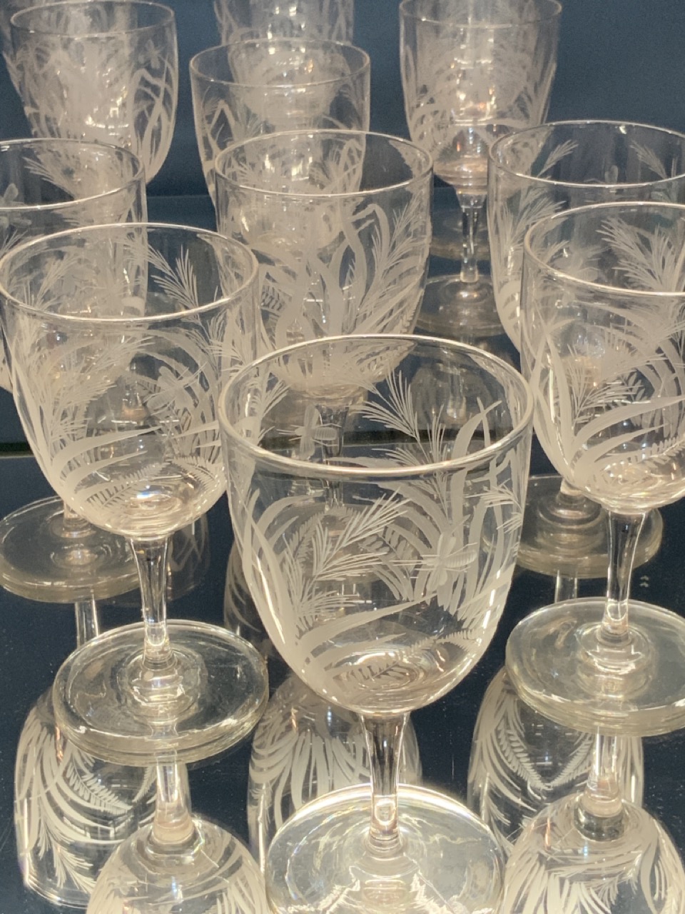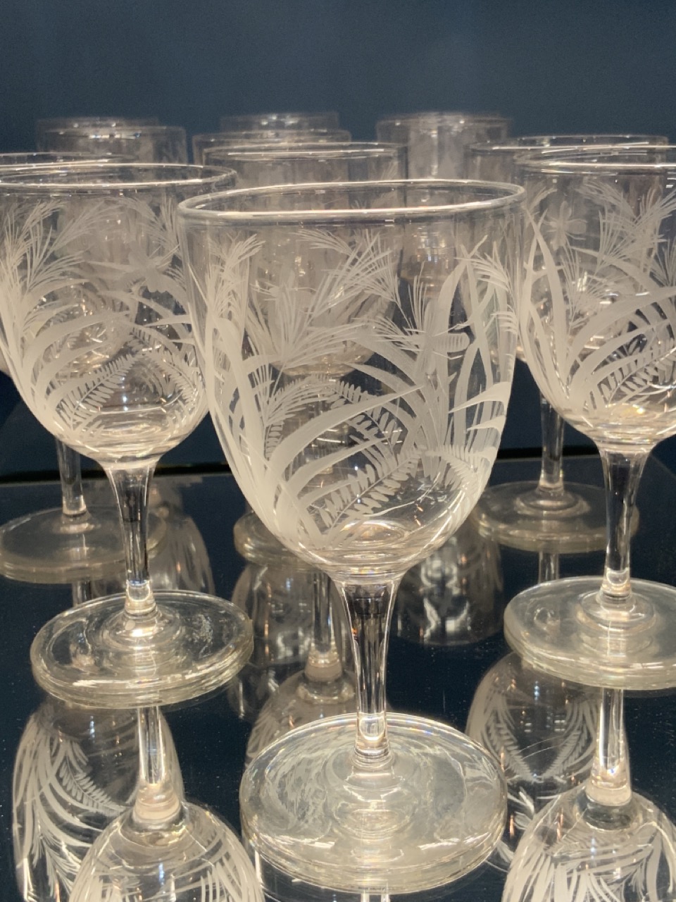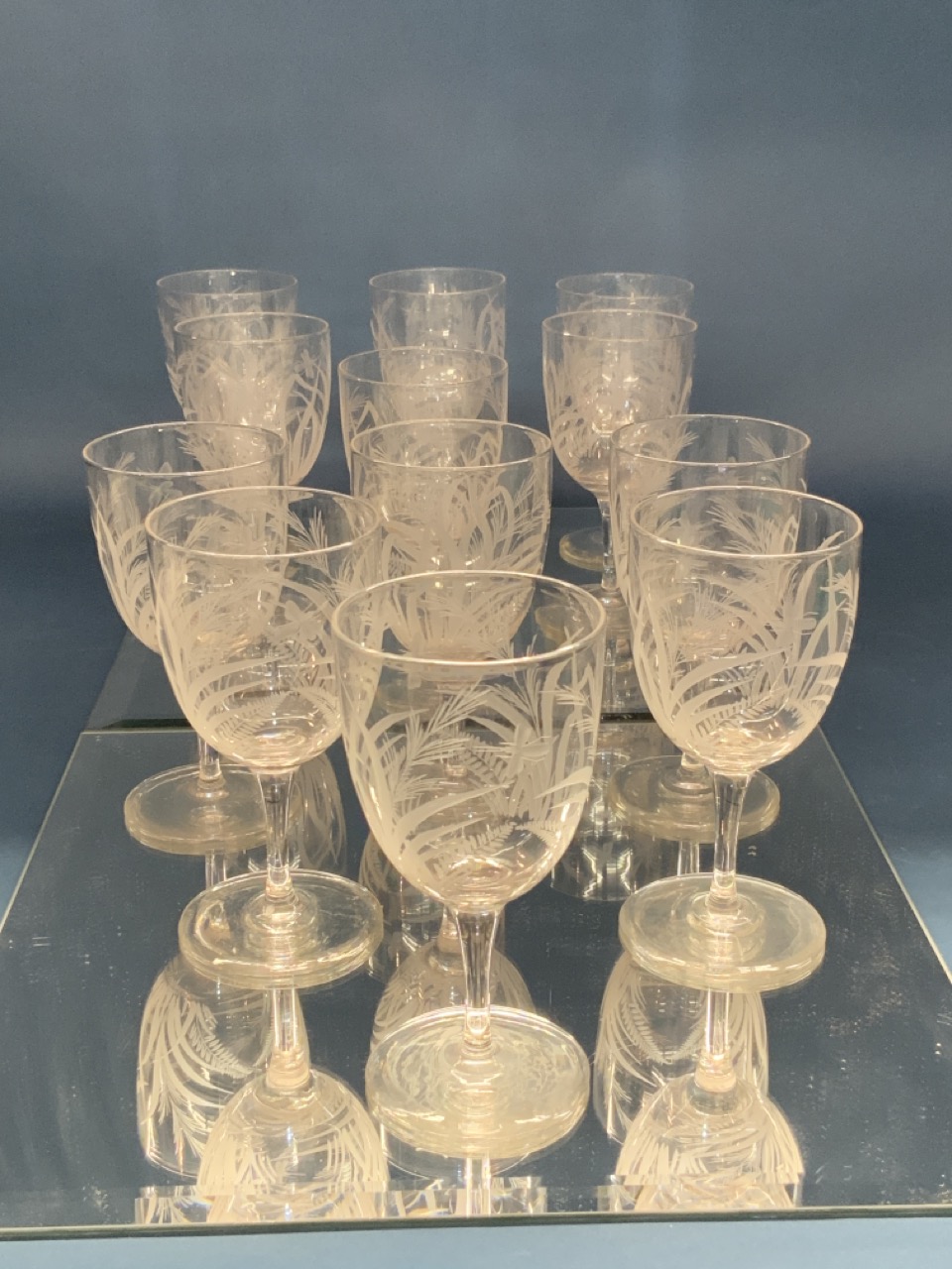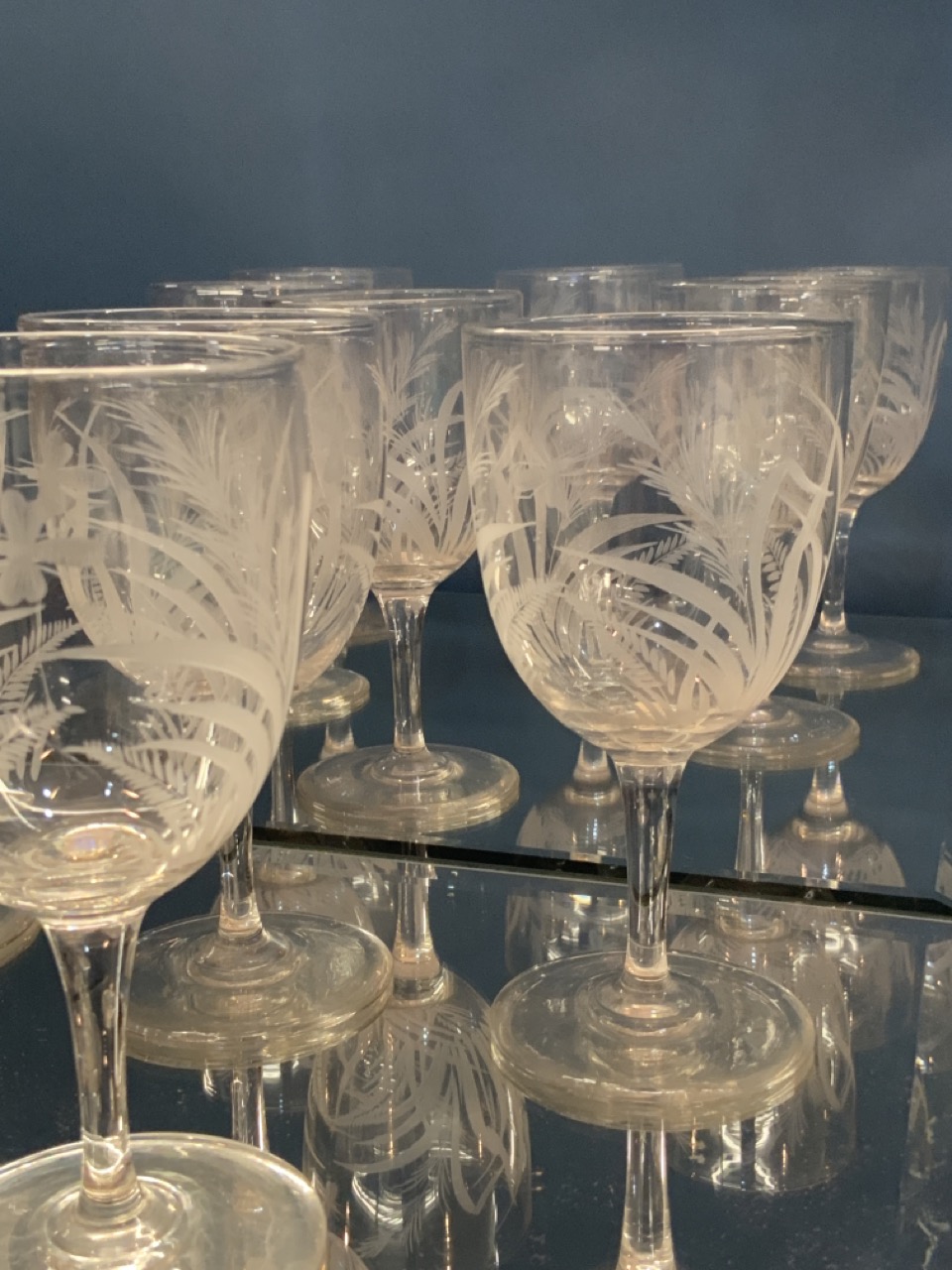 Selling an original purchased collection from the factory and being in one family since the 19th century. An exceptional find and pleased to offer it. Being sold in multiple lots by glass form type.
