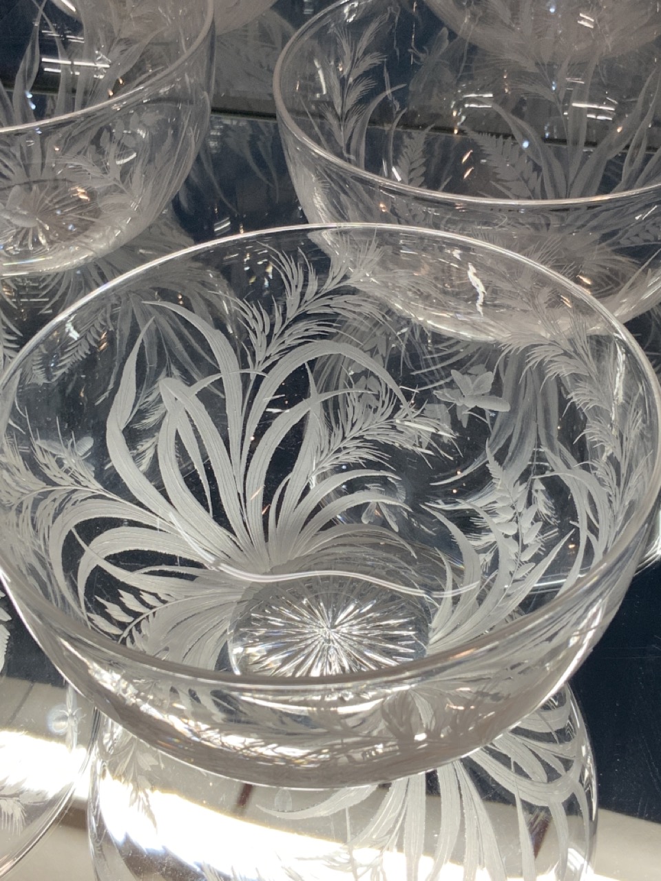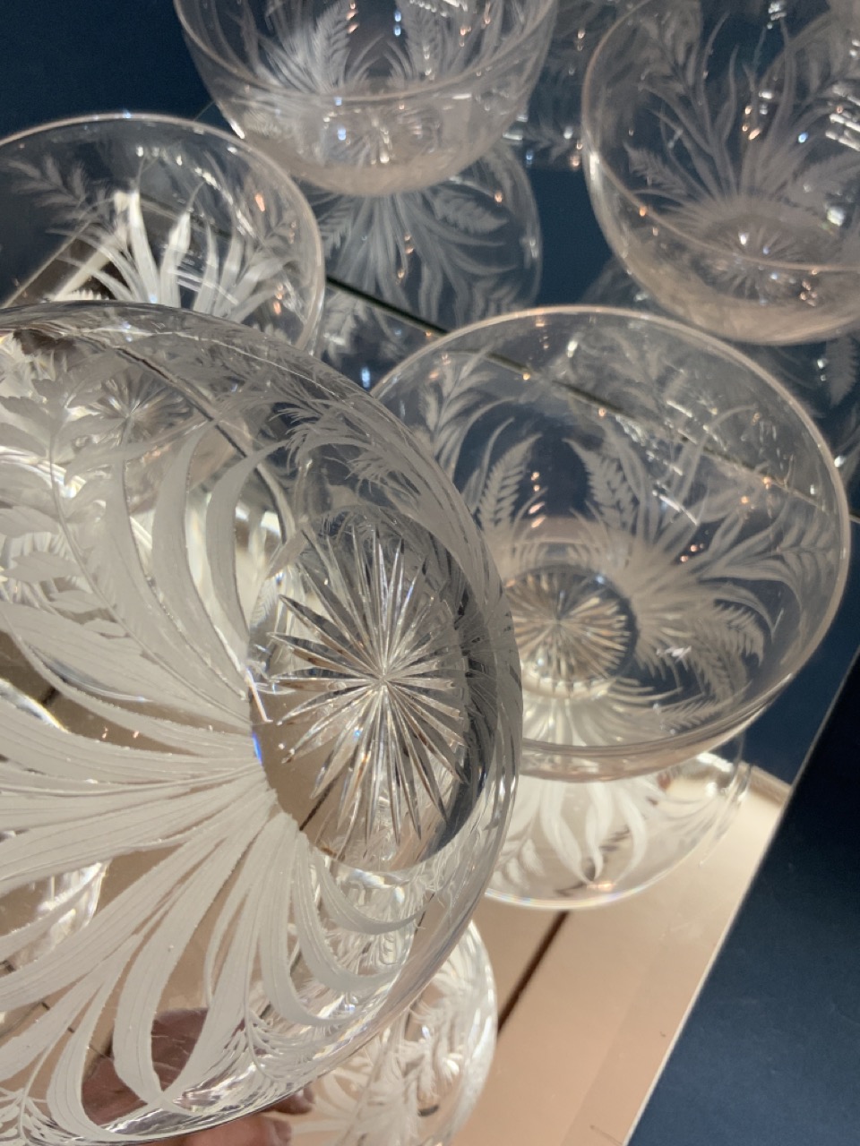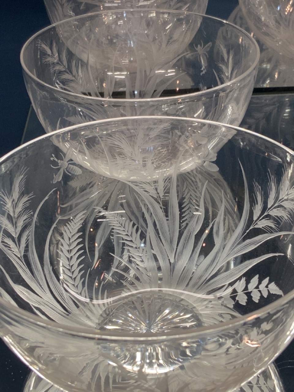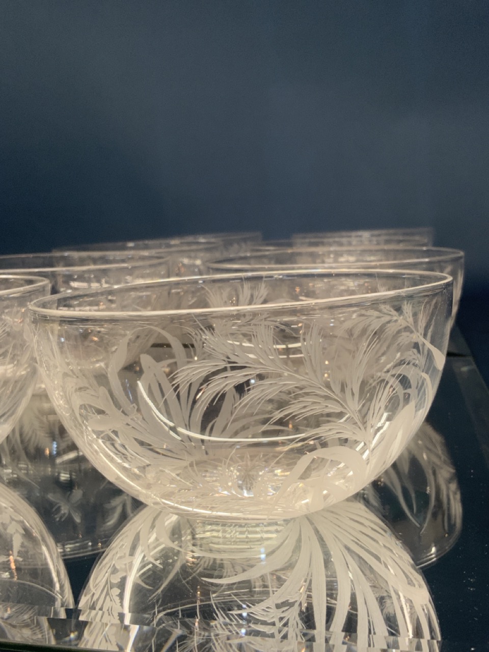 Selling an original purchased collection from the factory and being in one family since the 19th century. An exceptional find and pleased to offer it. Being sold in multiple lots by glass form type.
