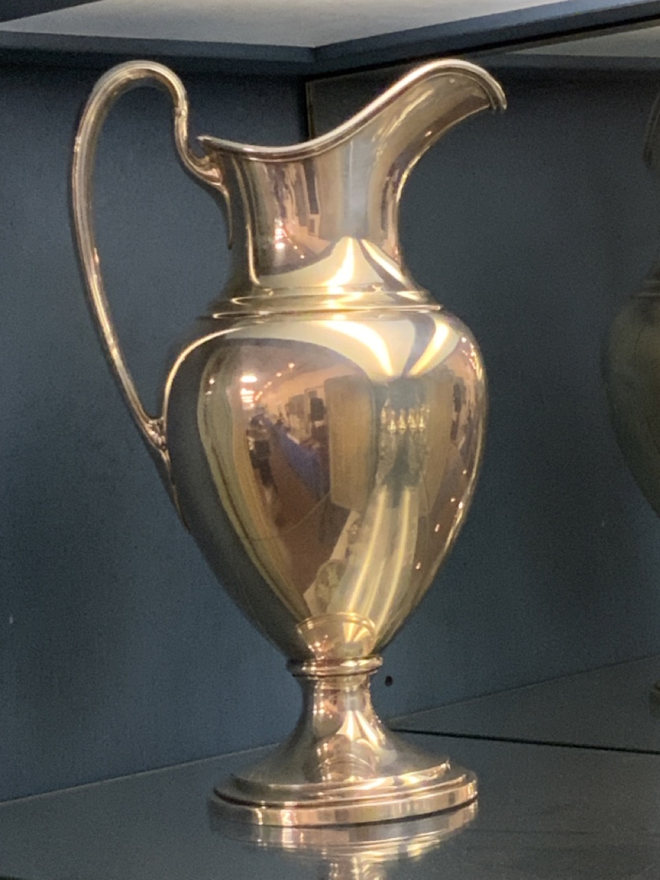 Emil Gruppe c.1950 Fall Birches, Violet Schoenberg c.1939 Lion Family, Greenwich, CT Fire Chief Helmet, Fire carriage lanterns, Fine Libbey Cut Glass Tray and Bowl, RARE Boston & Sandwich Bee & Wheat Glass Service,Sterling silver by Reed & Barton, Smith, Cartier, Gorham, English and more. Over 50 lots of sterling silver, coins, bronze Clocks, Oil Paintings, Nautical Art, Homespun, ephemera, collectibles, curiosities, Steiff and other early teddy bears,Black Americana, vintage clothing, large amounts of jewelry tray lots, amber, African trade beads and more!
