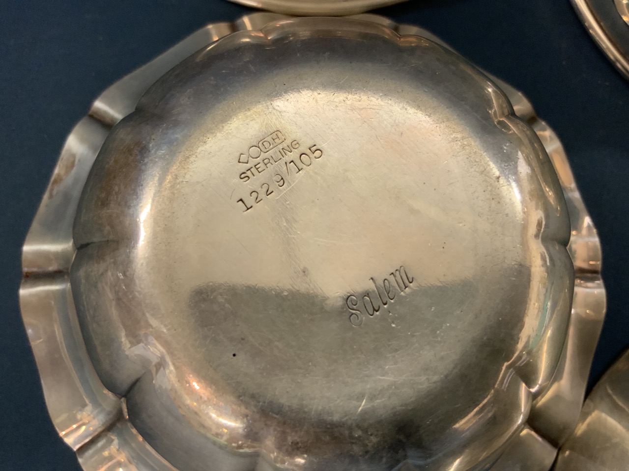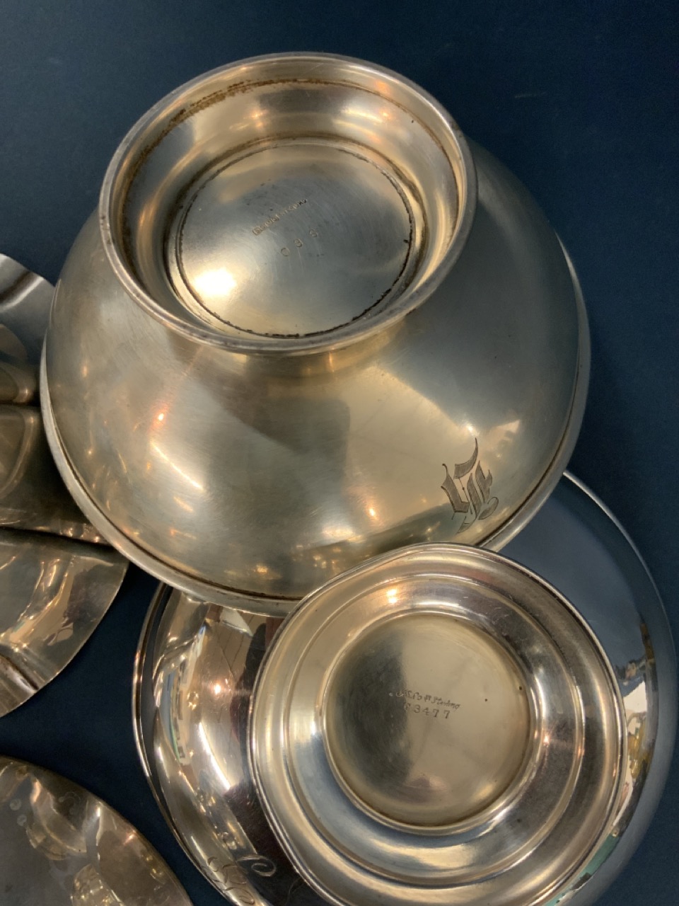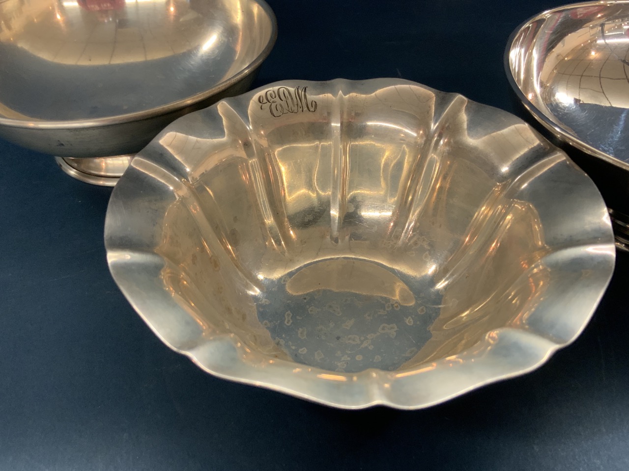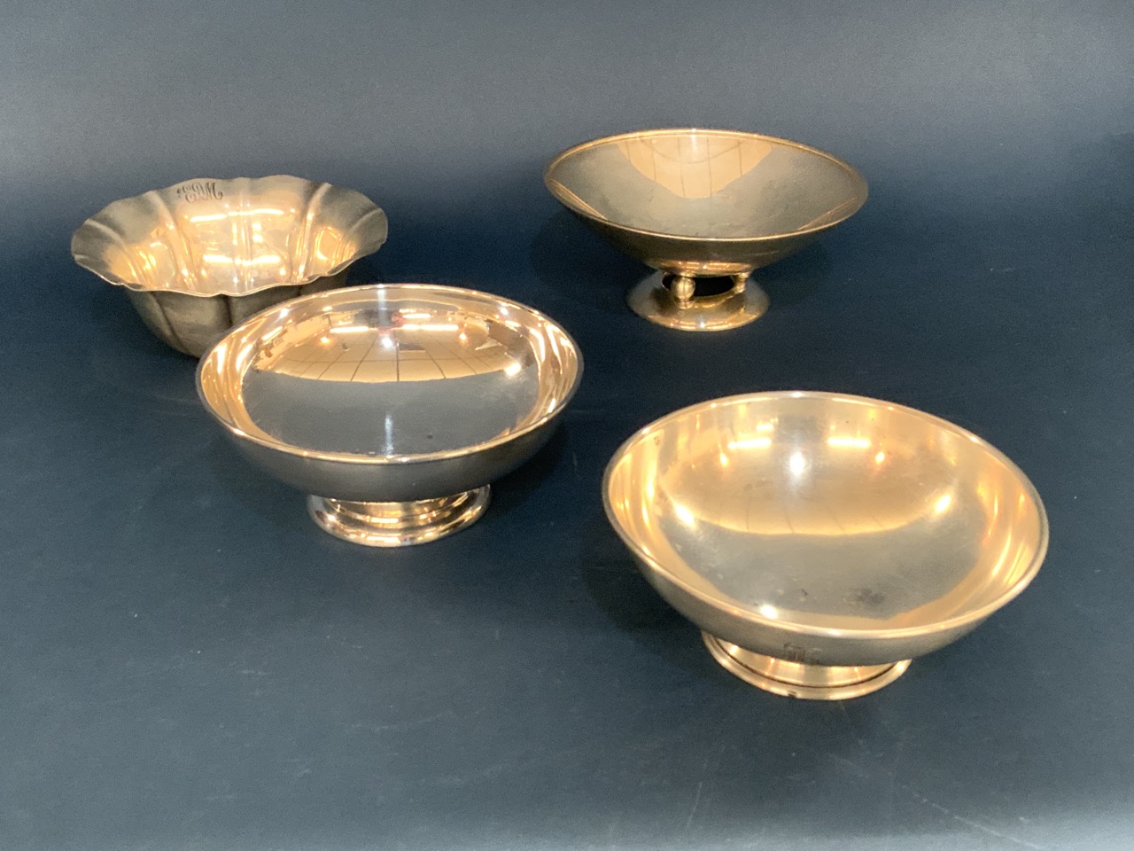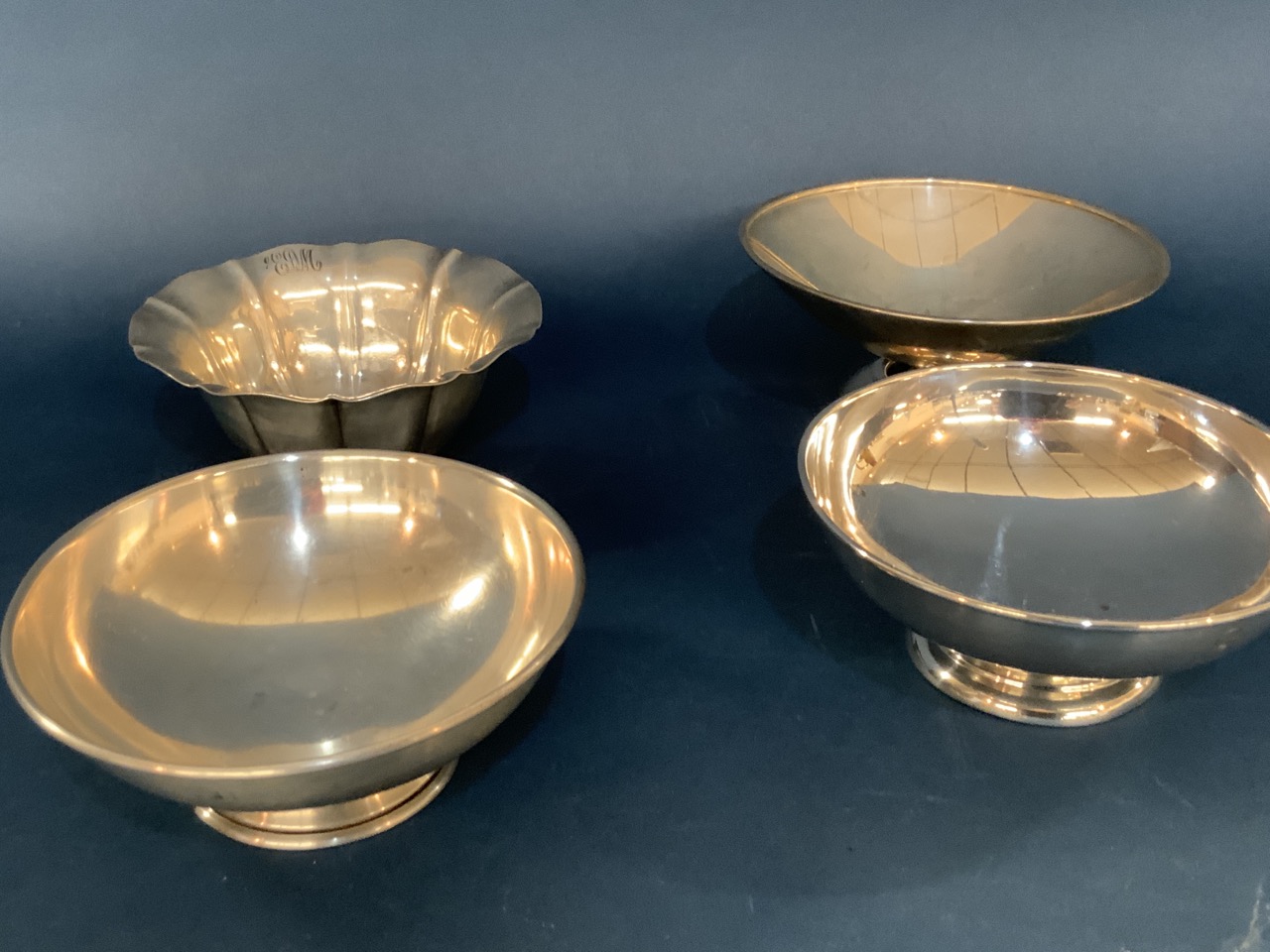 Four (4) sterling silver bowls. Makers SSMC, Wallace, DH Salem and JS Cole. Monograms.