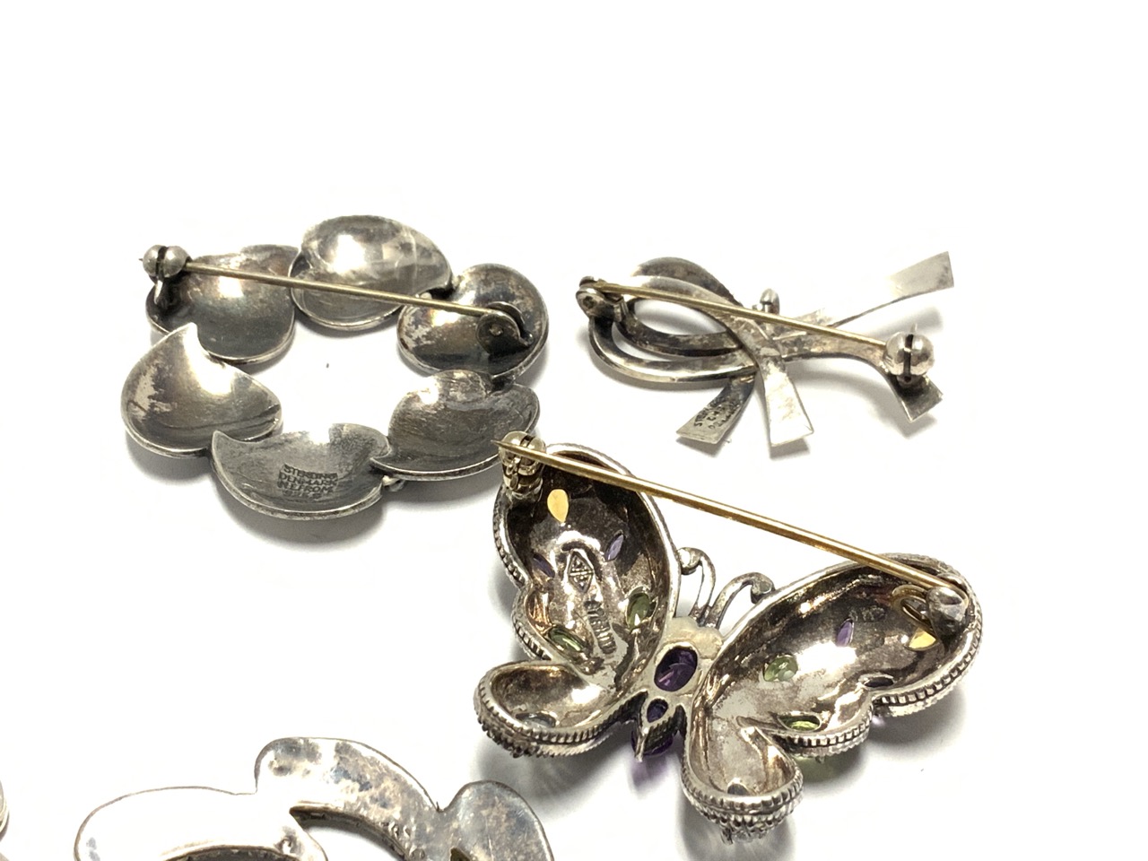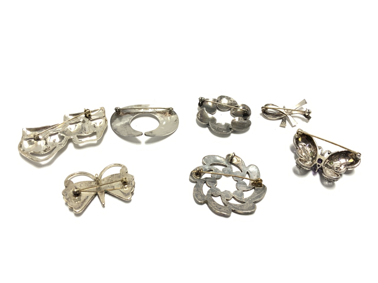 Seven (7) sterling silver pins.
