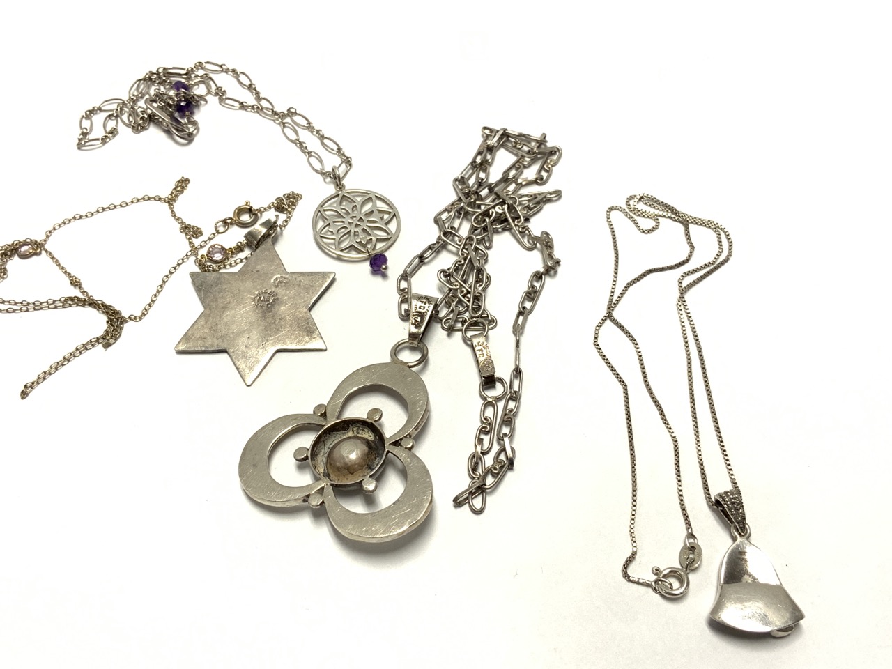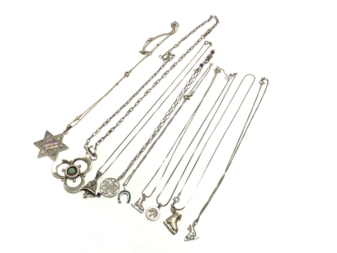 Nine (9) piece sterling silver necklace lot
