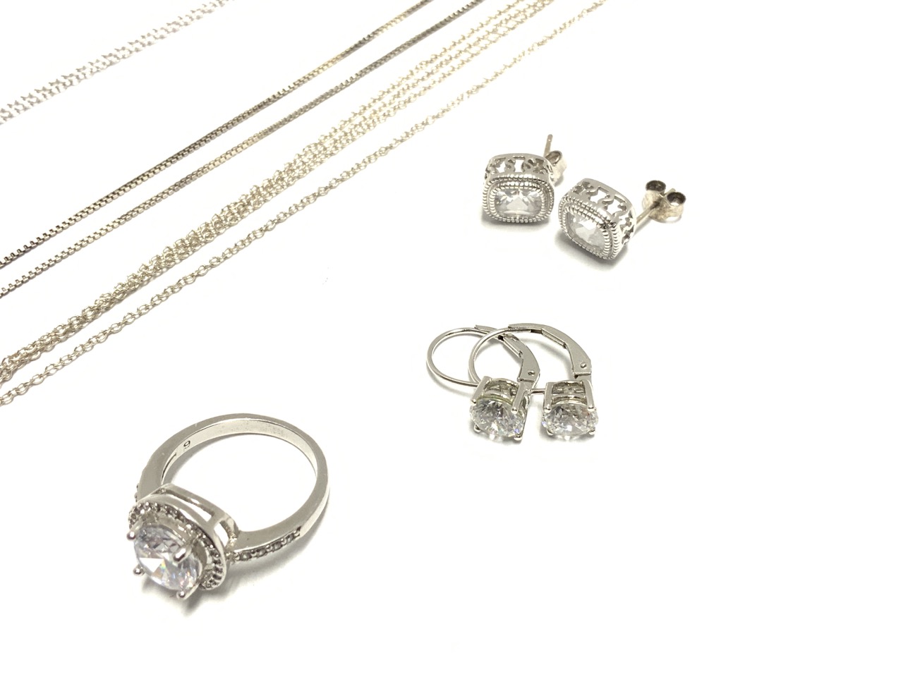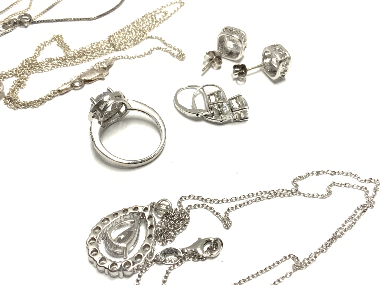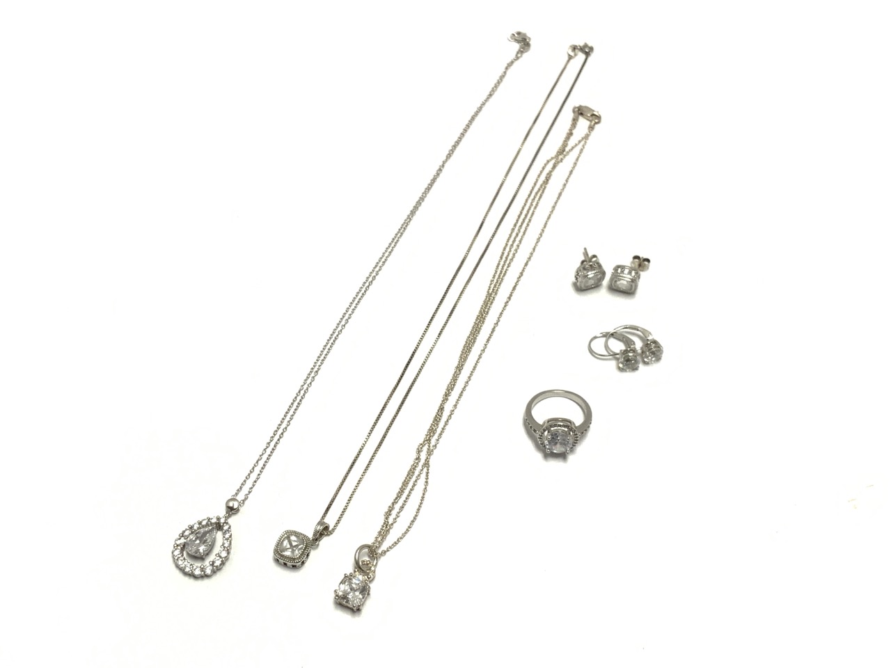 Eight (8) Piece Sterling Silver Necklaces, Earrings And Ring.