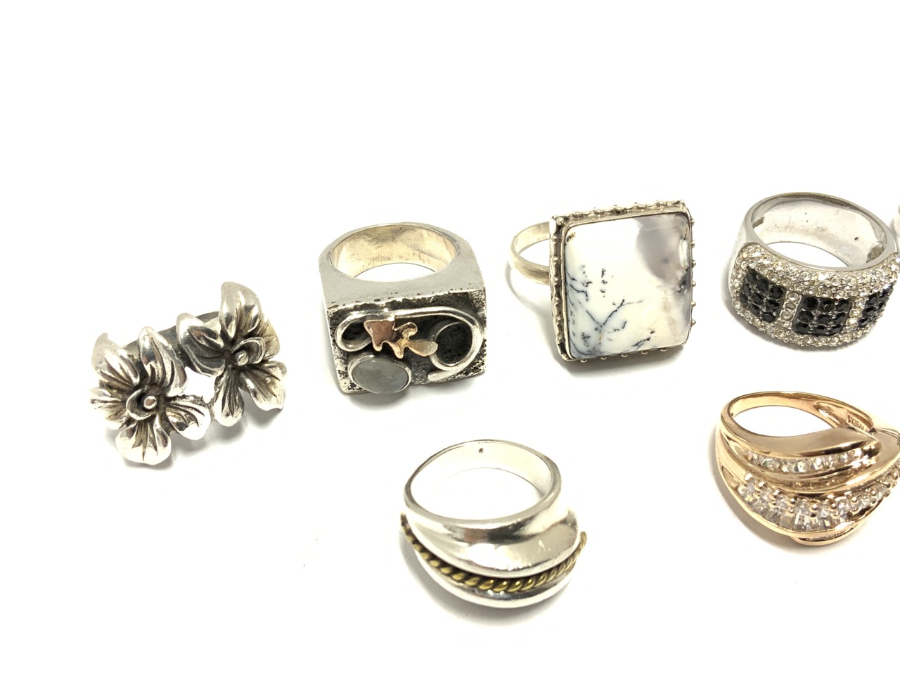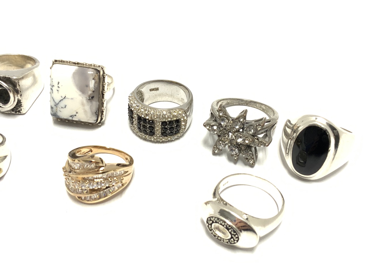 Nine (9) piece sterling silver rings.