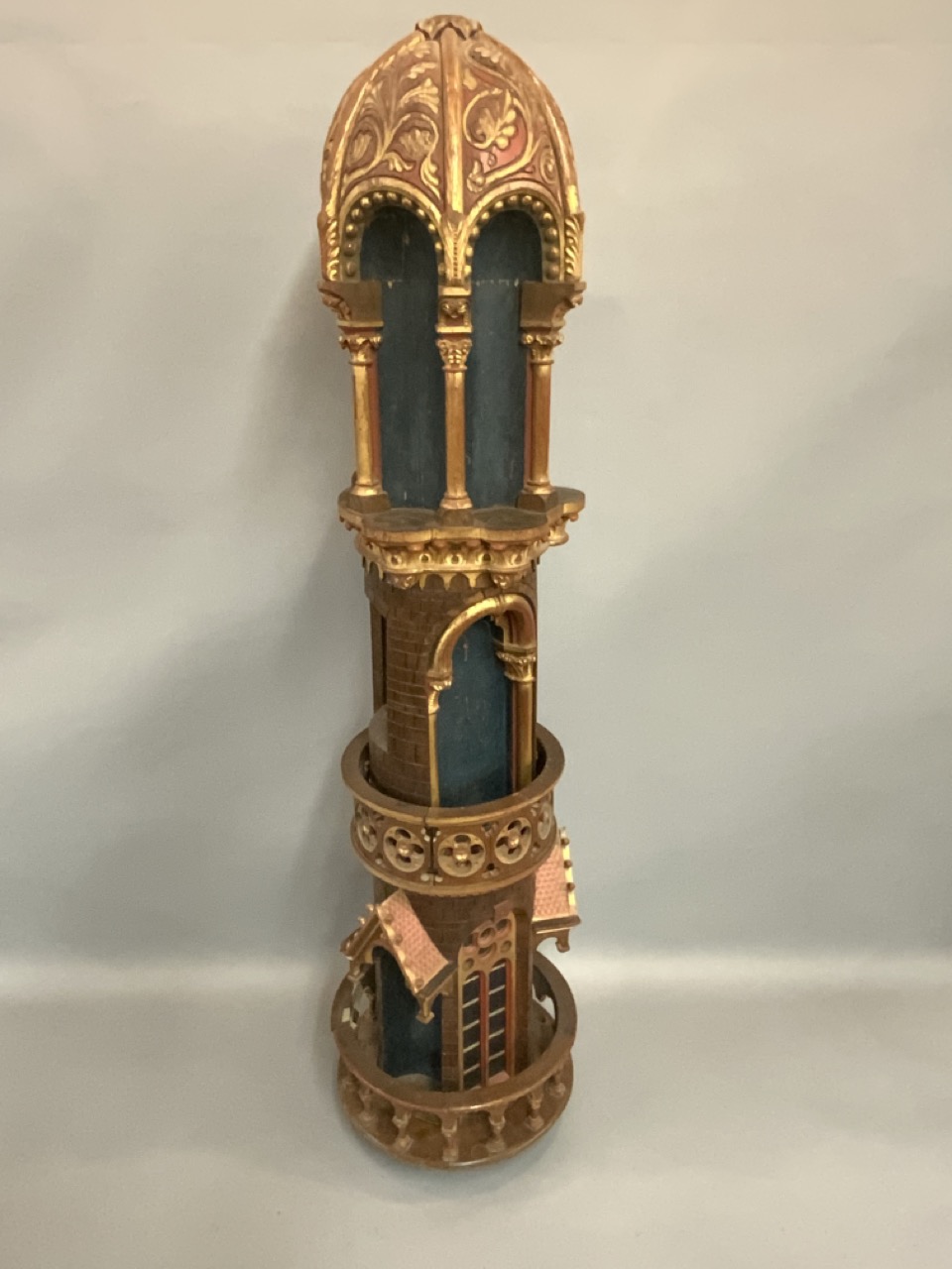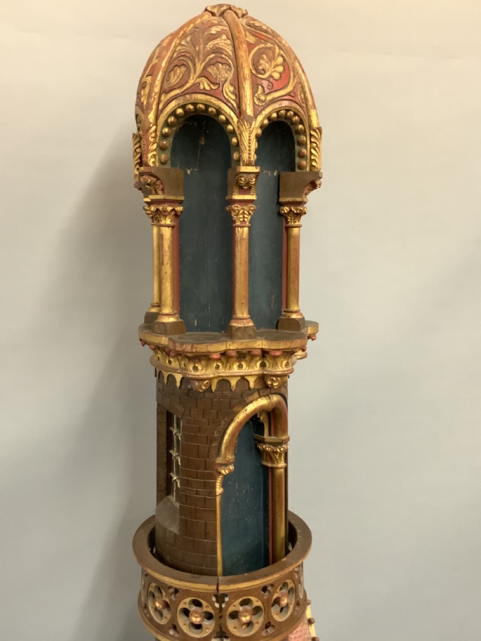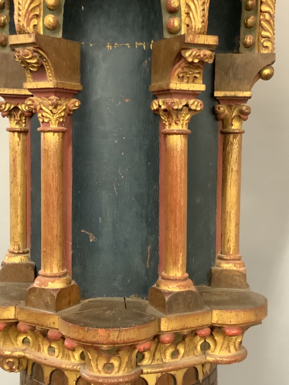 An architectural polychrome painted column removed from a mosque. 19th century. Some loss noted. A few loose pieces to be restored included with piece.