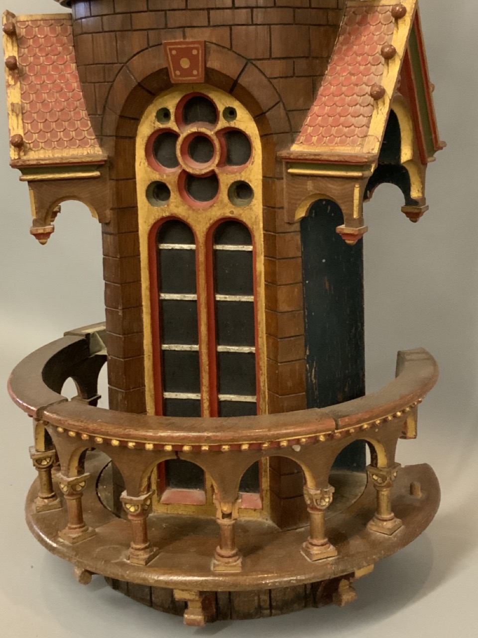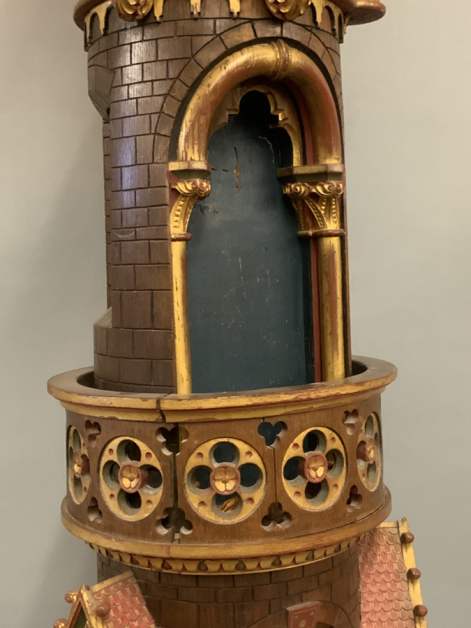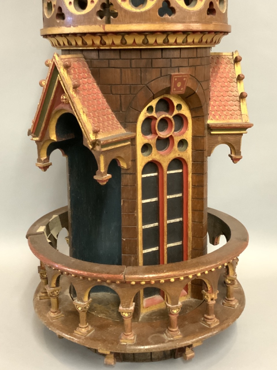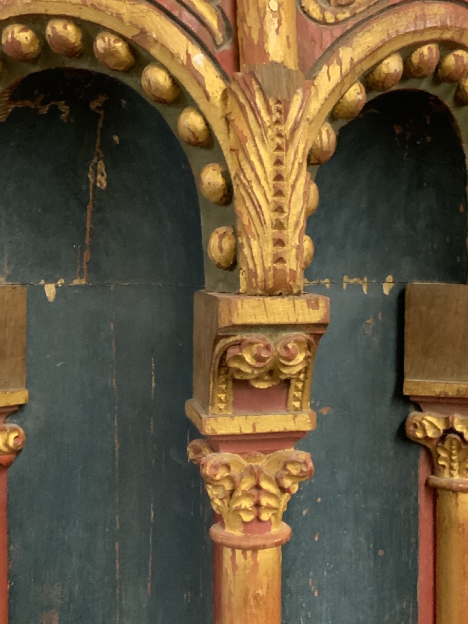 An architectural polychrome painted column removed from a mosque. 19th century. Some loss noted. A few loose pieces to be restored included with piece.