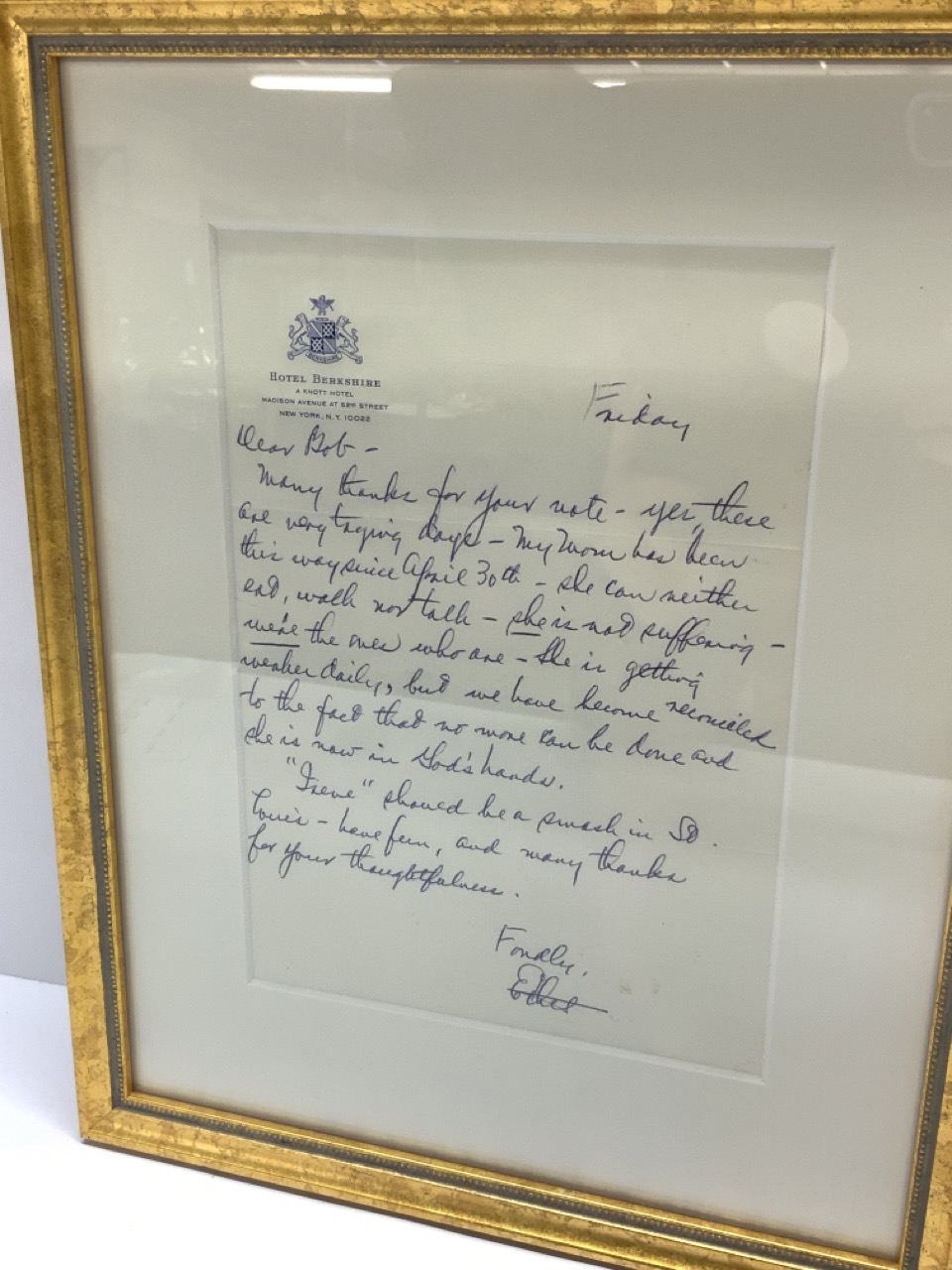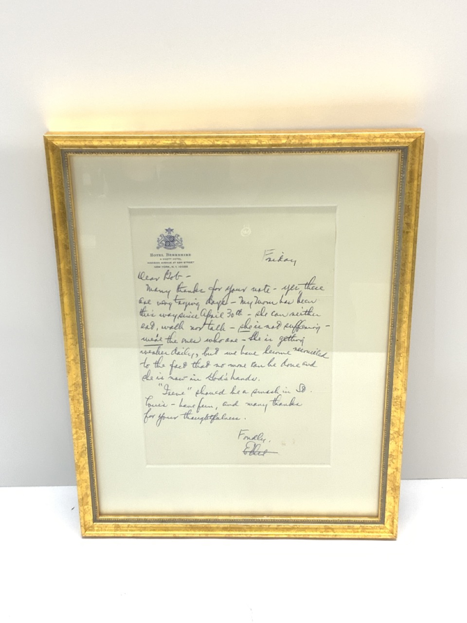 Ethel Merman signed letter. Hotel Berkshire NY letterhead.