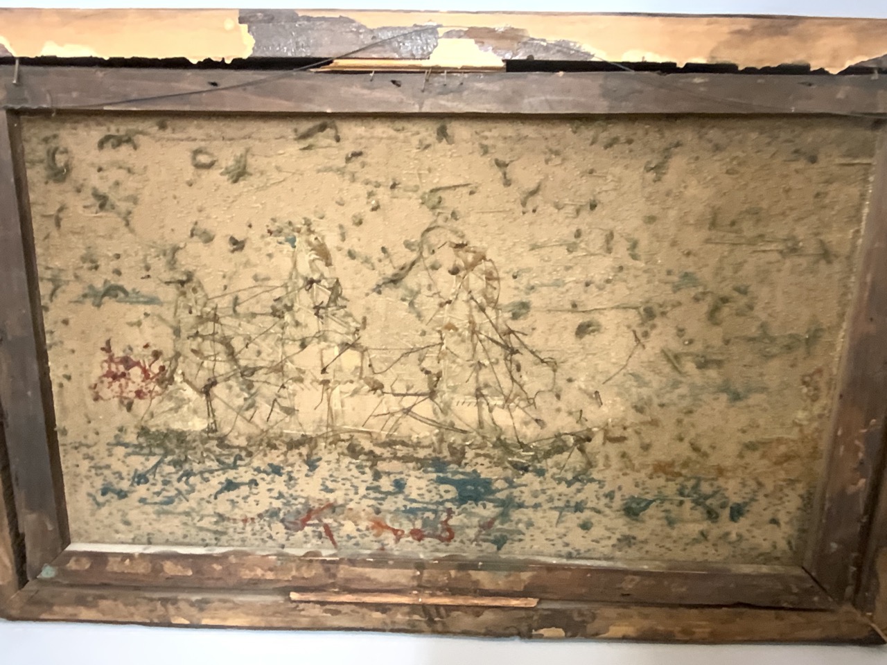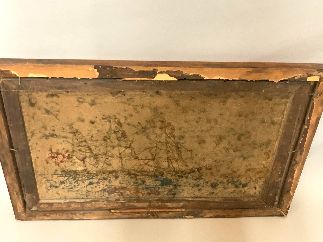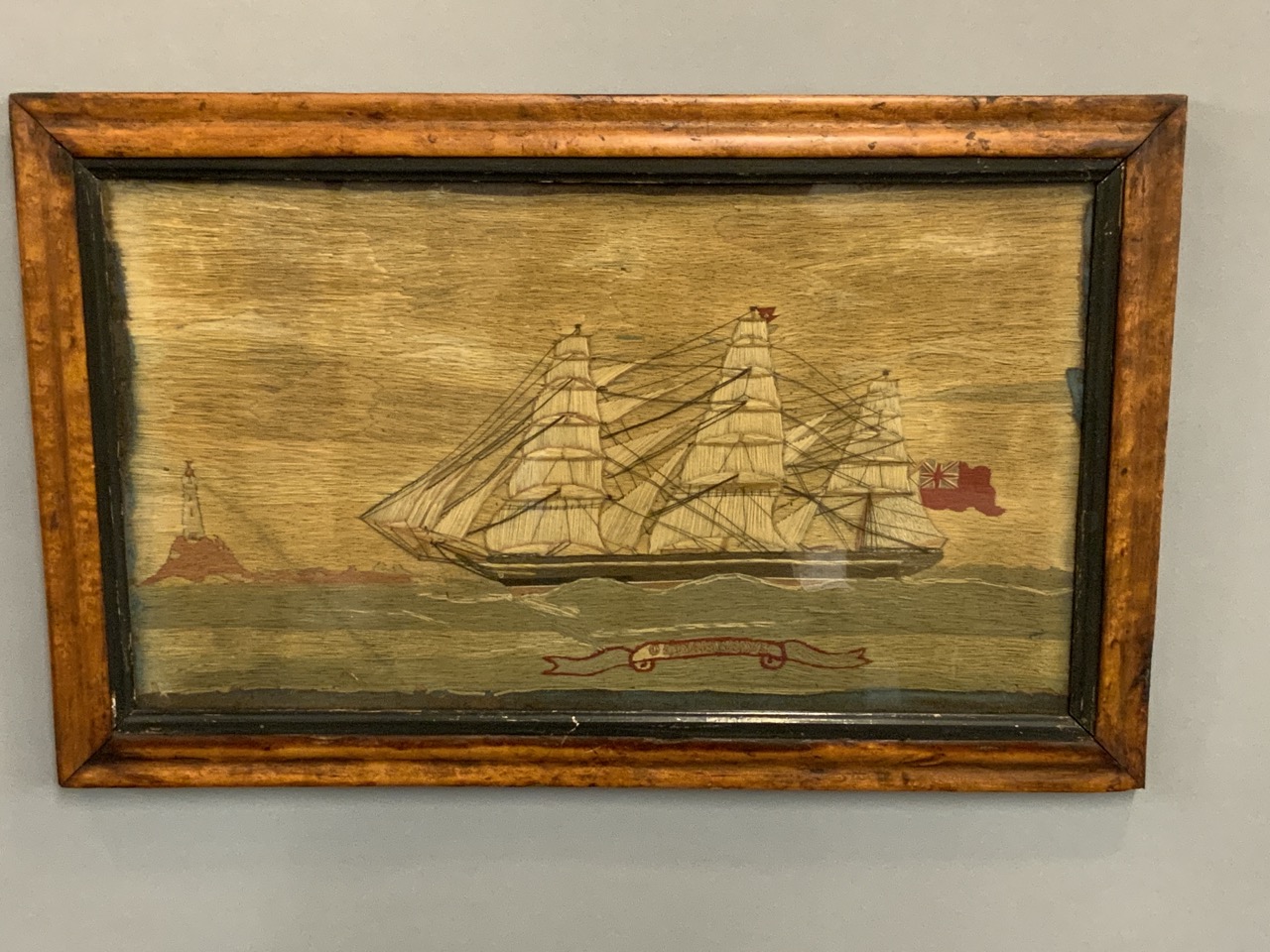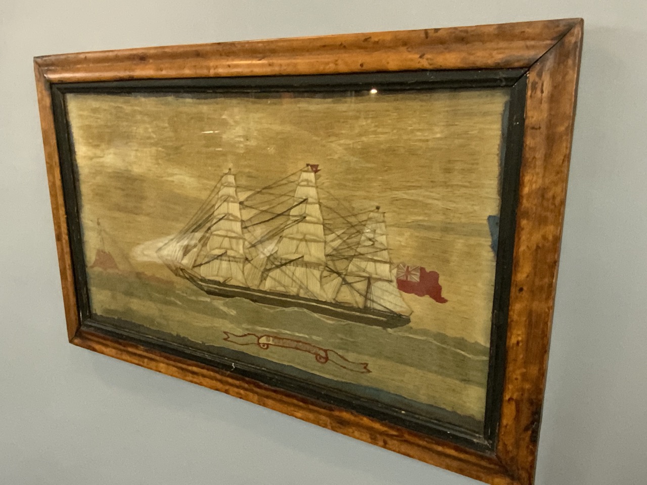 19th c. Homepun Nautical Ship Scene.