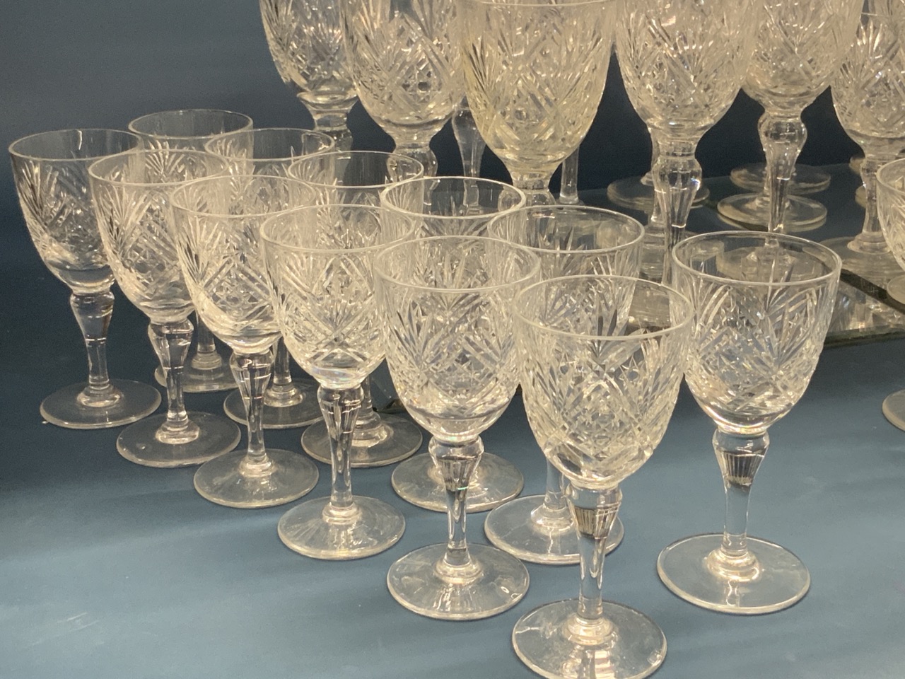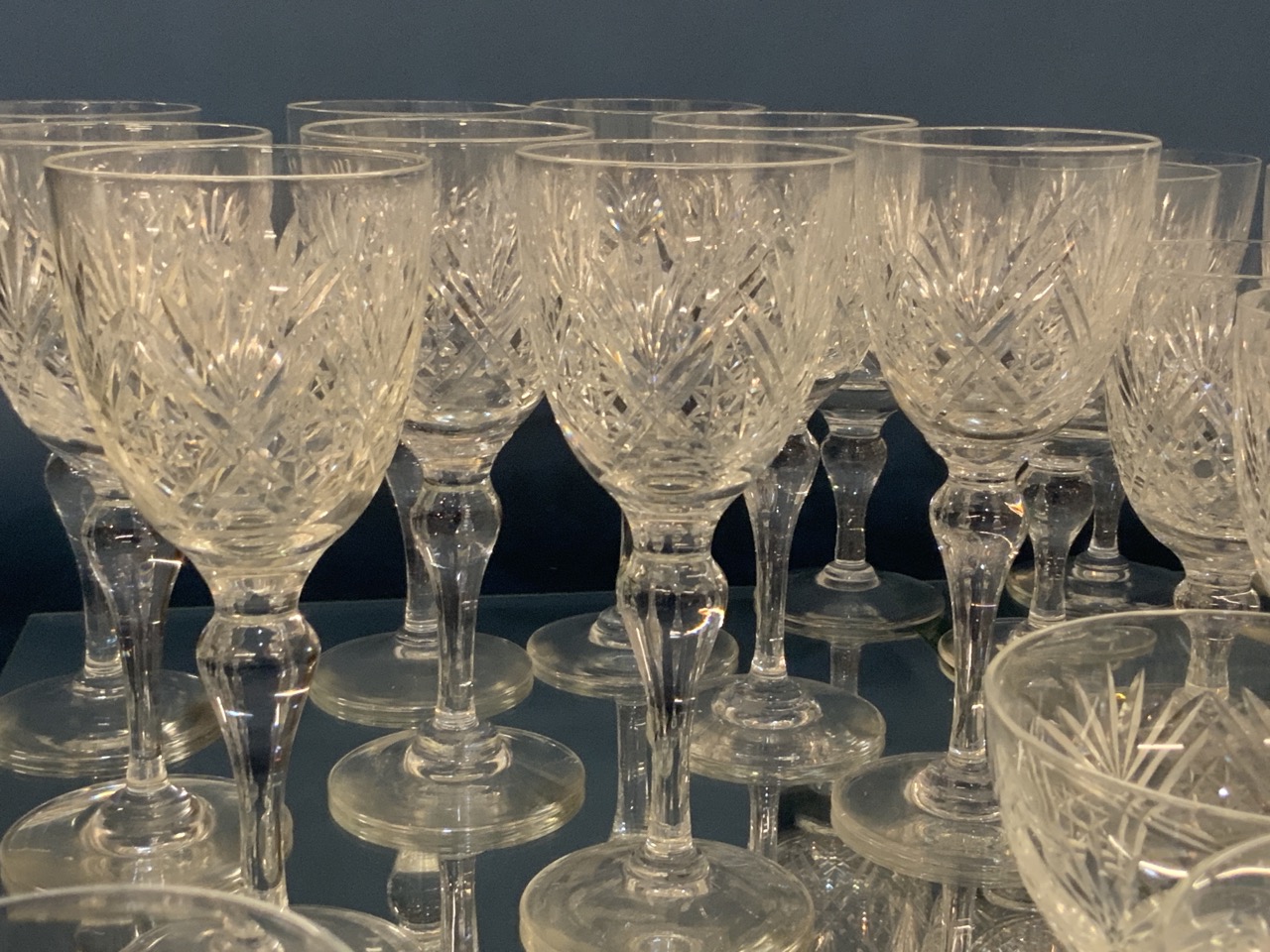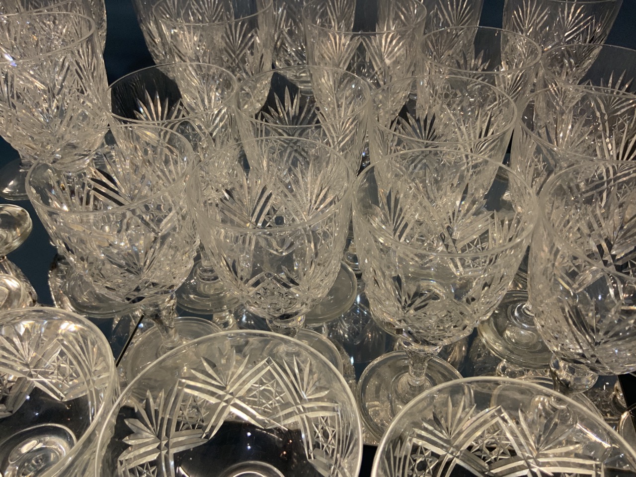 Webb Crystal Stemware Group. Signed at base. Overall excellent condition. Expect some with slight nipped edges that went missed during inspection.