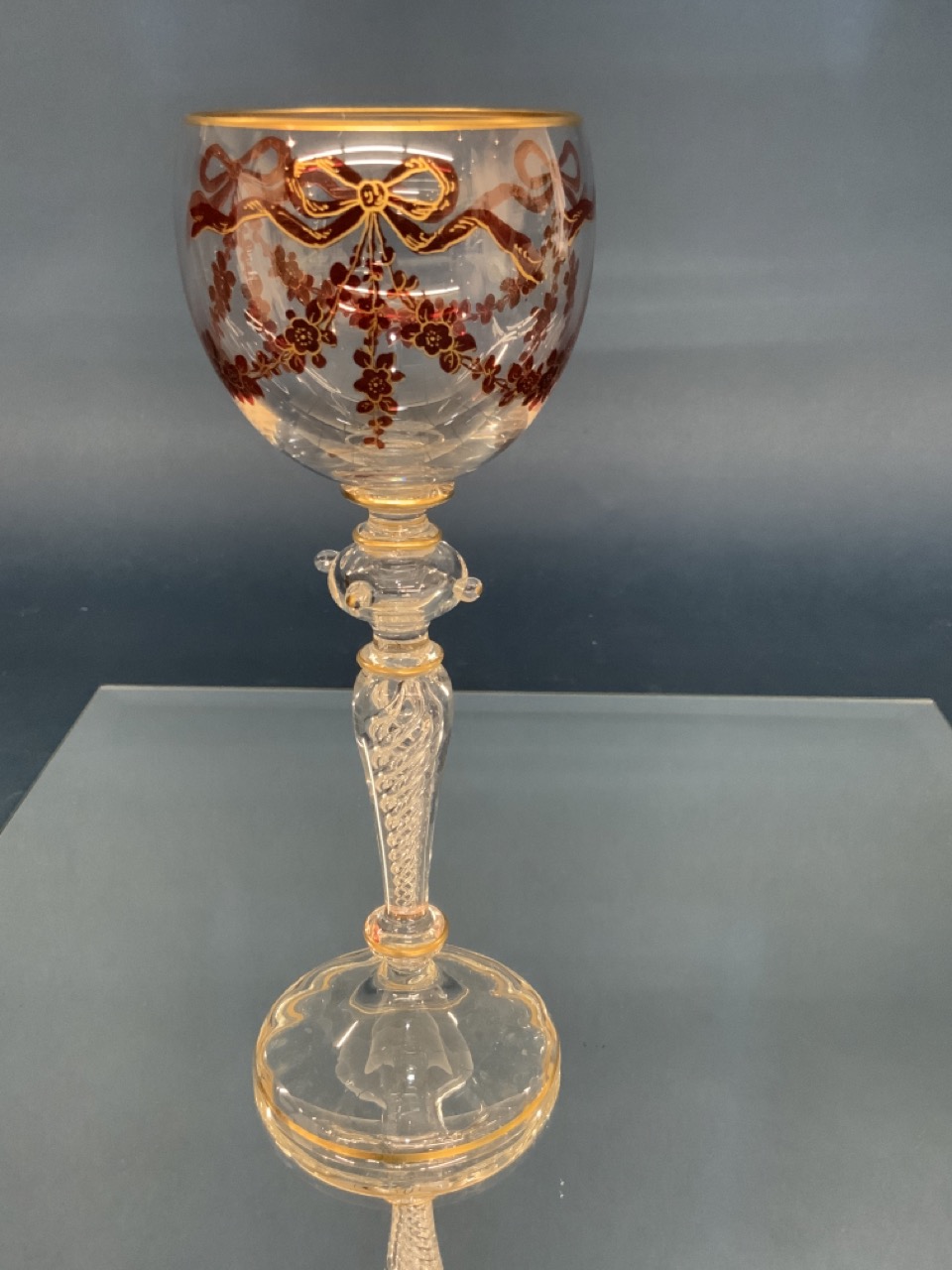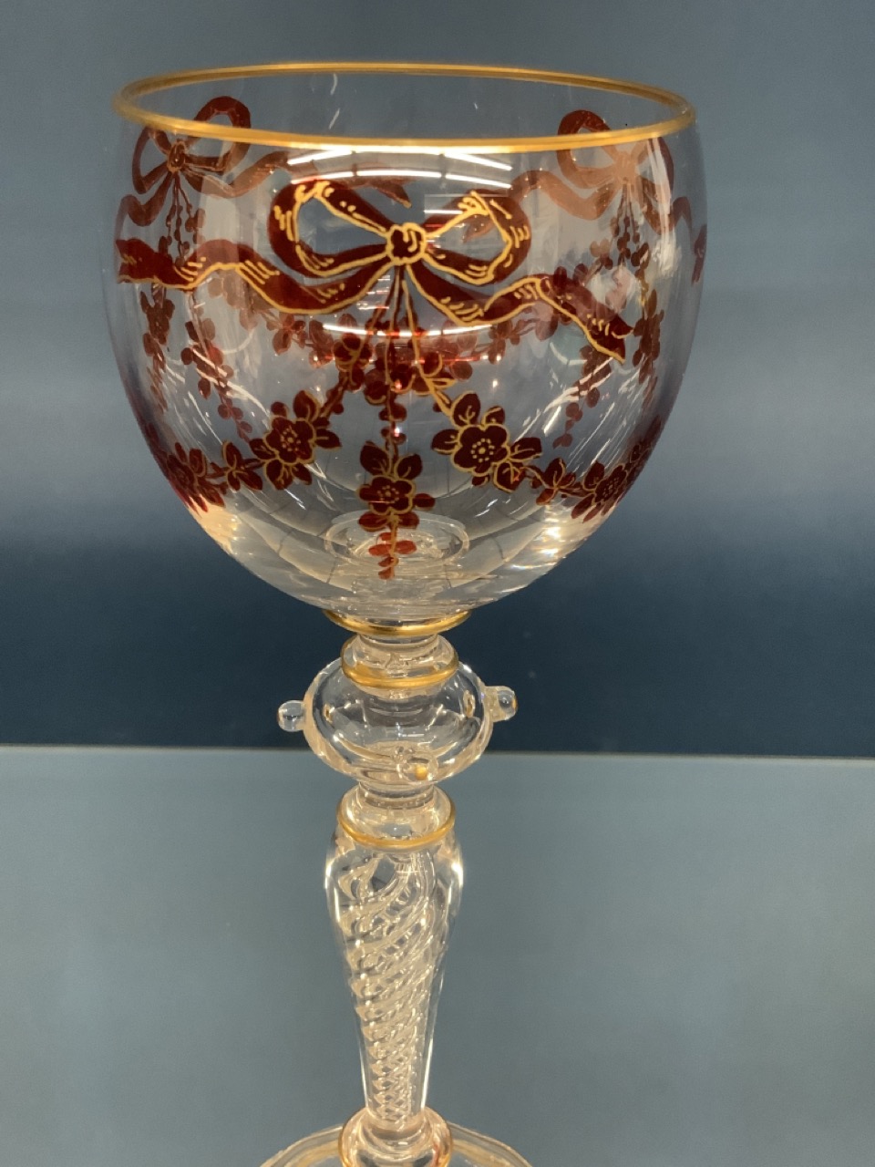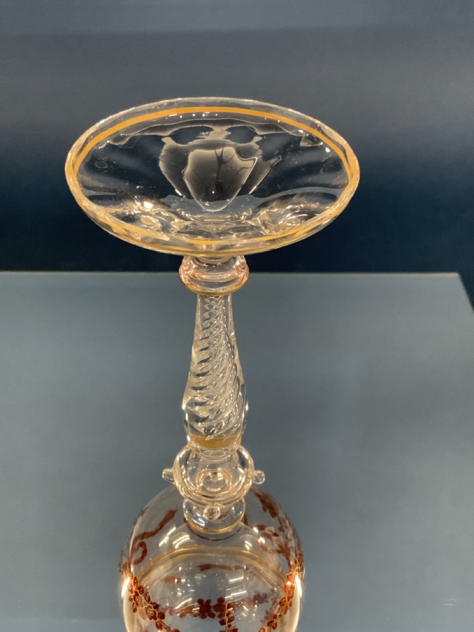 Air twist glass stem with enamel pain.