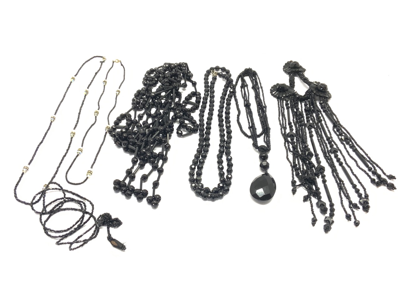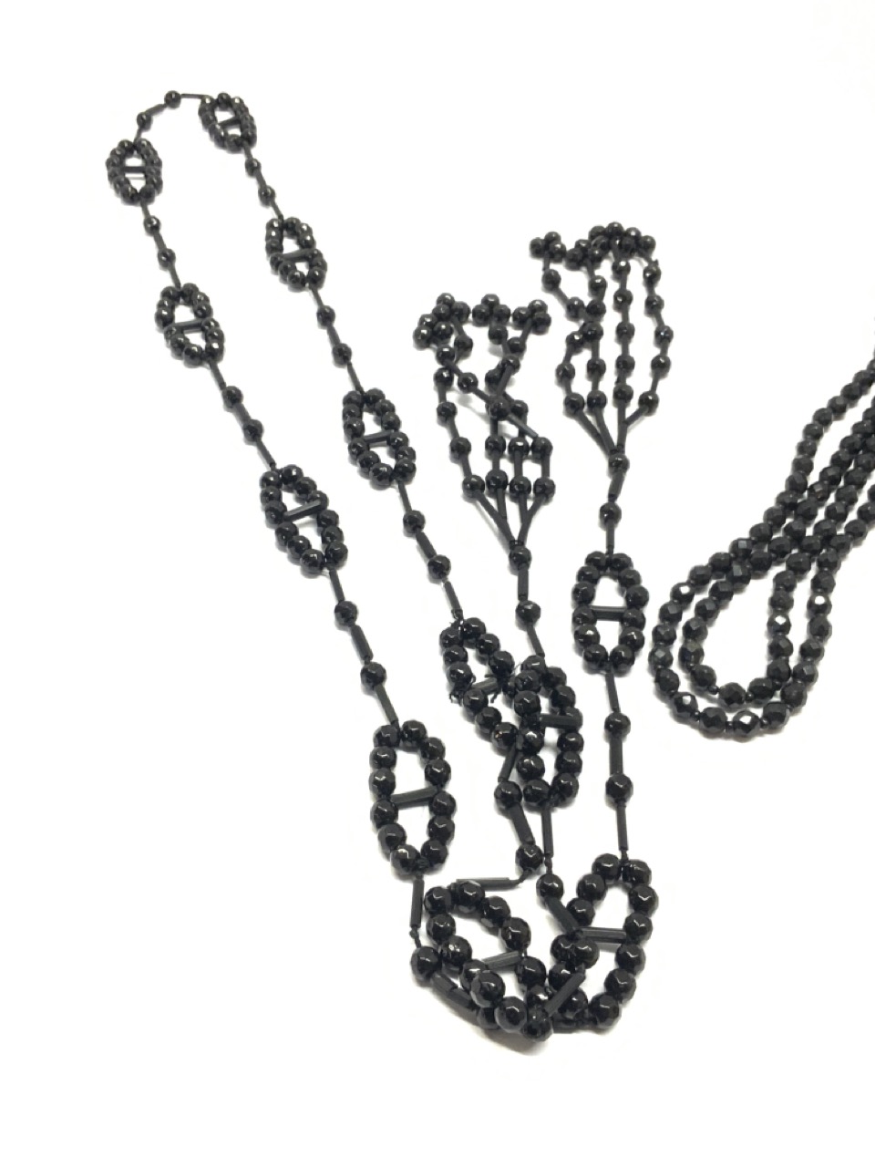 A compiled grouping of Victorian jet glass and garnets. Strands, necklaces and fragments. As seen in photograph preview.