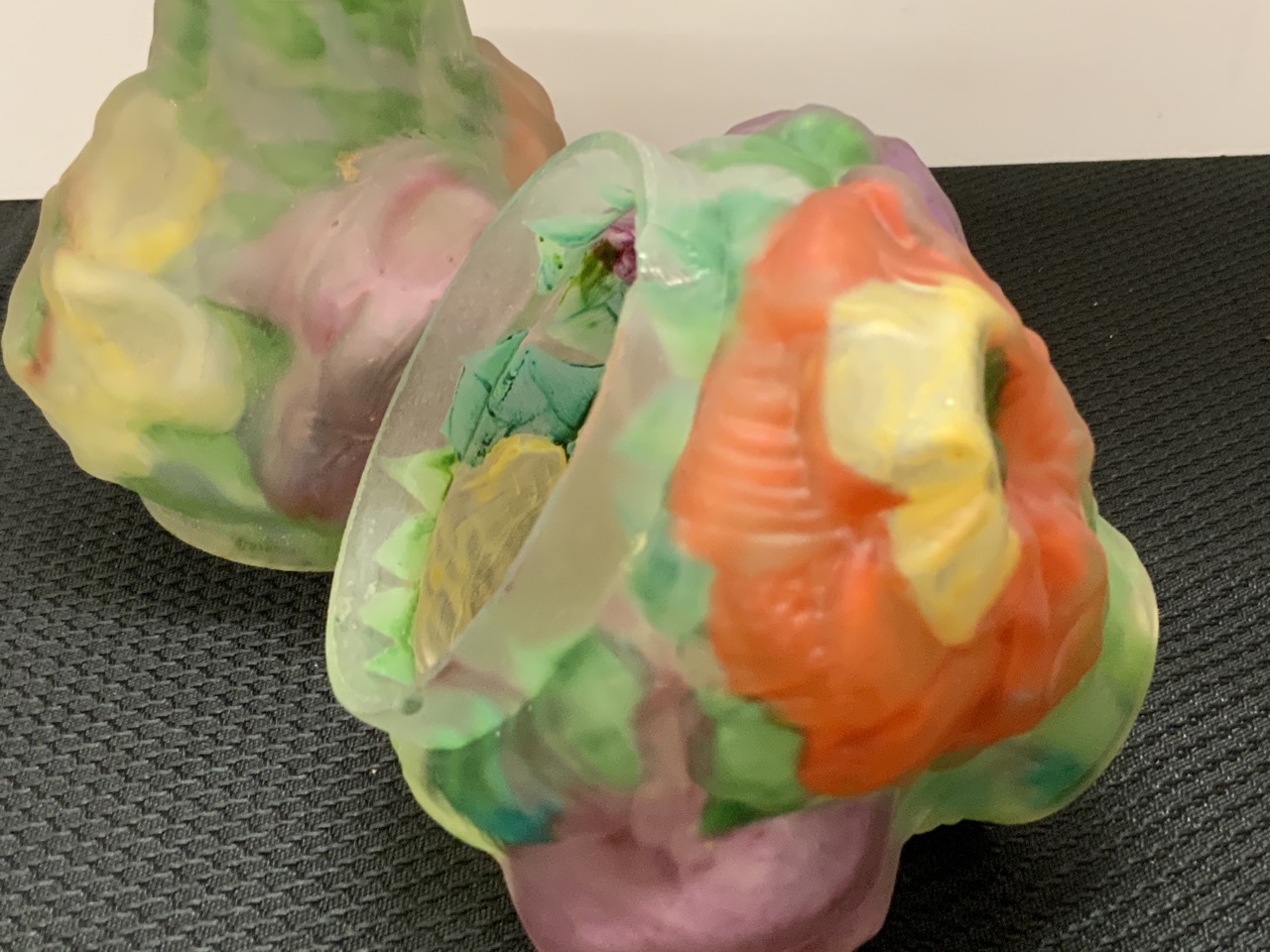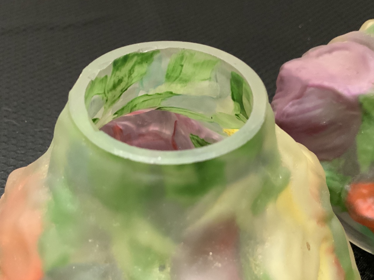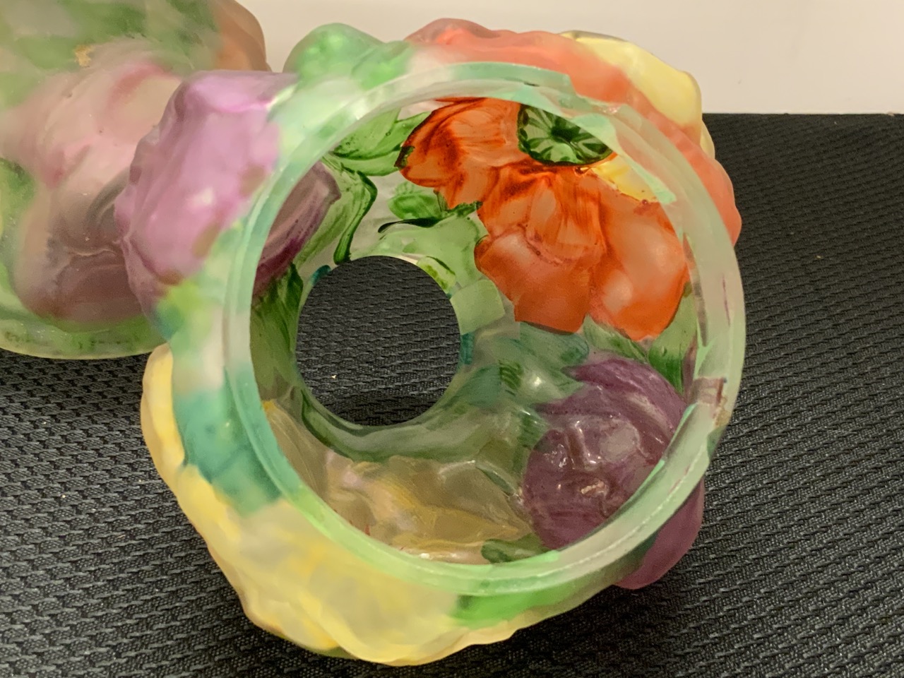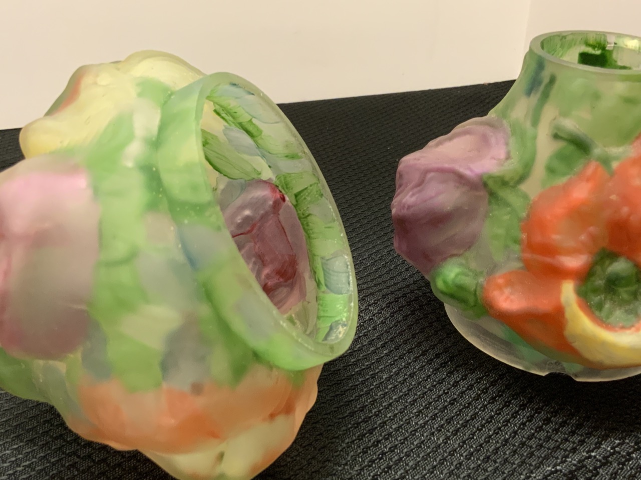 A pair of Pairpoint puffy glass flower candle lamp shades.