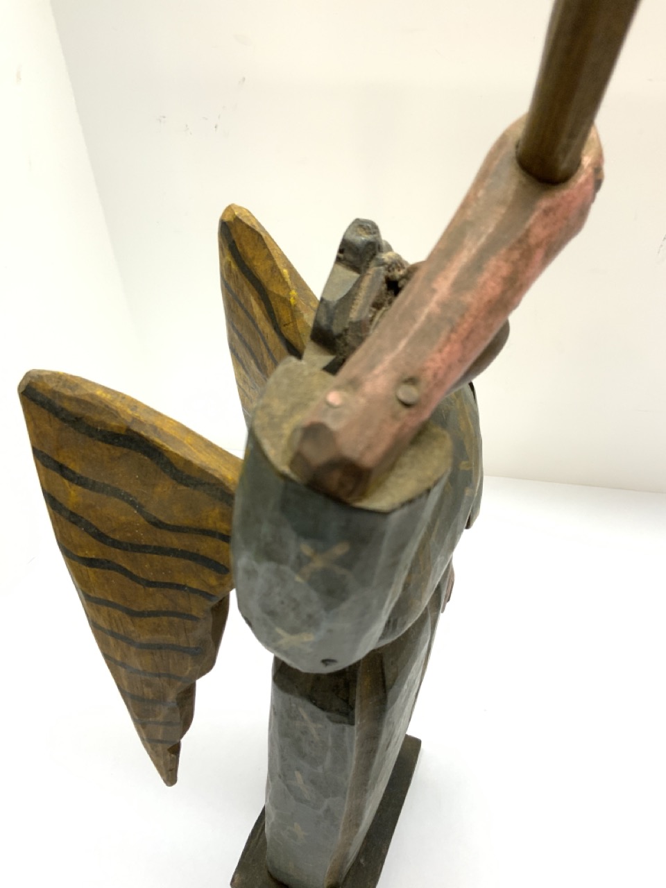 Misc.: Antique teddy bear collection including rare Schuco perfume and double headed compact, Steiff humpback bear, Early growler, mohair bears, 27” straw stuffed mohair bear, Americana jig toy, Dell paperback revolving store display book rack, Pine Bros. Advertising, 19th c. Carpenter’s chest with brass stud work and identified being owned by E.F. Foster of Ridgefield Connecticut, Fine red naugahyde loveseat (chesterfield style) and chair, Chinese marble top center table, Hudson Bay blanket, Navaho blanket, cast iron bear doorstop, antique Delft wall rack, collectibles, books, Fireman’s sand bucket, collection of Christmas “Santa” postcards, memorabilia and much more!