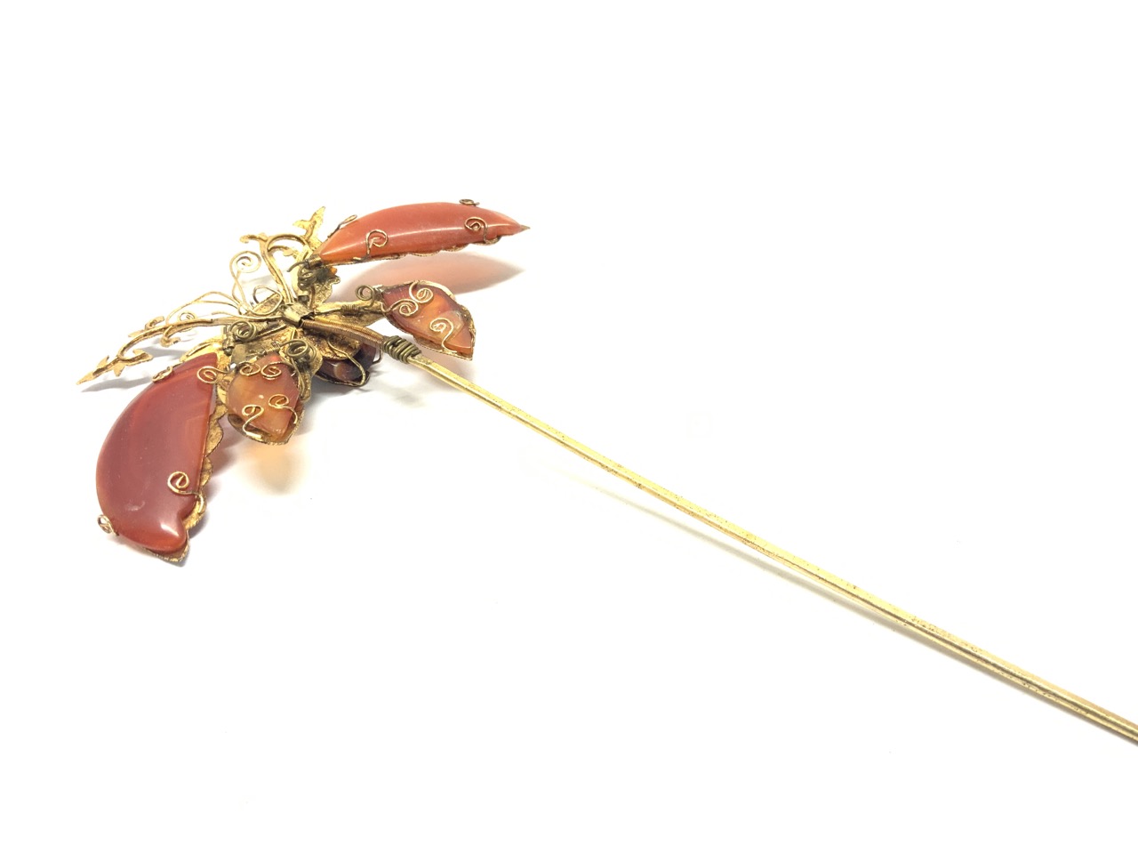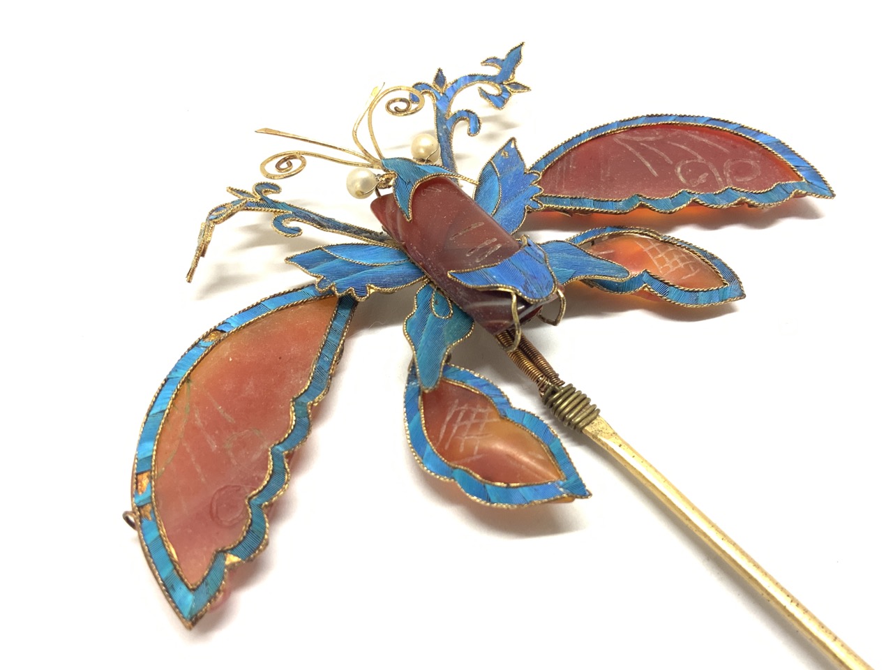 Vintage Chinese King Fisher blue hair piece with carnelian stones.