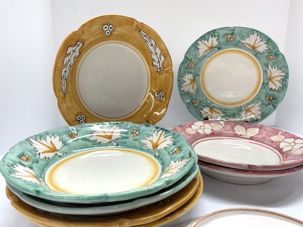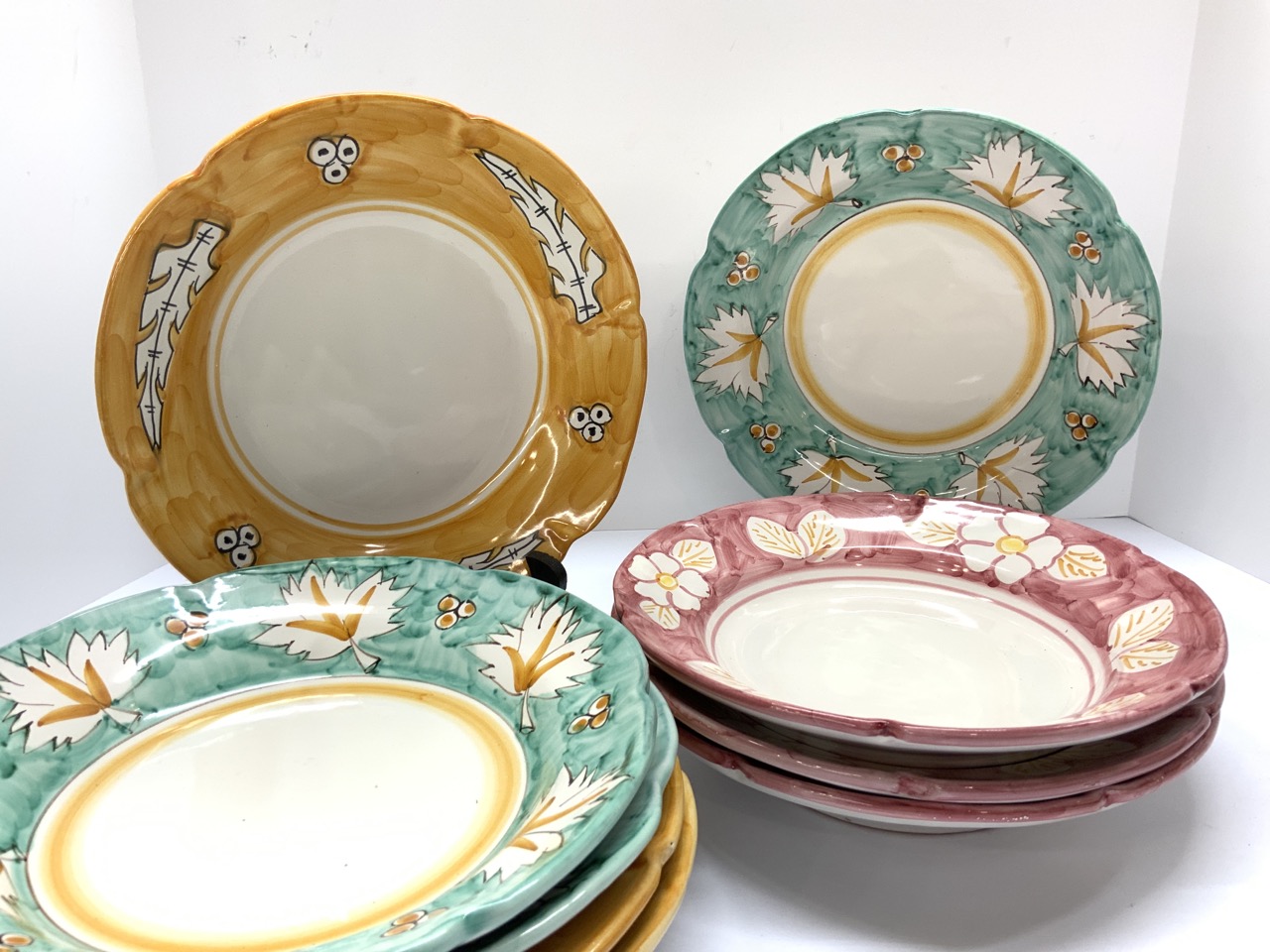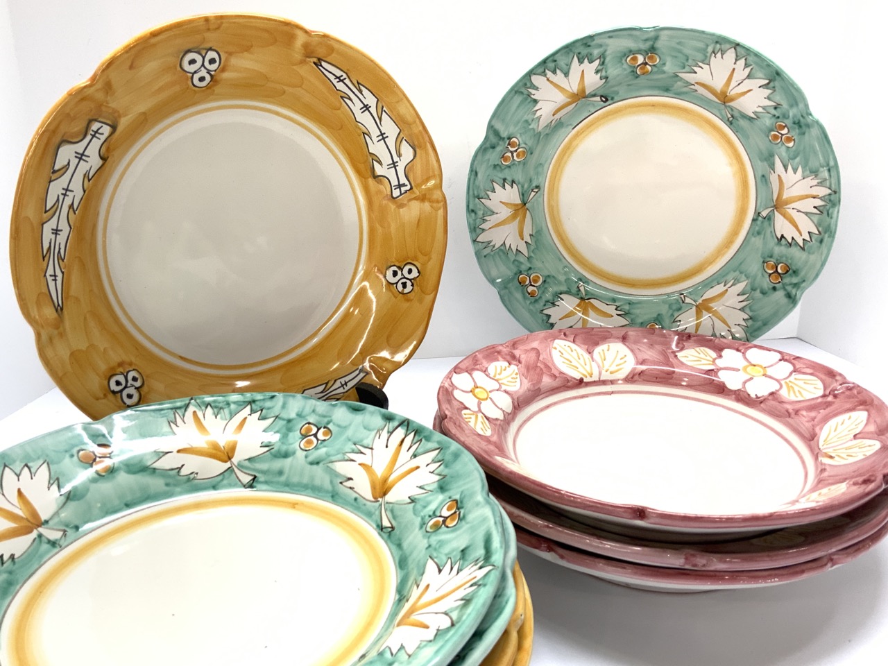 Nine (9) Italian Vietri De Rosa Dinner Plates. Hand painted. Made in Italy.
