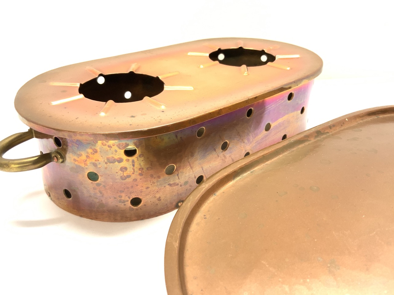 Meersburg antique copper serving dish with warmer.