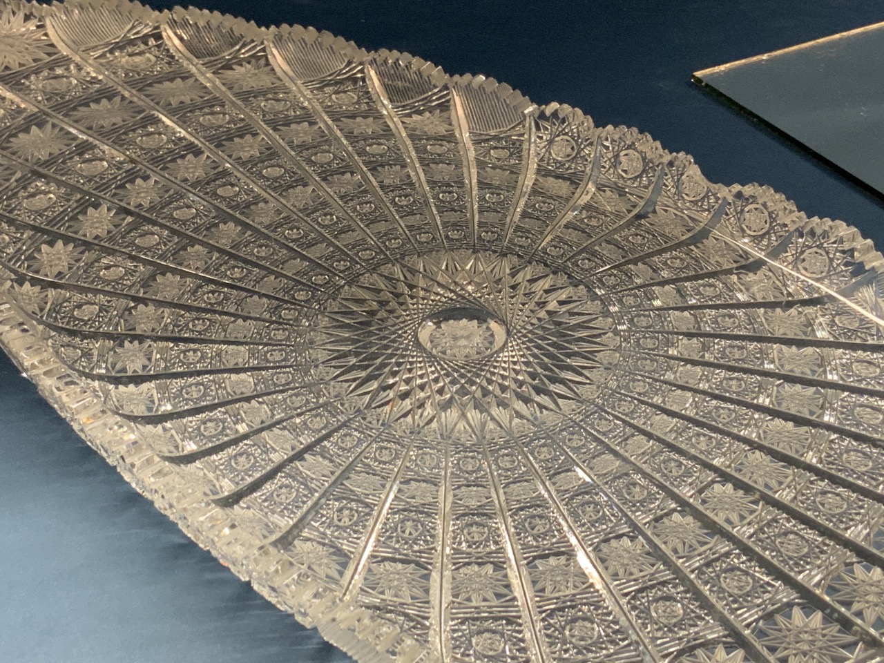 A Queen's lace cut crystal or glass serving tray.