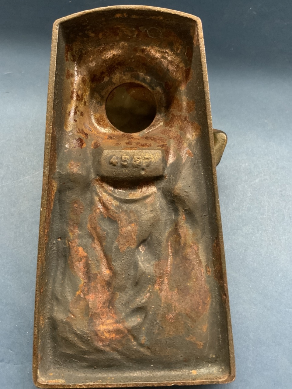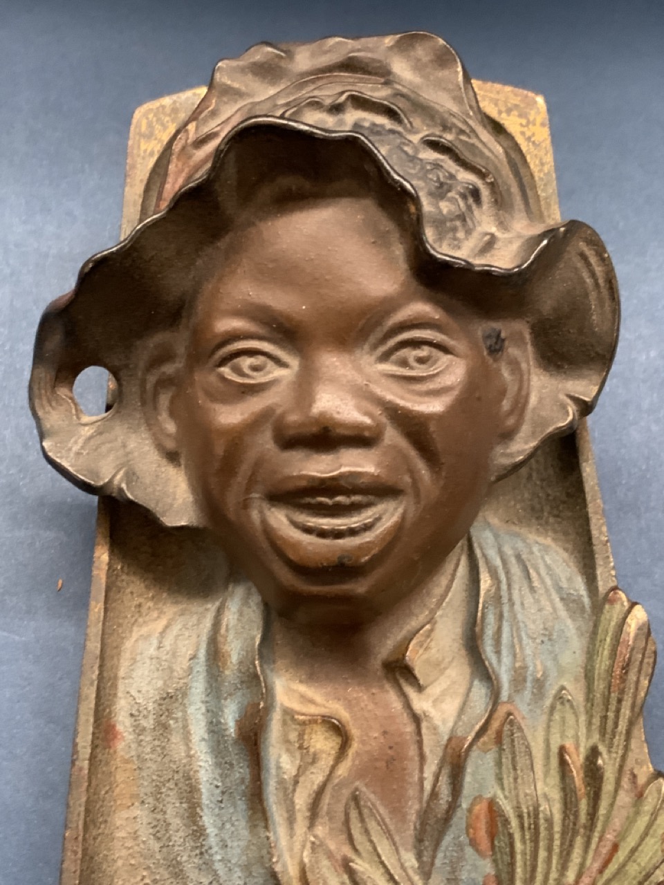 Misc.: Antique teddy bear collection including rare Schuco perfume and double headed compact, Steiff humpback bear, Early growler, mohair bears, 27” straw stuffed mohair bear, Americana jig toy, Dell paperback revolving store display book rack, Pine Bros. Advertising, 19th c. Carpenter’s chest with brass stud work and identified being owned by E.F. Foster of Ridgefield Connecticut, Fine red naugahyde loveseat (chesterfield style) and chair, Chinese marble top center table, Hudson Bay blanket, Navaho blanket, cast iron bear doorstop, antique Delft wall rack, collectibles, books, Fireman’s sand bucket, collection of Christmas “Santa” postcards, memorabilia and much more!