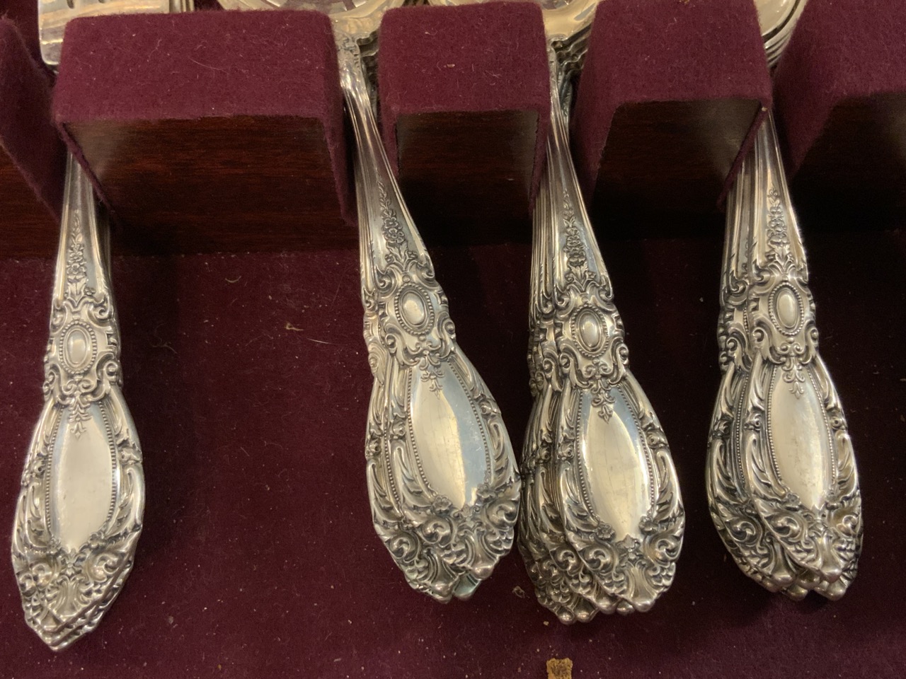Auctioneer’s Note: Our February Estate Antiques Auction will feature estates compiled special from estates in Orange, East Side Manhattan, Greenwich, and an Ulster Cty. Retreat. A fine sale including large amounts of jewelry, gold, silver, gemstones, antique sterling silver collector’s hoard being sold to include over 50 lbs of silver. 153 piece German 800 silver extensive flatware service, 70pc. Towle King Richard sterling service, Georg Jensen 72 piece Lily Of The Valley (Early Mark) service, Reed & Barton “Love Disarmed” Serving spoons, Tiffany serving pieces, Hand chased tea kettle and warmer weighing over 80 troy ounces, International “Royal Danish” Over 100 sterling Victorian serving pieces by Tiffany, Gorham, Dominick & Half, Black Starr & Frost, English, American Boston, MA coin by Harding, Francis I bowl, Sanborn Mexico charger,numerous bowls and so much more! A very extensive sale of silver. Do not miss this silver buying opportunity!