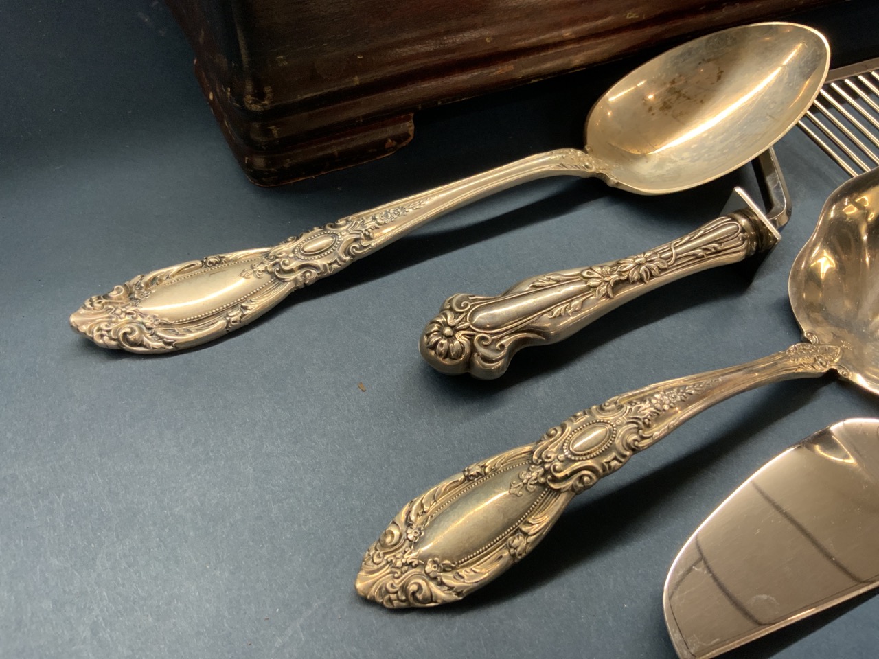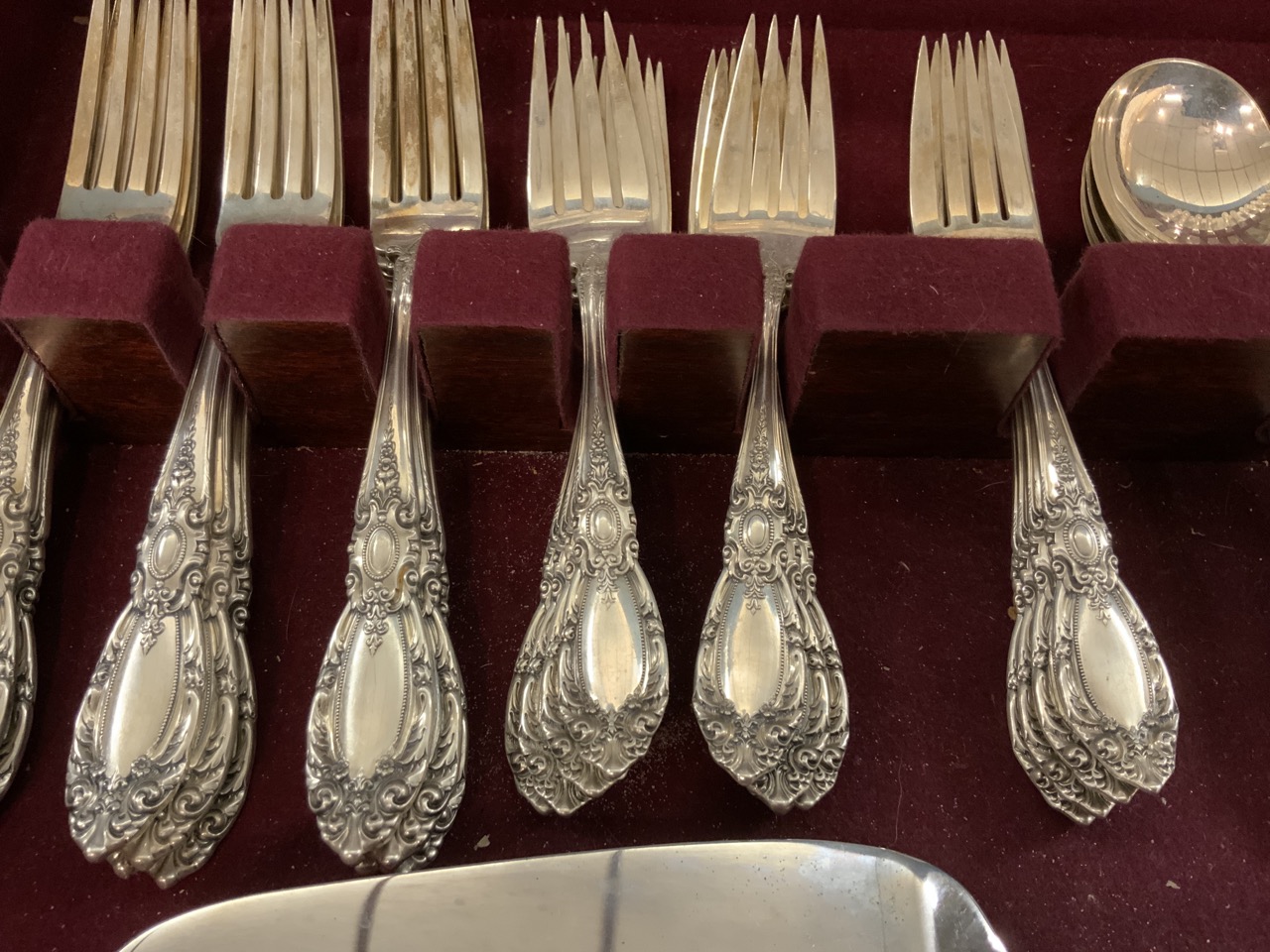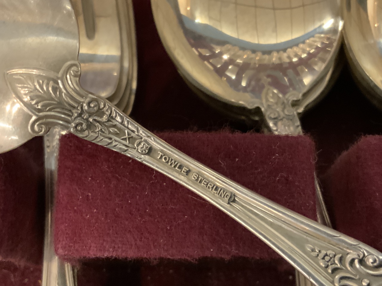 A Towle sterling silver flatware services for twelve with the exception of 10 on the boullion soup spoons.