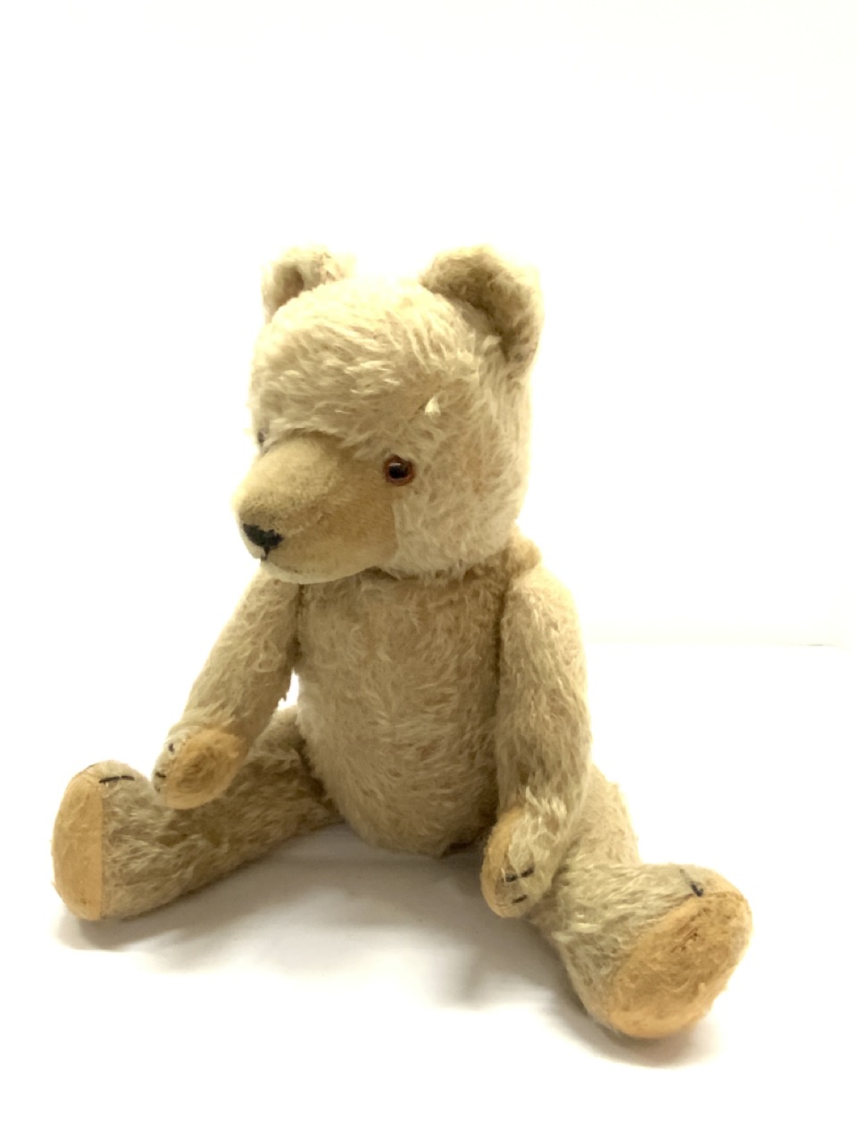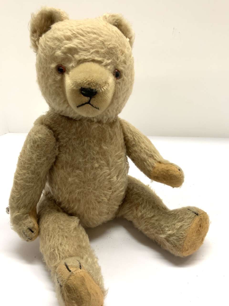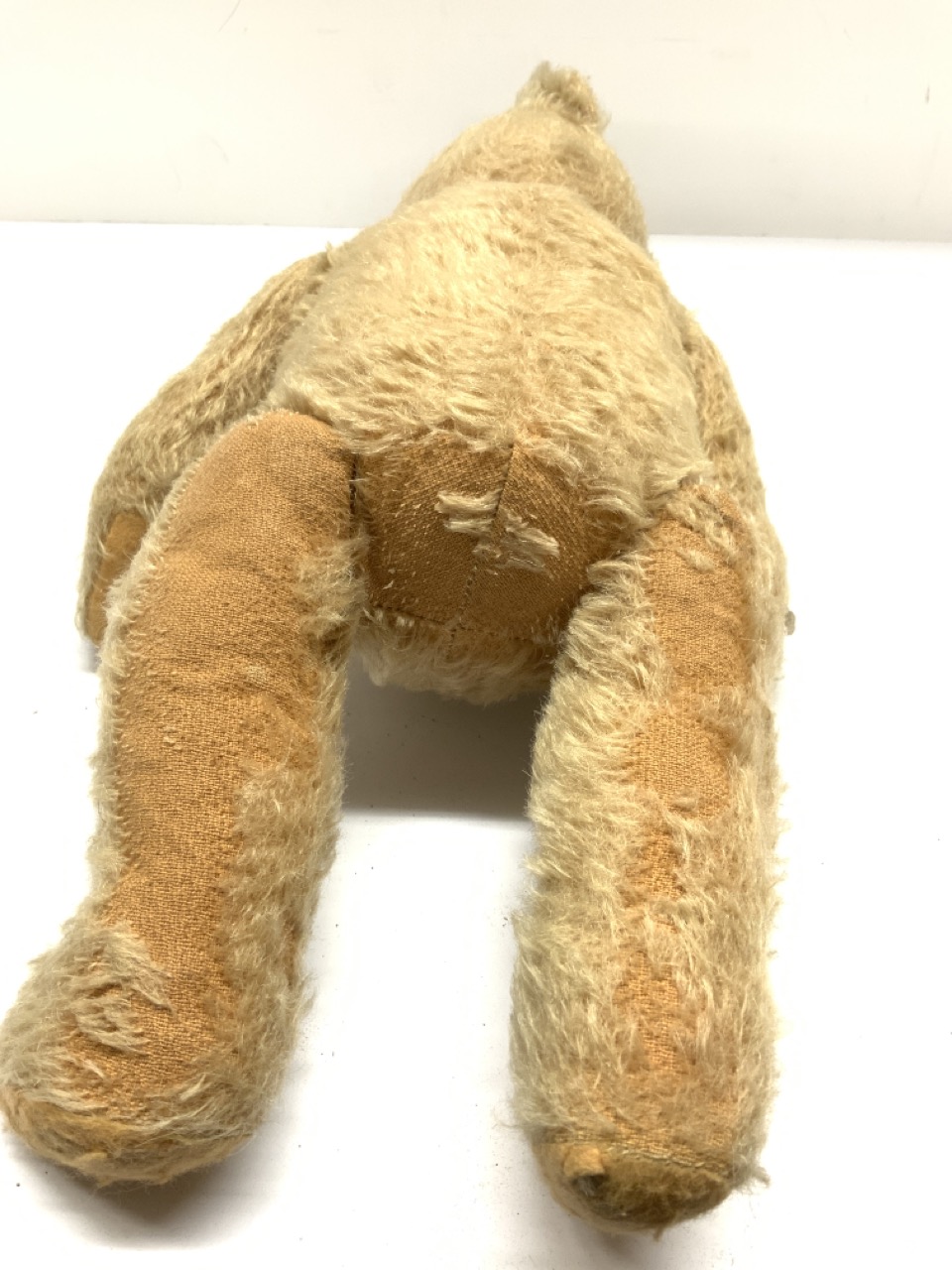 Vintage/Antique Straw stuff mohair teddy bear. Significant mohair loss on back side.