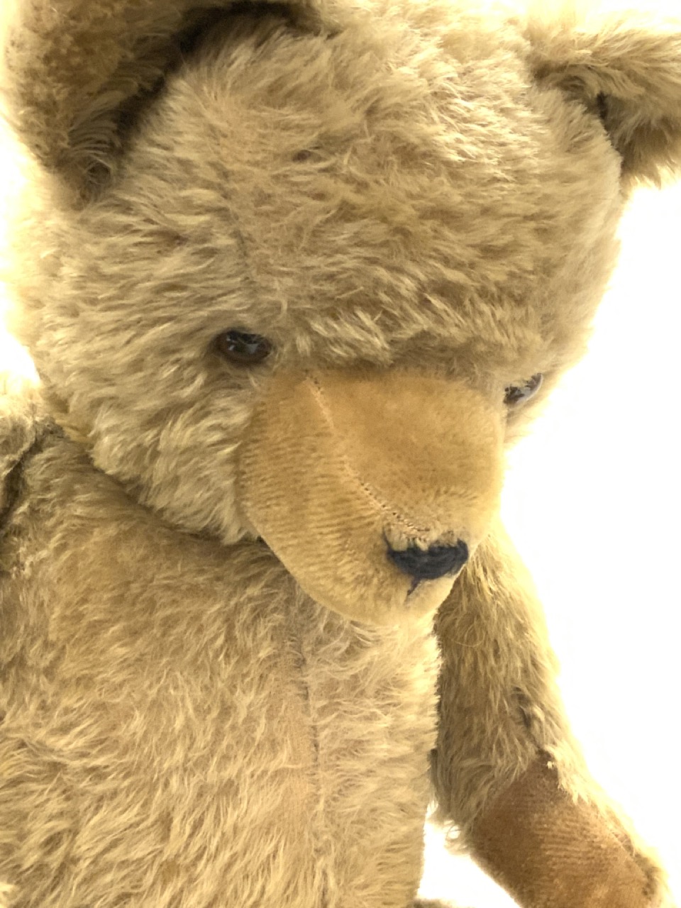 A Large Mohair straw stuff teddy bear.