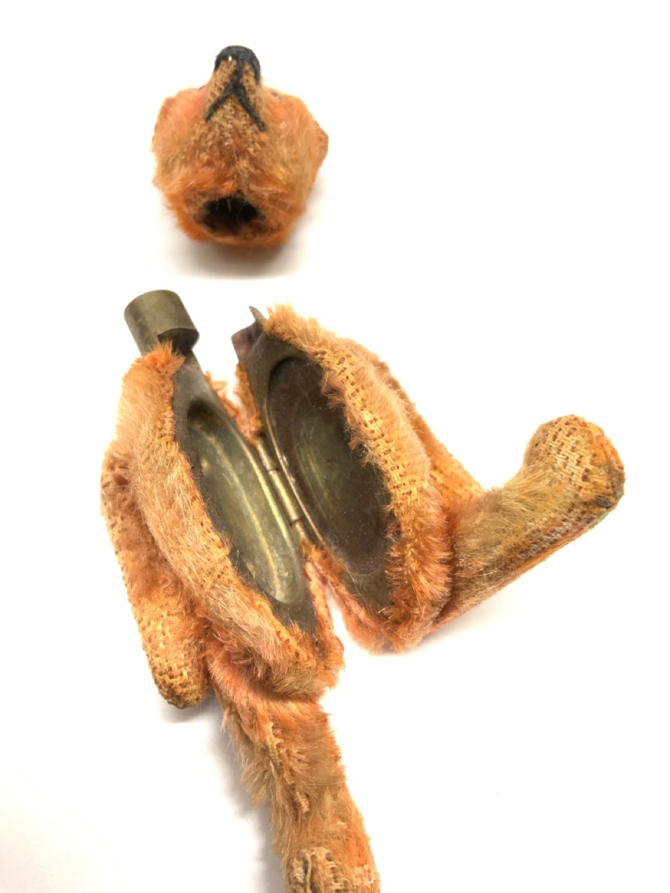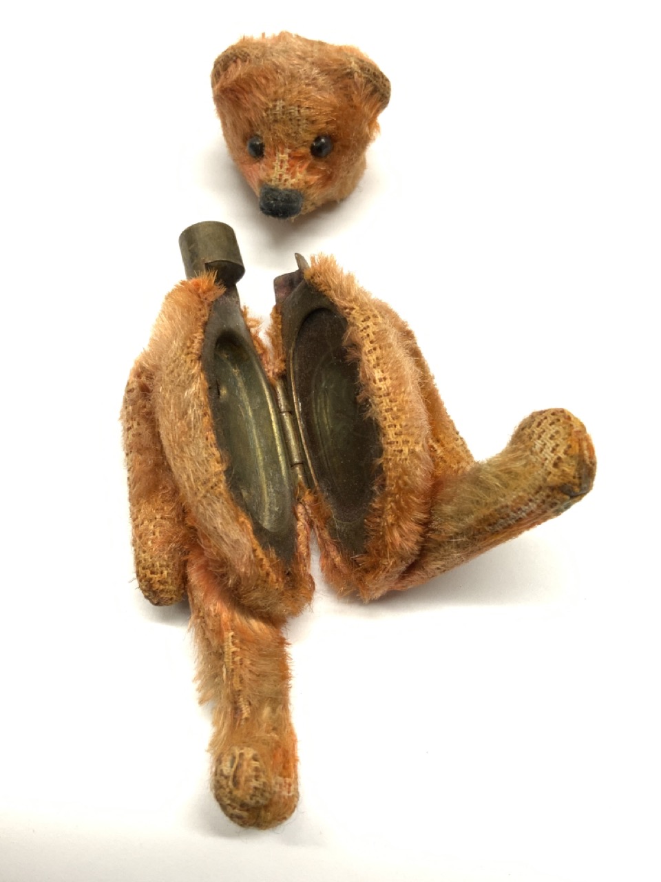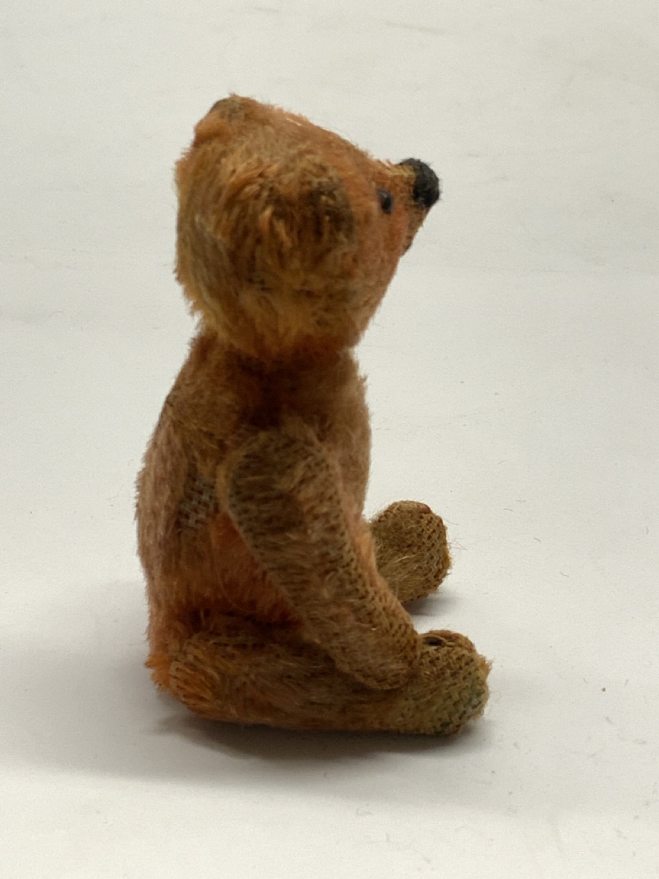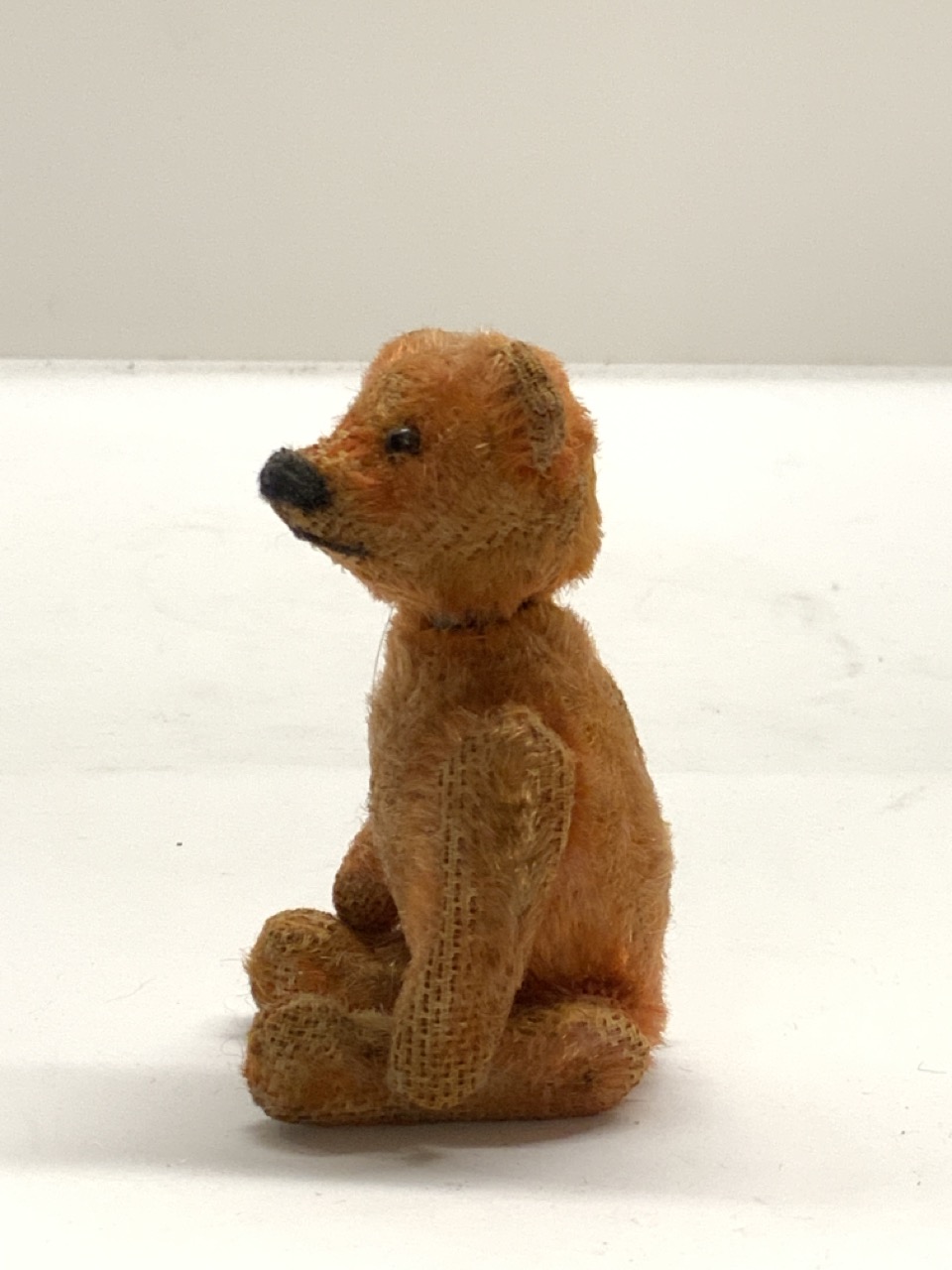 Misc.: Antique teddy bear collection including rare Schuco perfume and double headed compact, Steiff humpback bear, Early growler, mohair bears, 27” straw stuffed mohair bear, Americana jig toy, Dell paperback revolving store display book rack, Pine Bros. Advertising, 19th c. Carpenter’s chest with brass stud work and identified being owned by E.F. Foster of Ridgefield Connecticut, Fine red naugahyde loveseat (chesterfield style) and chair, Chinese marble top center table, Hudson Bay blanket, Navaho blanket, cast iron bear doorstop, antique Delft wall rack, collectibles, books, Fireman’s sand bucket, collection of Christmas “Santa” postcards, memorabilia and much more!