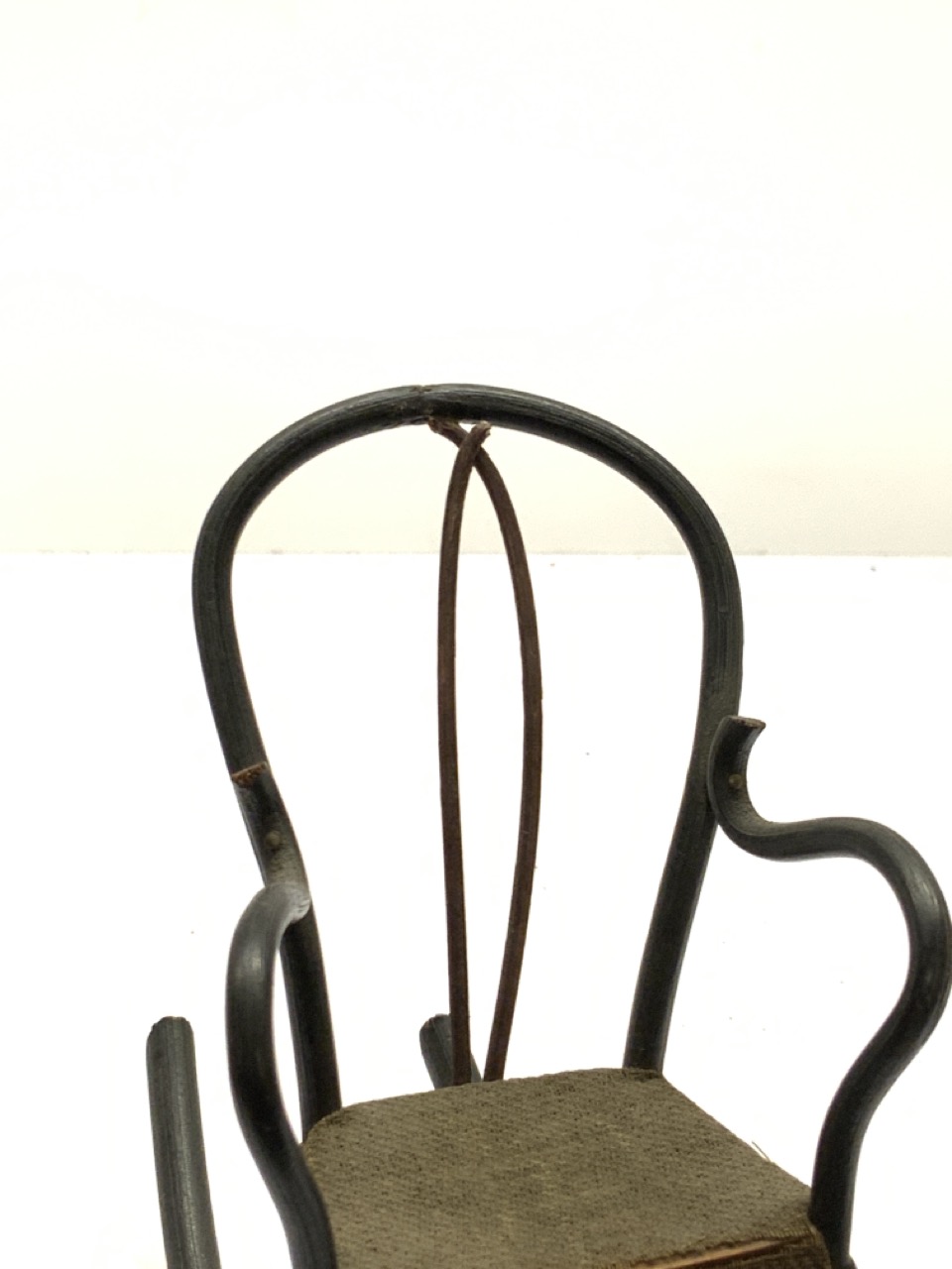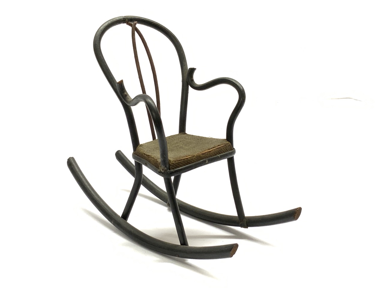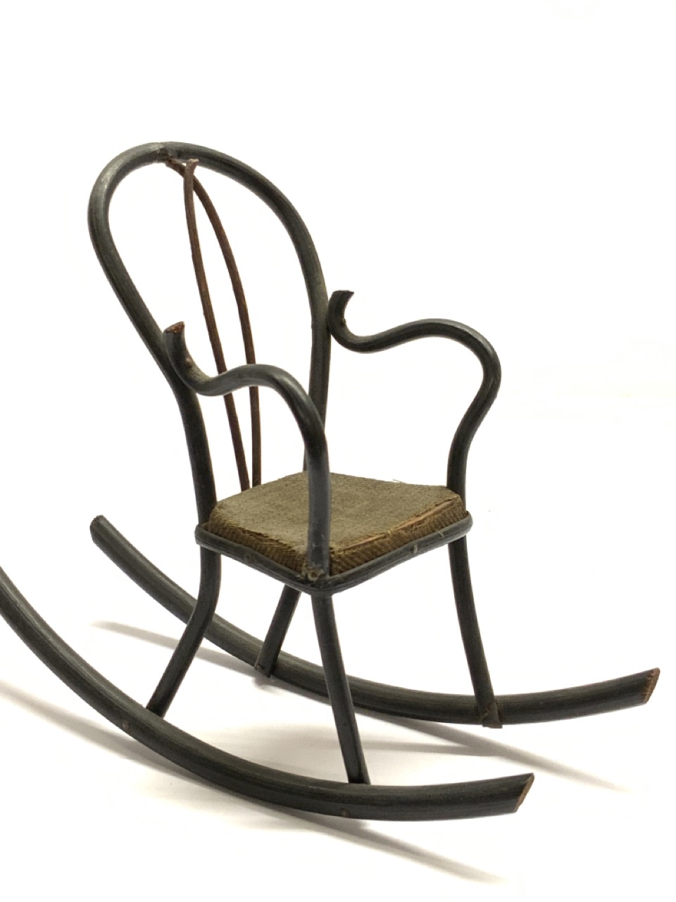 Early 20th century hand crafted dollhouse miniature bentwood rocker. Highly fragile item in near mint state.