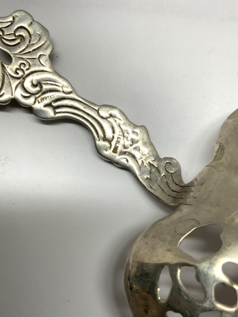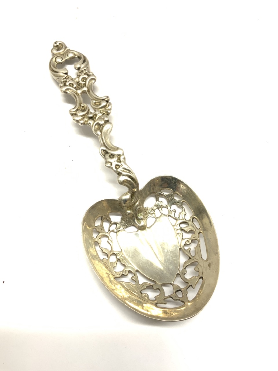 Sterling silver heart shaped slotted serving spoon.