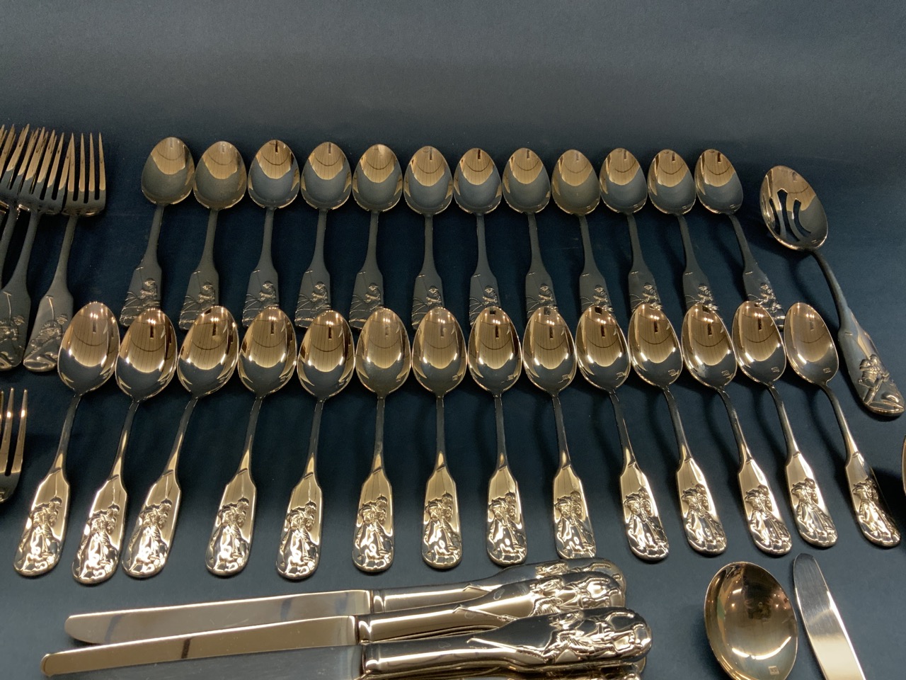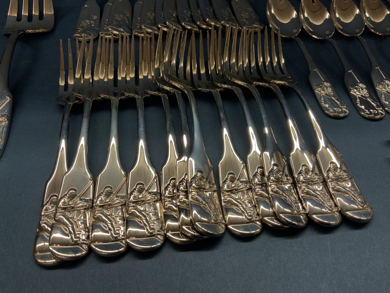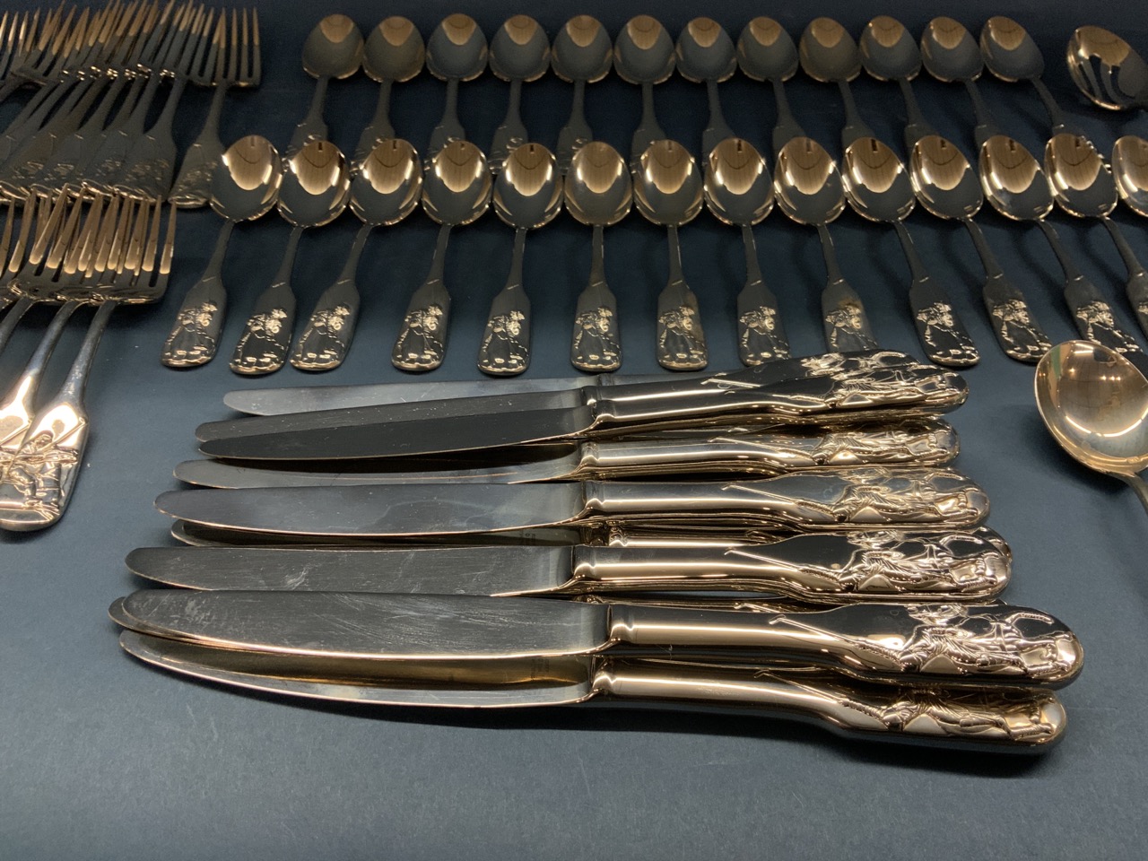 Ralph Lauren stainless flatware in the equestrian style "POLO" pattern. Pre-owned like new showing very minimal if any use. As seen in photograph preview.