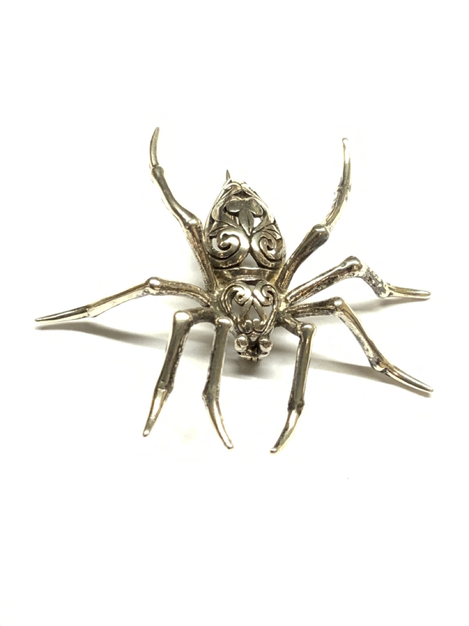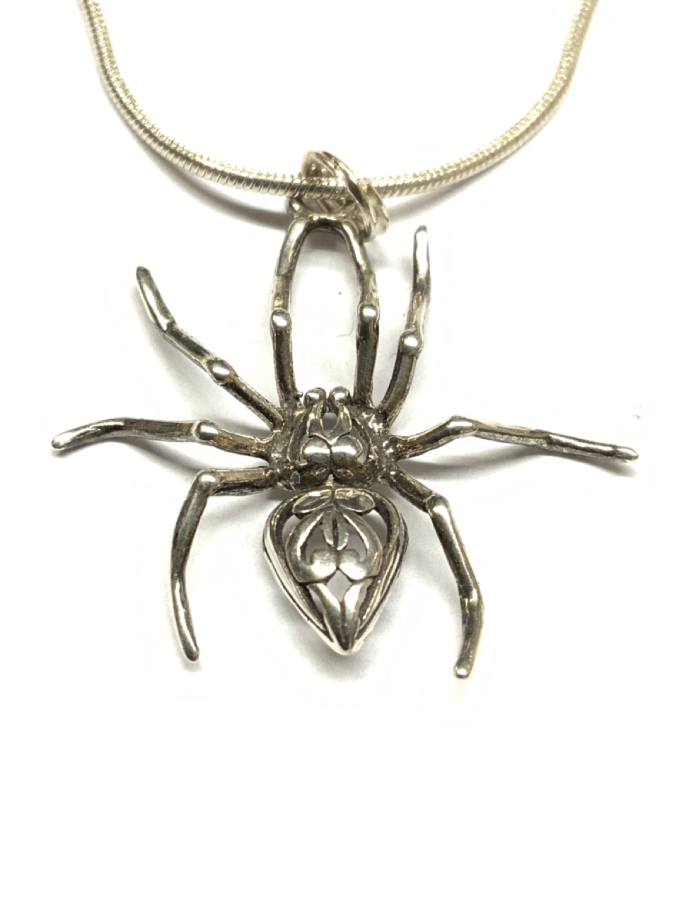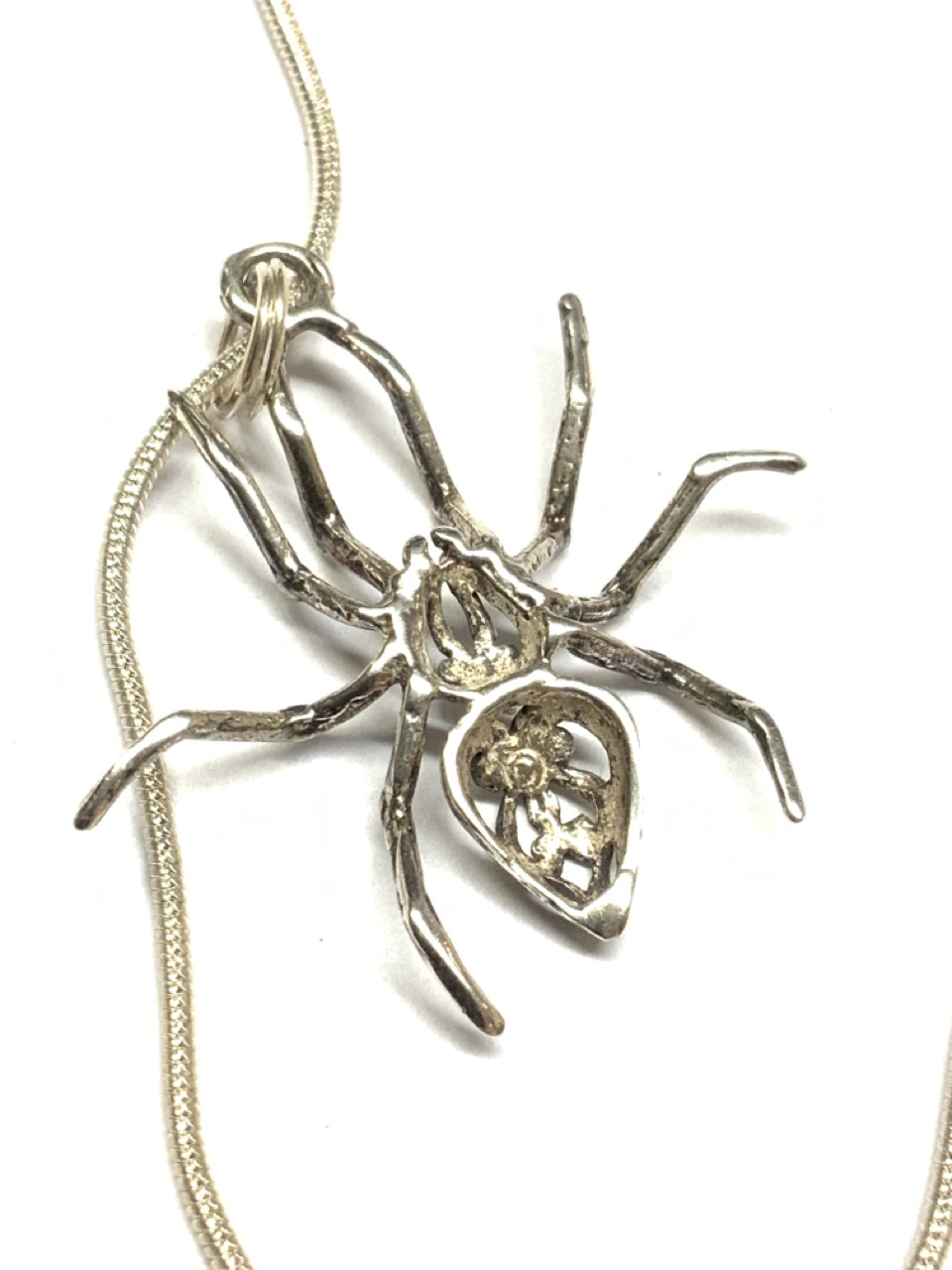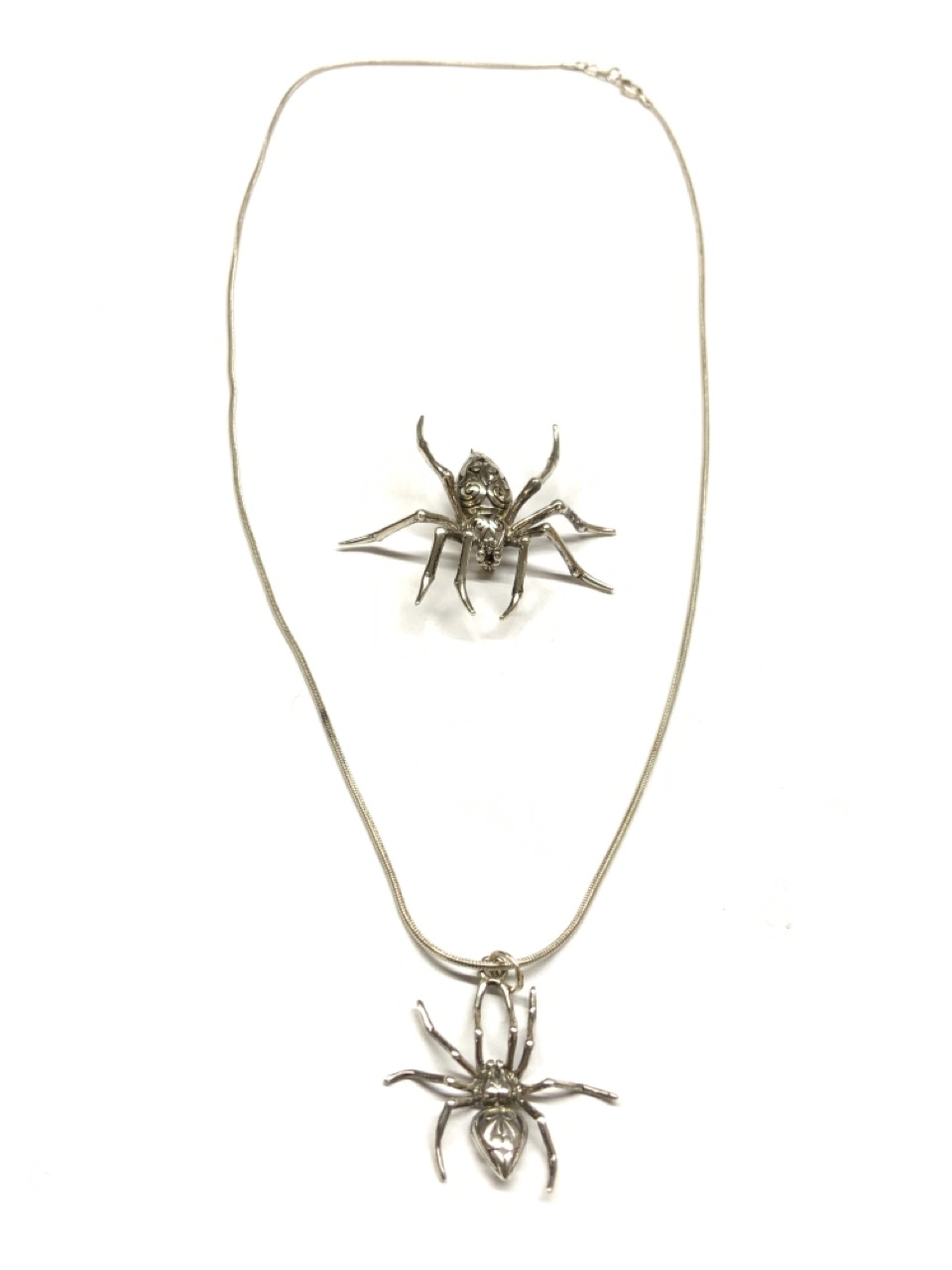 Two (2) piece sterling silver spider necklace and spider pin.
