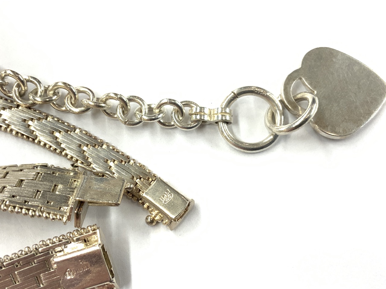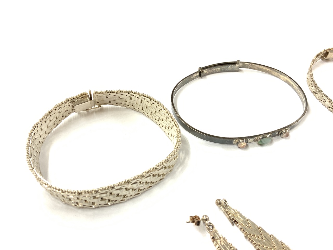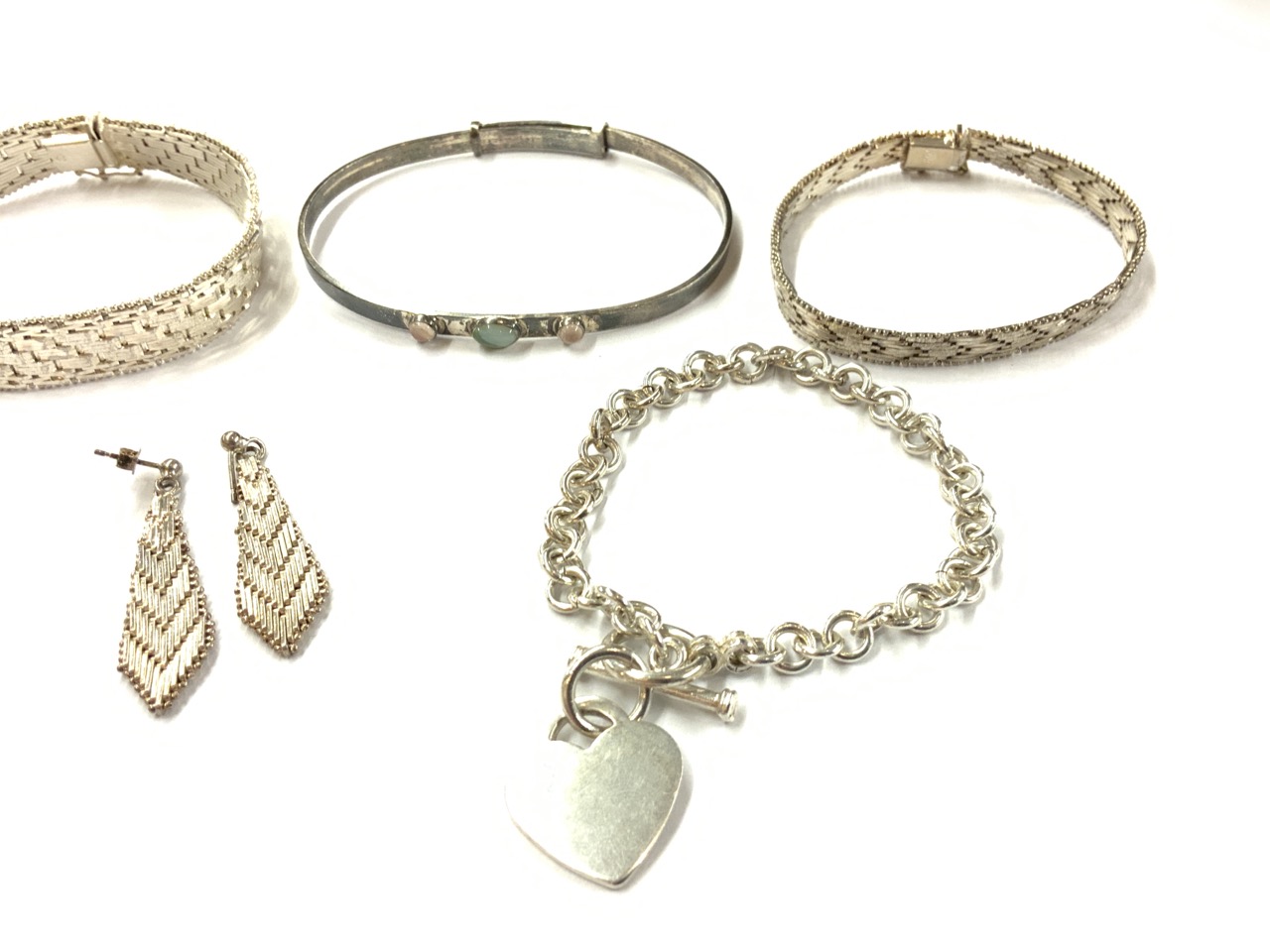 Fire piece lot. Four sterling silver bracelets and one pair of earrings.