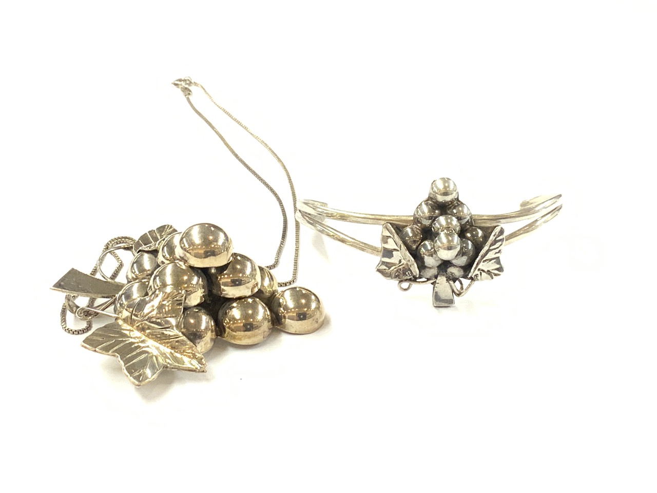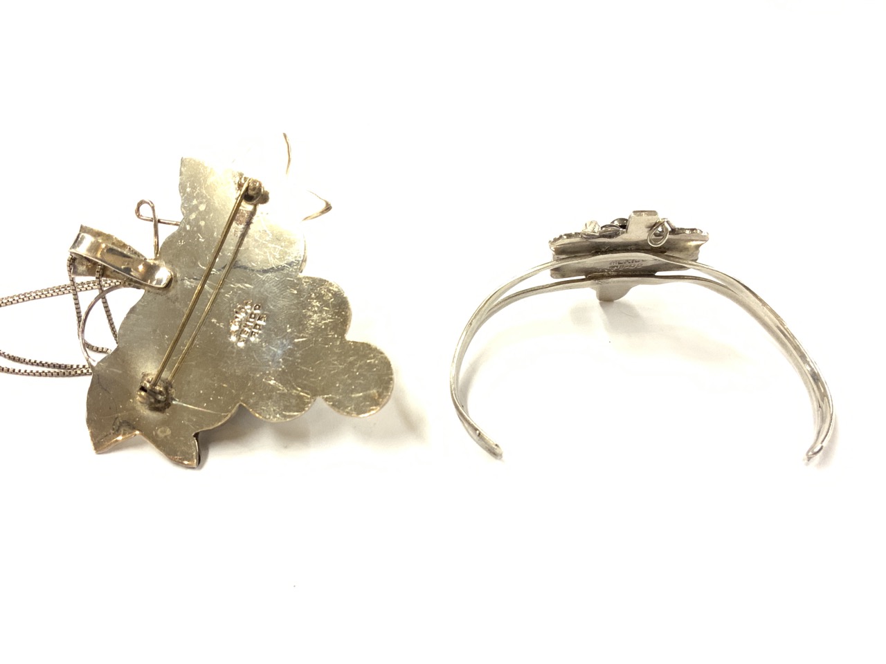 Two (2) Sterling Silver Mexican Necklace Brooch/Pendant And Bracelet.